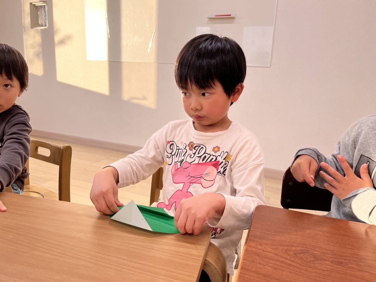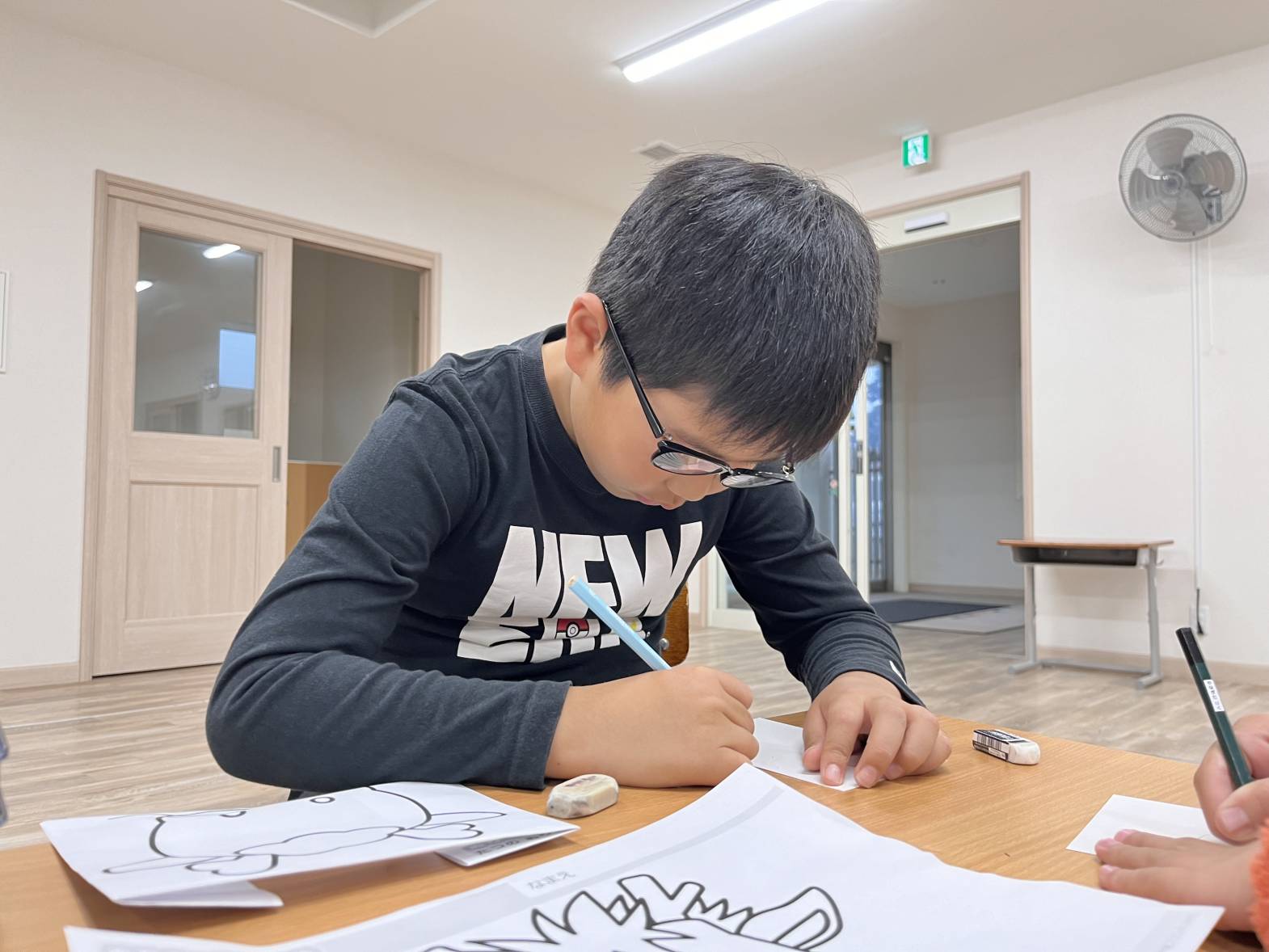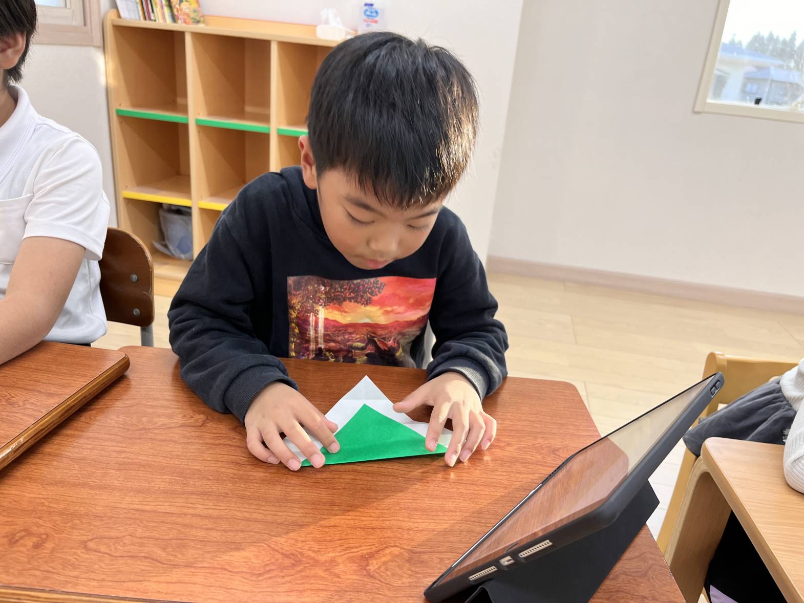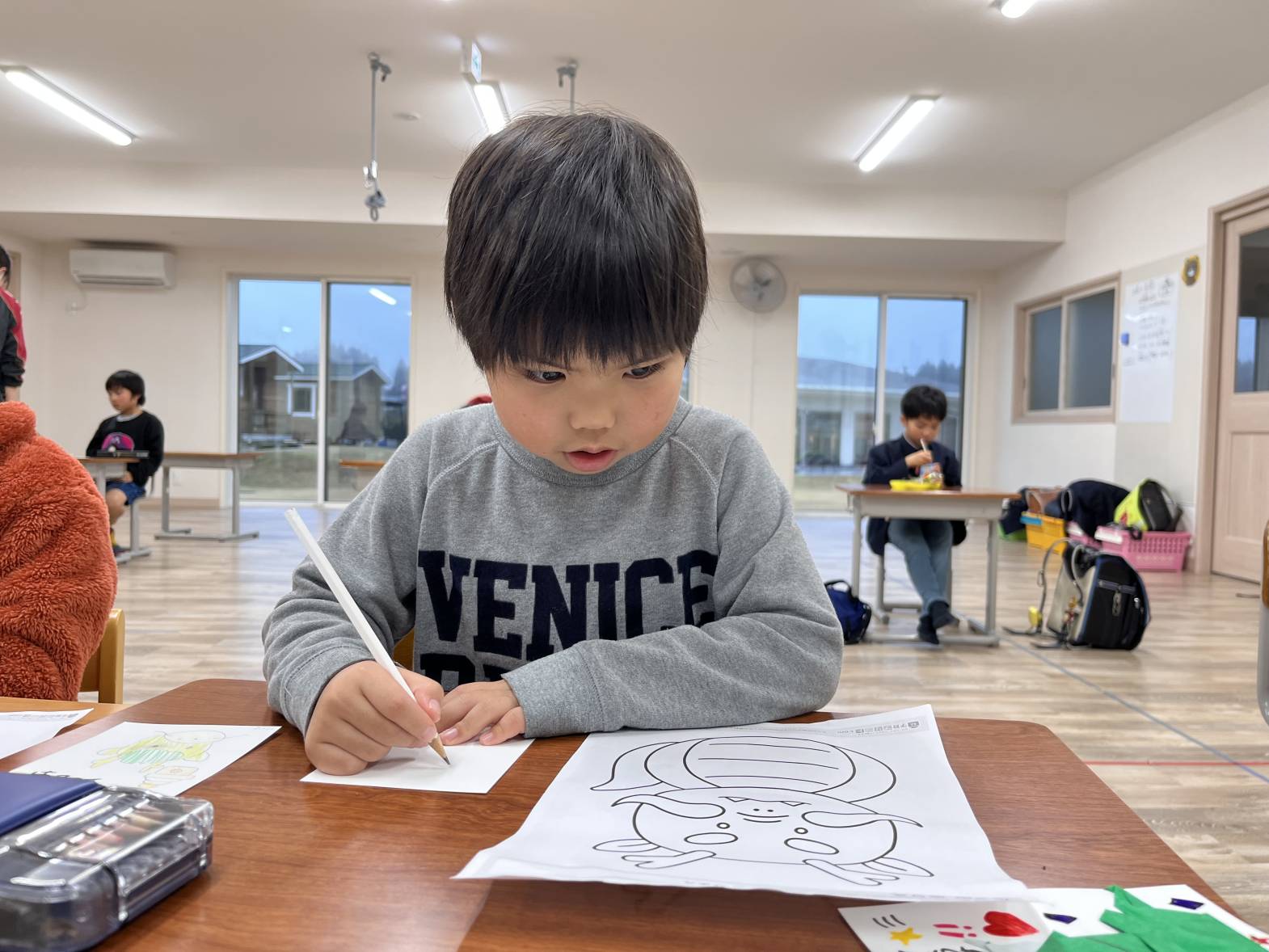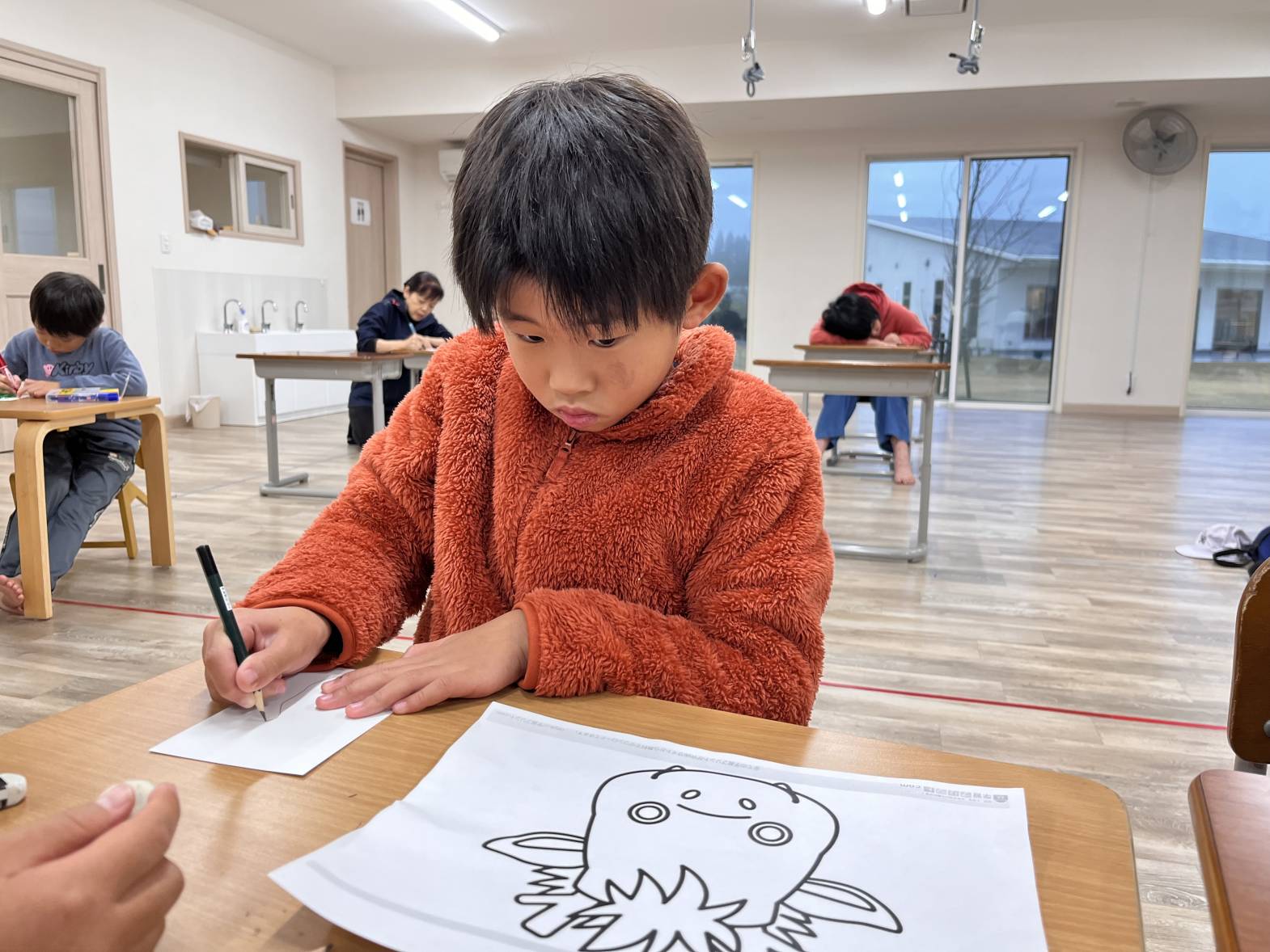 年賀状製作を行いました。 辰のイラストを見ながら絵を描き、塗り絵をしたり、折り紙で辰を折ったりしました! 辰の折り紙を折る際は、難しい部分も最後まで諦めず、完成させることができていました! 最後に、絵を描いたり、住所を書いたりし、オリジナルの年賀状が完成しました☆ 元旦に届くことを楽しみにしていてくださいね♪