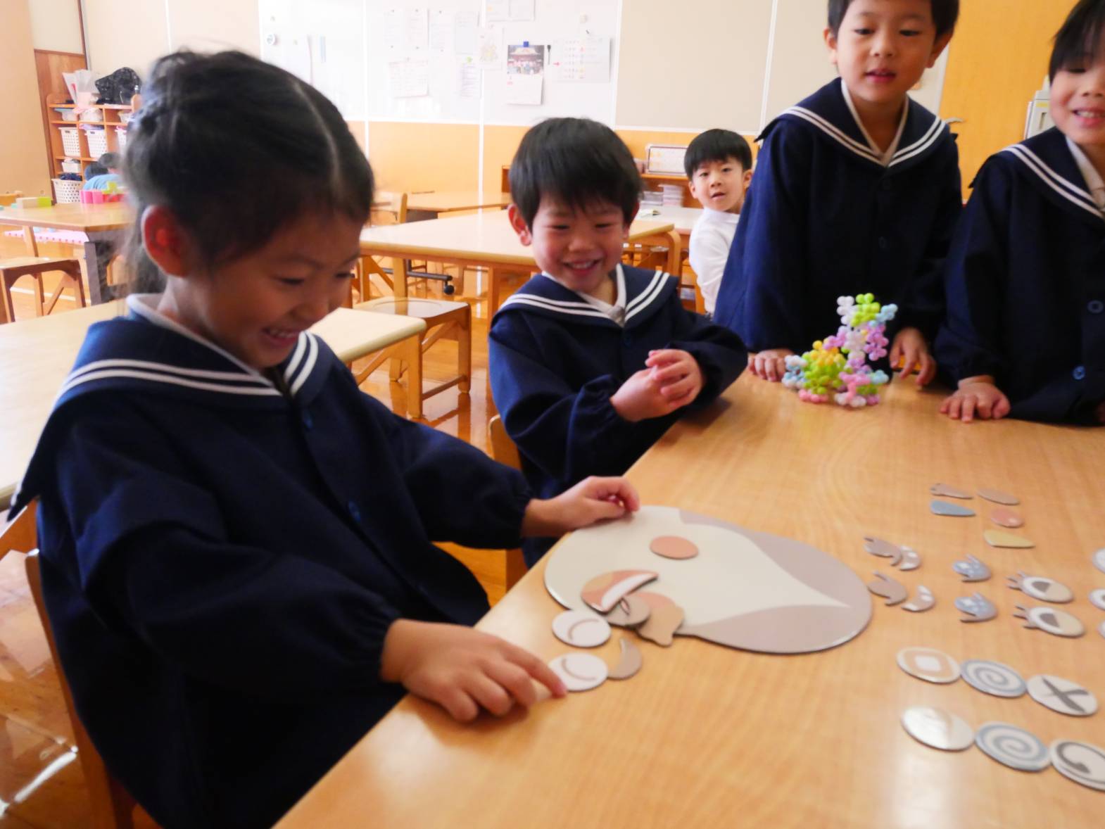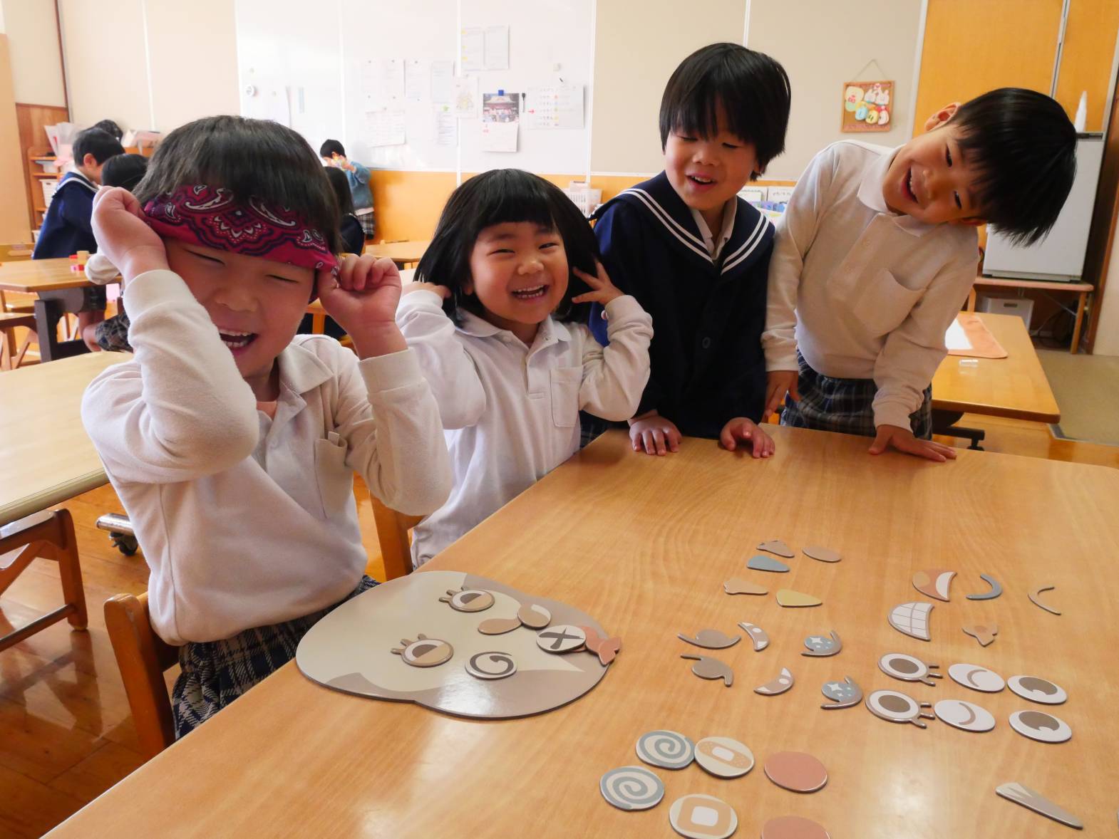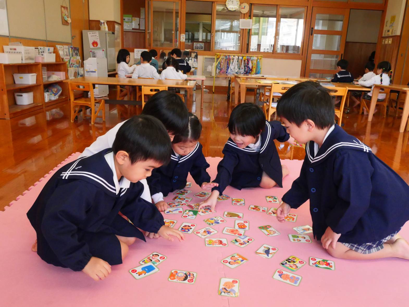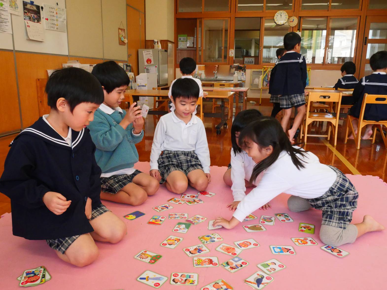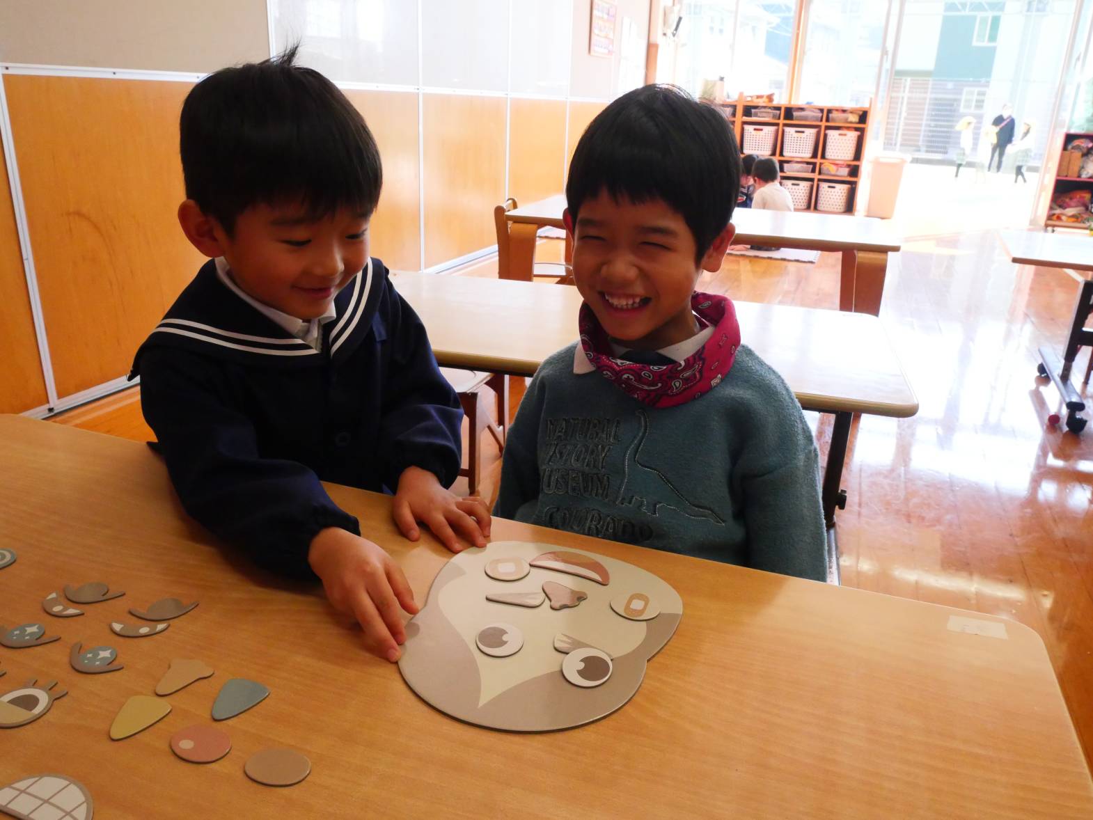 今週はお正月にちなんだ遊びをしました。 福笑いでは「全然違うじゃん!」「目ここじゃないよ。」とお友だちと楽しそうに話す姿が見られました。 カルタでは「〇枚取ったよ!」「あった!」と白熱のバトルをするうさぎ組さんでした。