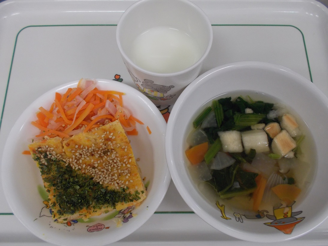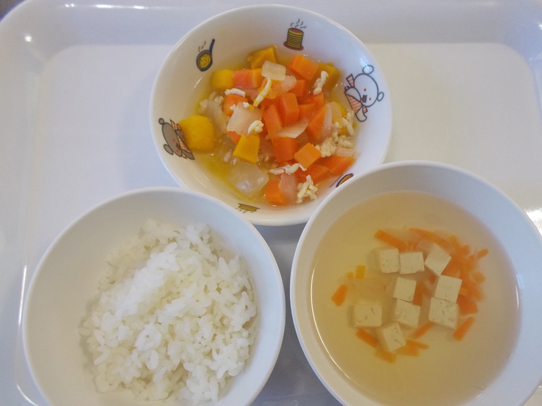 1月9日(火)から1月13日(土)までの給食献立写真・離乳食提供量と写真の一例です。