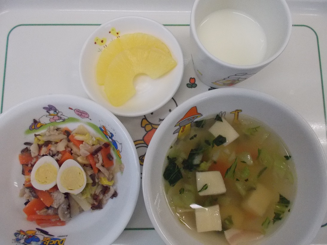 1月15日(月)から1月20日(土)までの給食献立写真・離乳食提供量と写真の一例です。