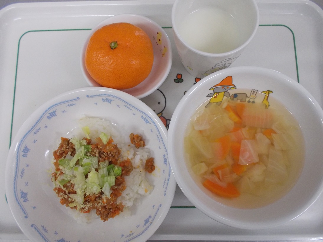 1月22日(月)から1月27日(土)までの給食献立写真・離乳食提供量と写真の一例です。