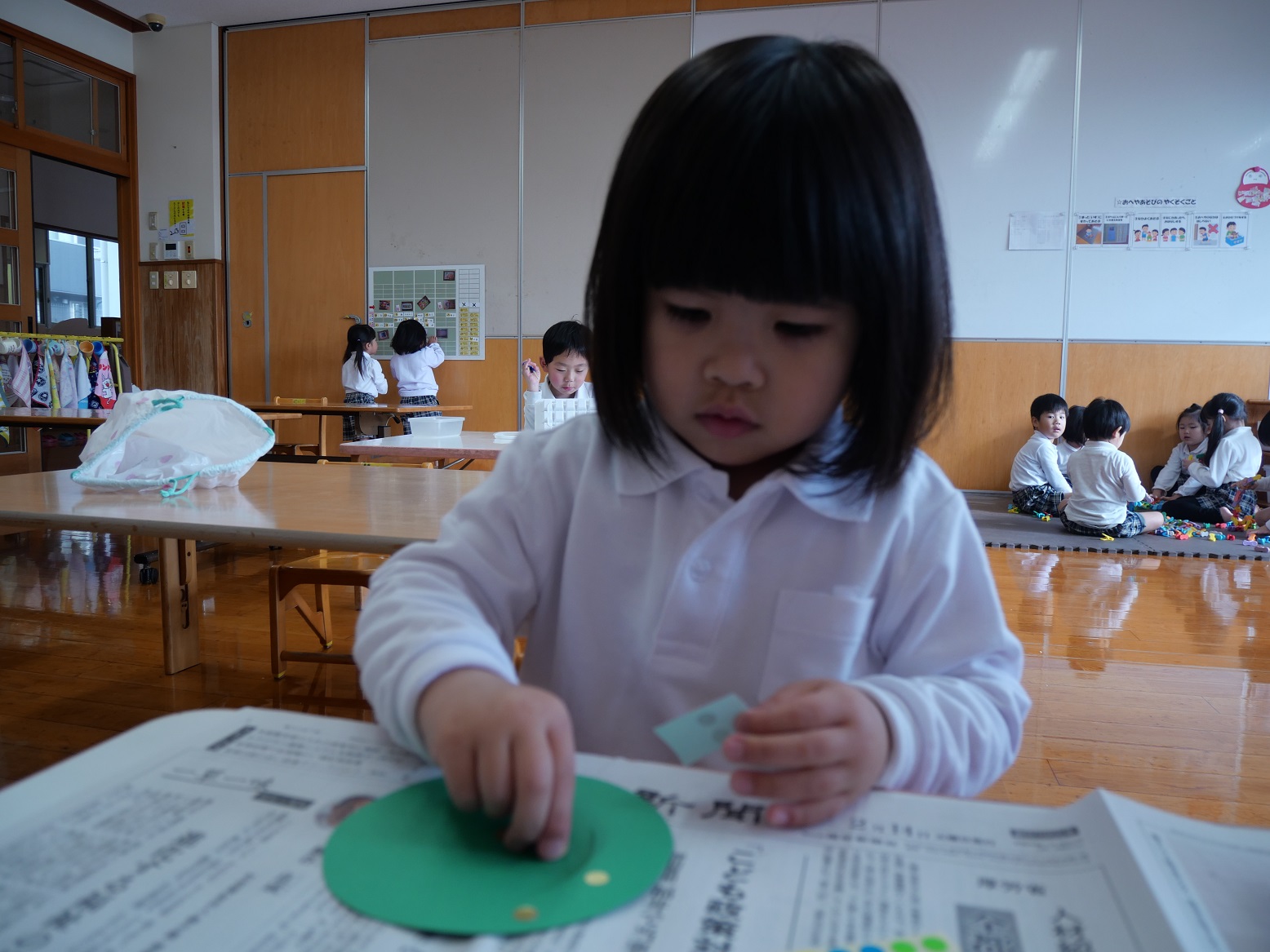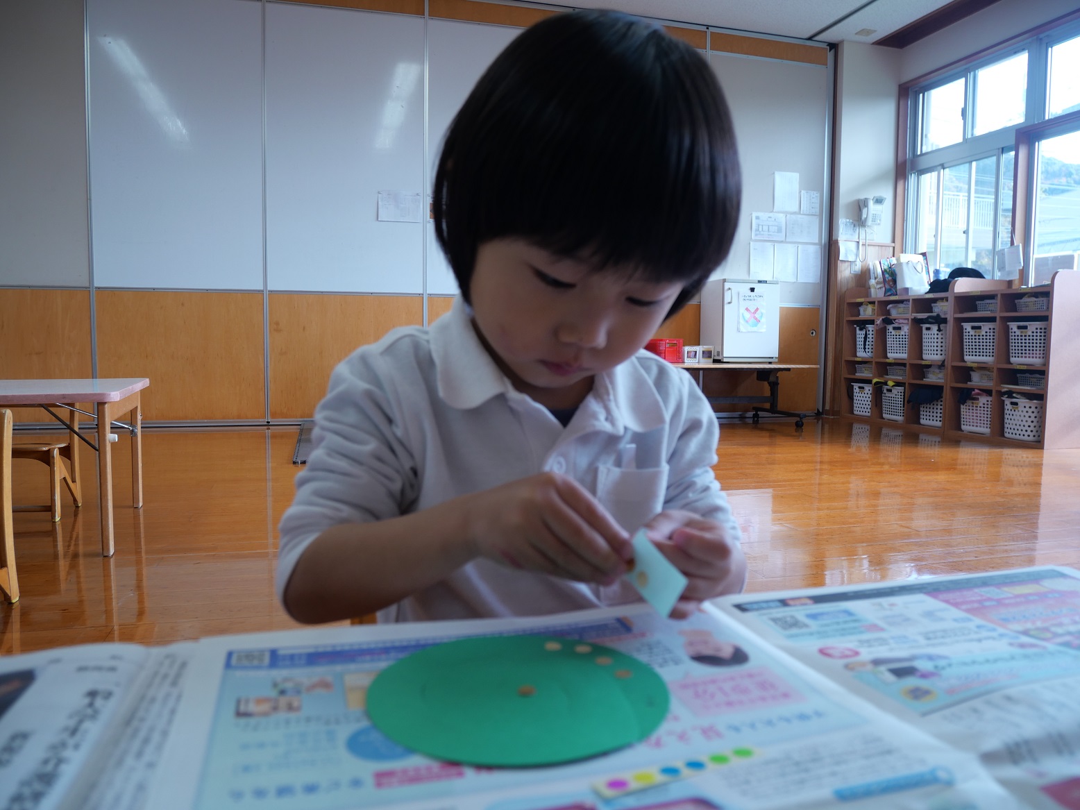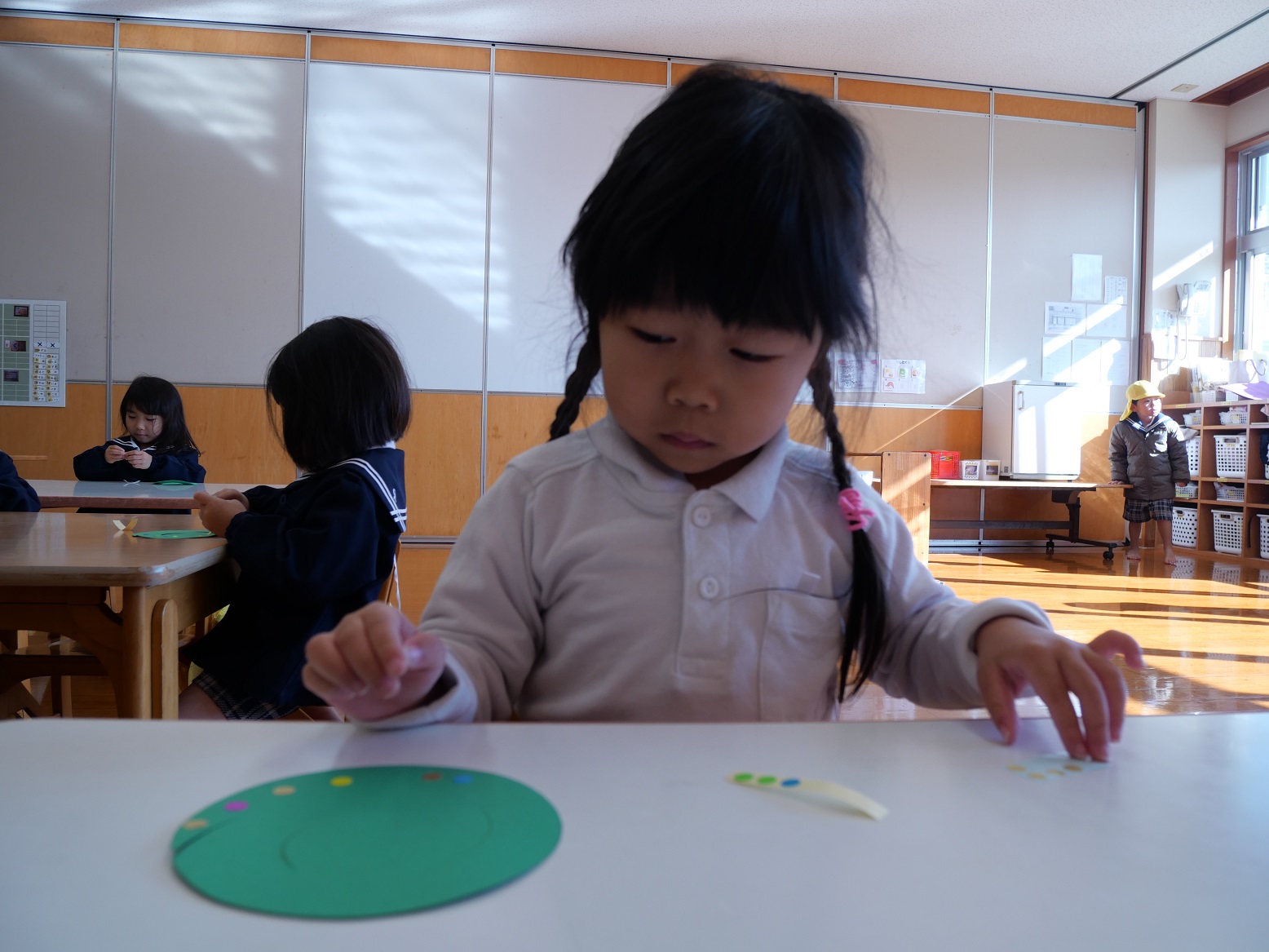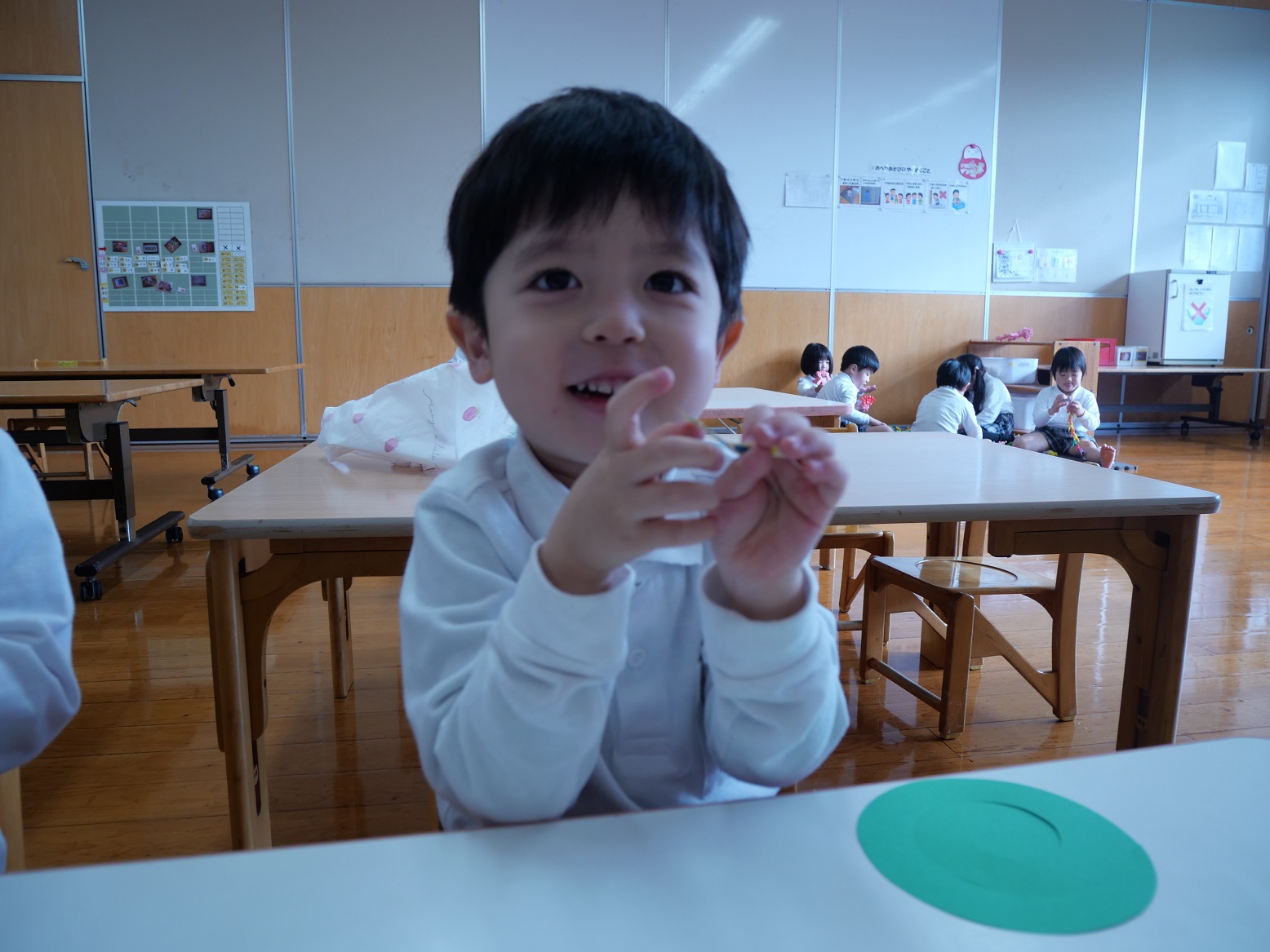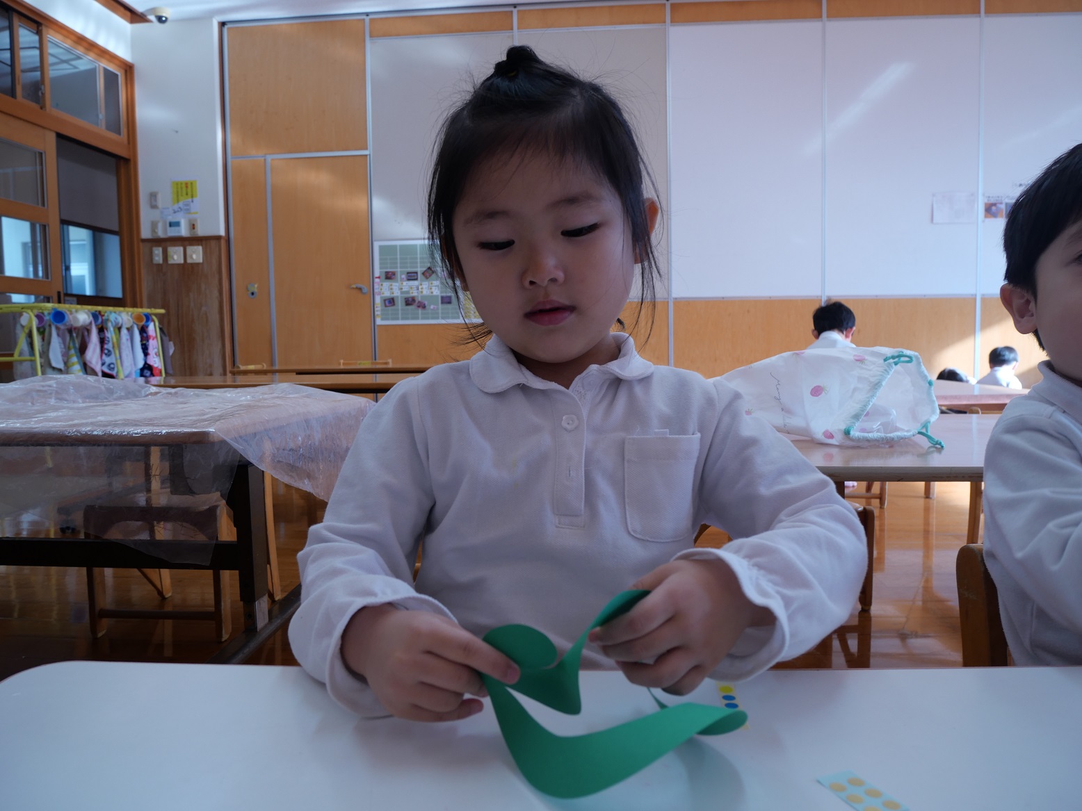 また、「ここに貼ってみるのはどう?」と話し合いながら取り組む子も見られました。
