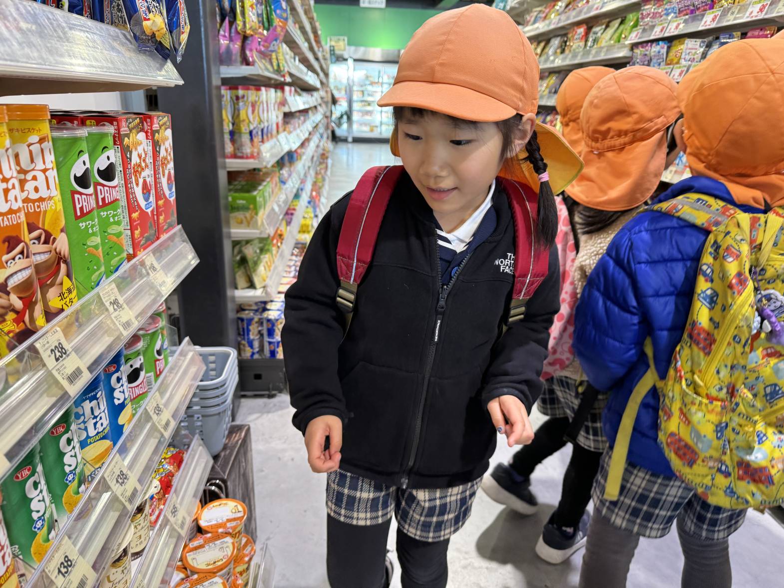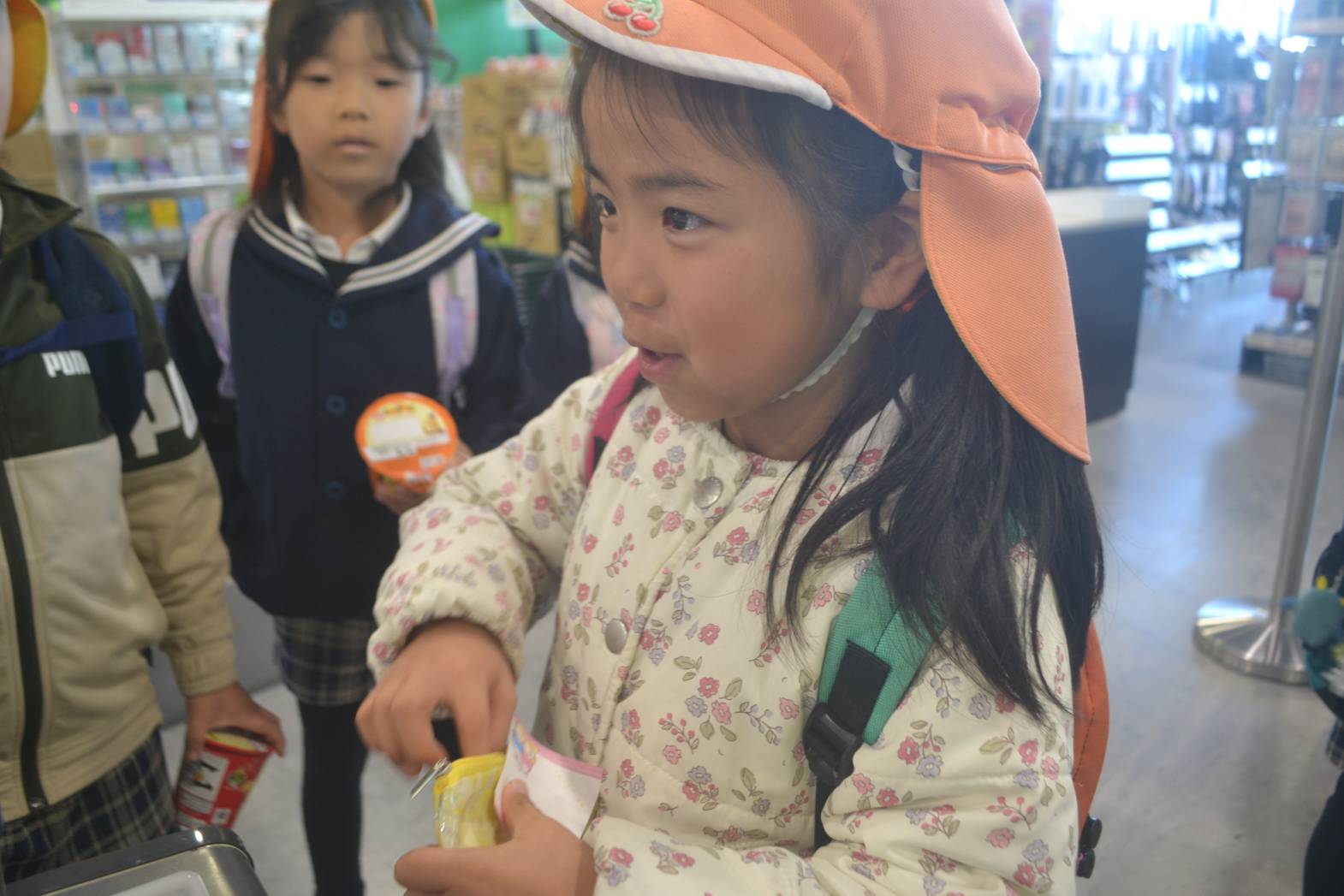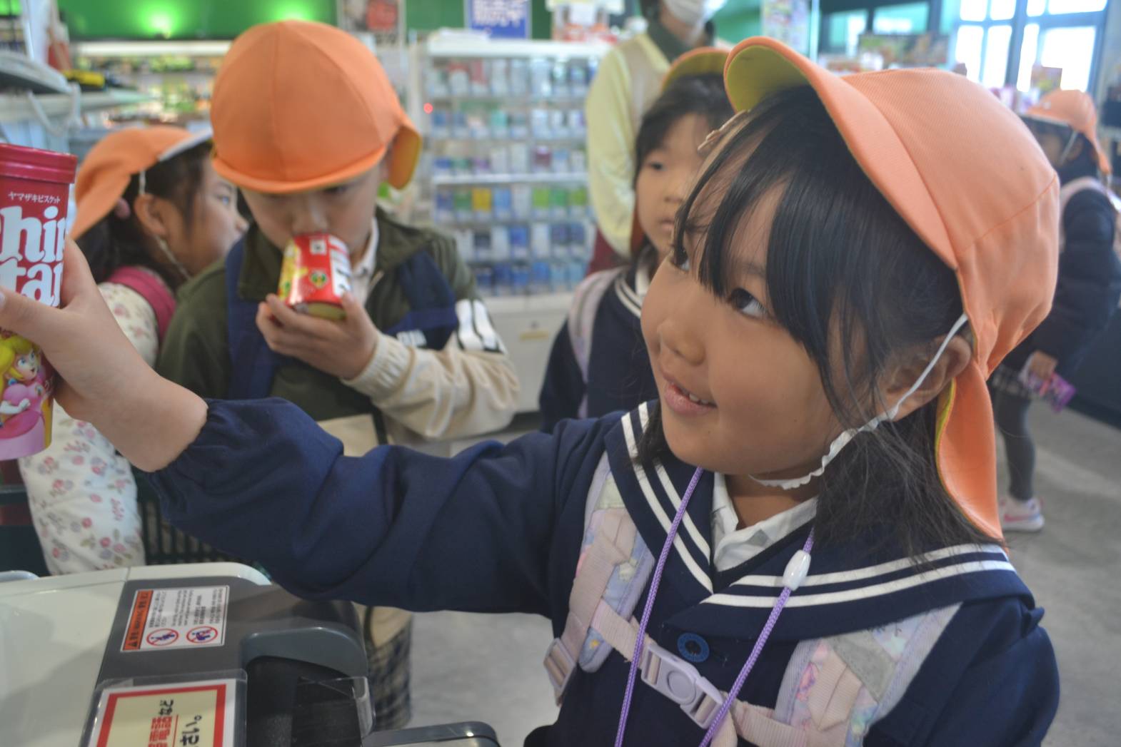 今日は、タイヨーでお買い物体験をしました。 ドキドキとワクワクを隠せない子どもたちでしたが、店内では落ち着いて行動することができ、「これ200円で買えるよね!」「このおやつ買おう!」と、お買い物を楽しんでたきりん組さん。 初めてのレジでは、戸惑いながらも上手に支払いを済ませることができました! 美味しいおむすびを食べ終えると、嬉しそうにおやつを食べ始めるこどもたち。 おむすびもおやつもしっかりと完食することができ、満足そうにしていましたよ! 準備物などのご協力ありがとうございました!