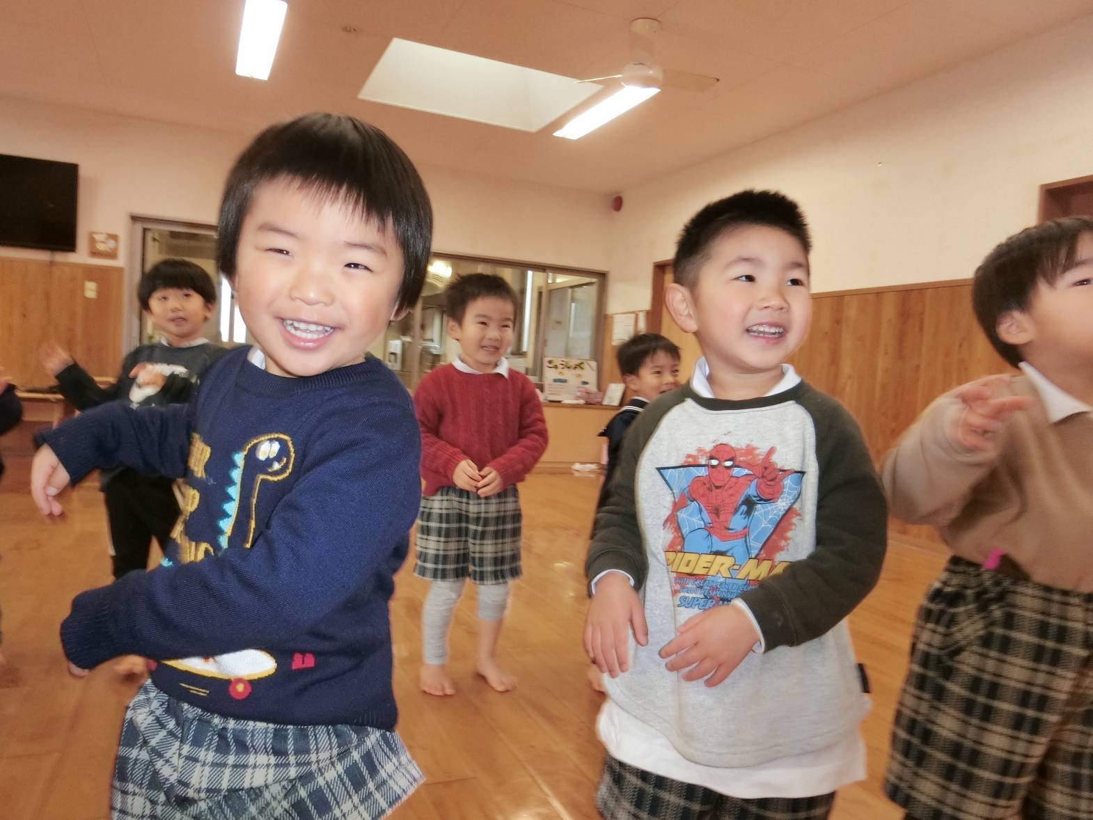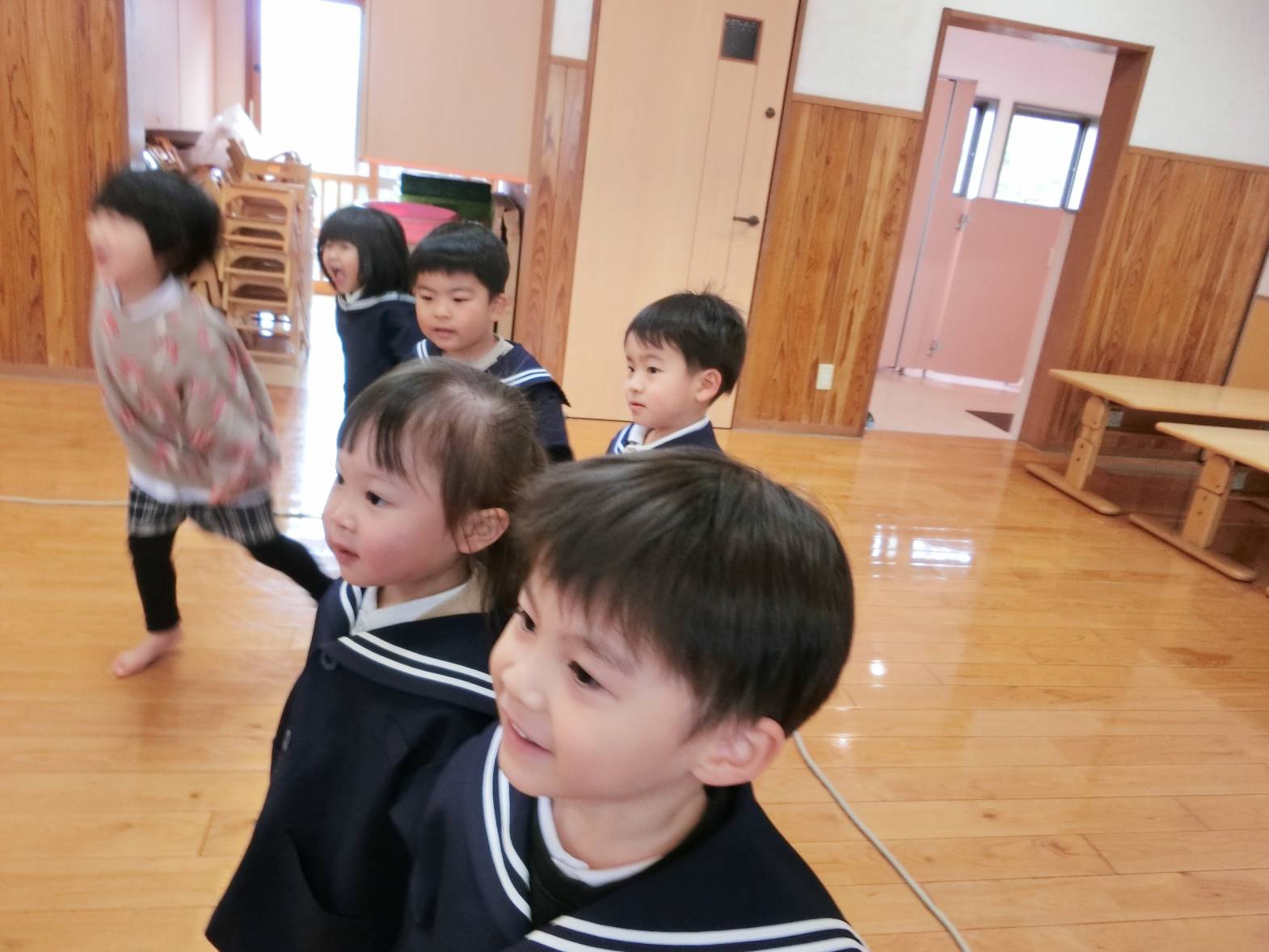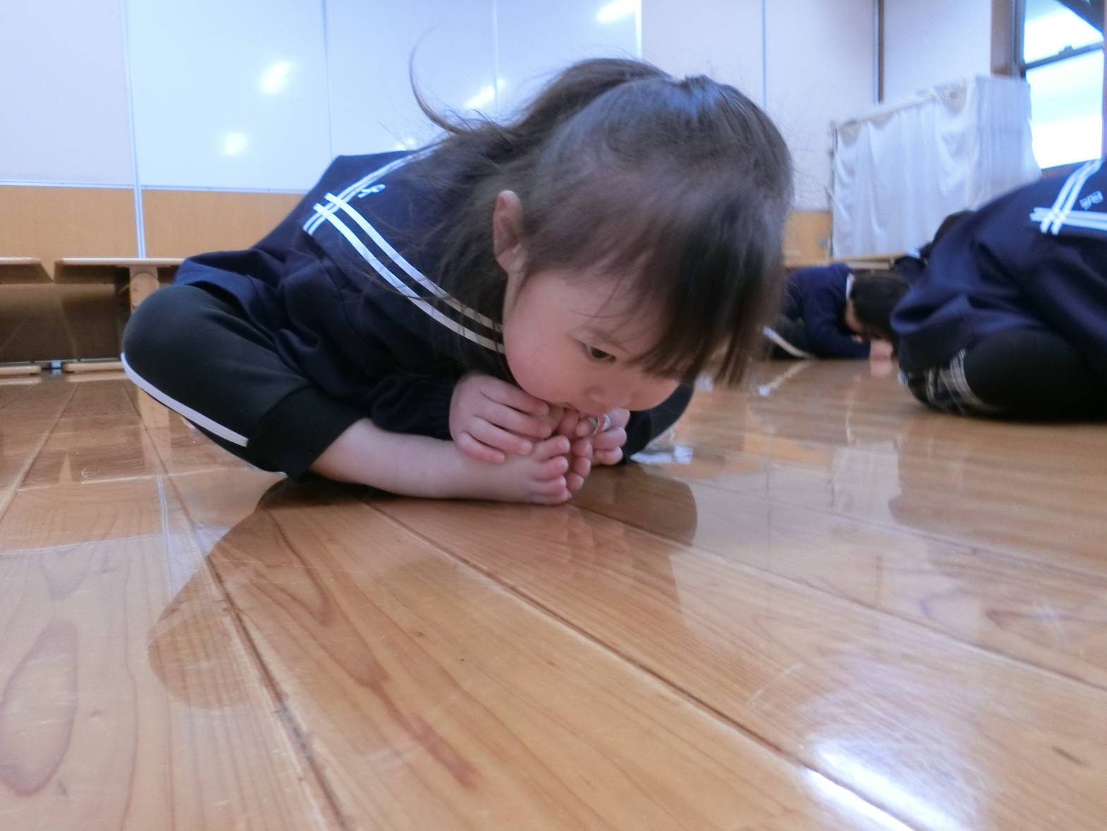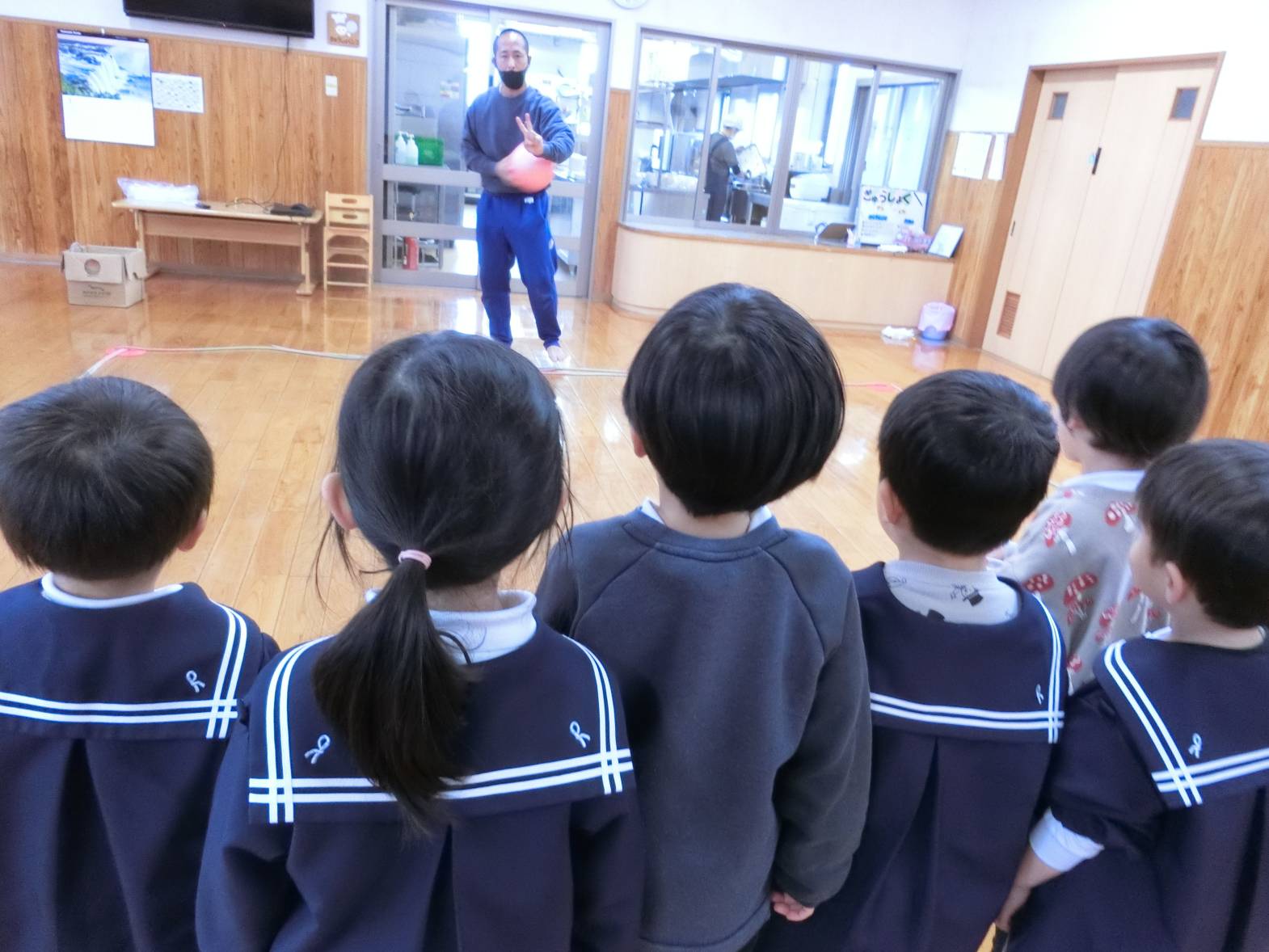 運動遊びをしました! 前回に引き続き、縄跳びとボール遊びの活動を行います。 運動遊びを通して、色々な体の動かし方を知り運動が上手になっているりす組さん。 縄跳びでは「パンツを履いて、シャツを脱ぐ。」の掛け声に合わせて縄の回し方を練習しました! ボール遊びでは、“爆弾ゲーム”をした子どもたち! 「爆弾から逃げるんだ!」、「遠くに逃げたらいいんだよ。」と逃げることが上手なりす組さん。当たったら休憩の約束も守って少しずつルールのある遊びもできるようになっている姿が見られました。