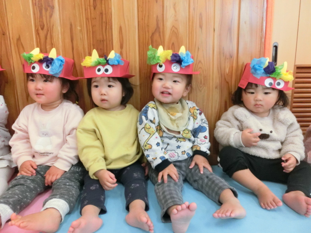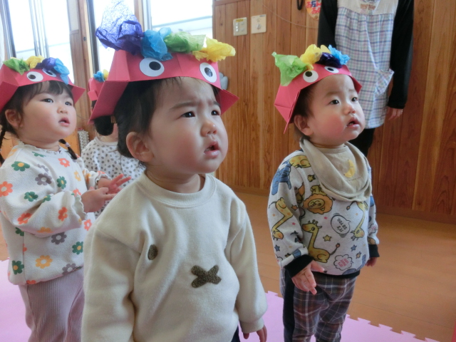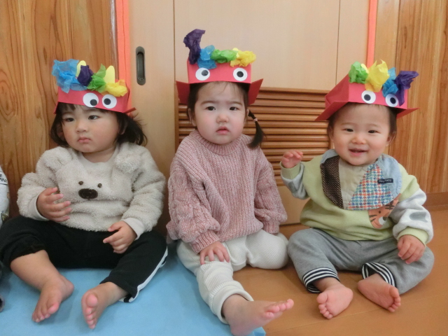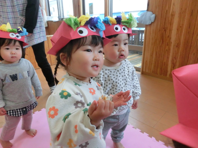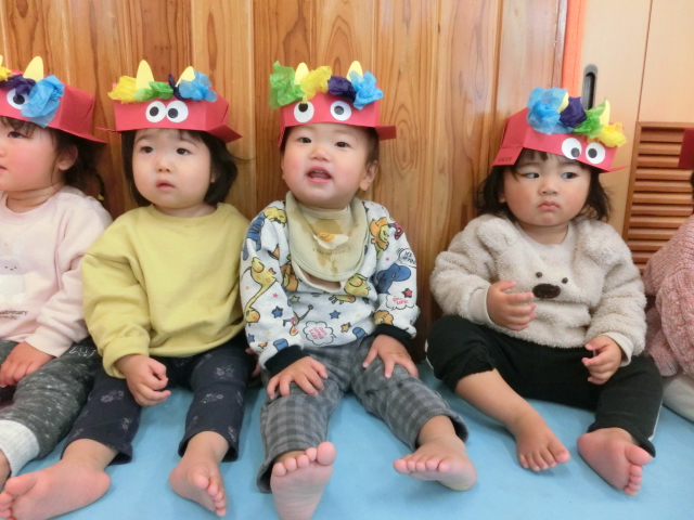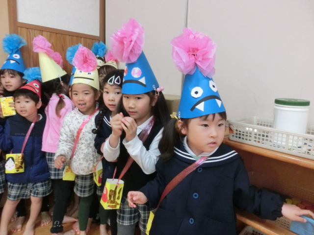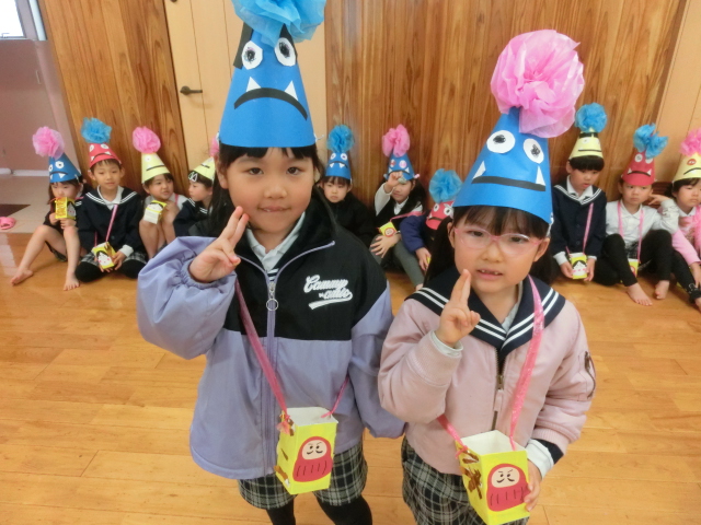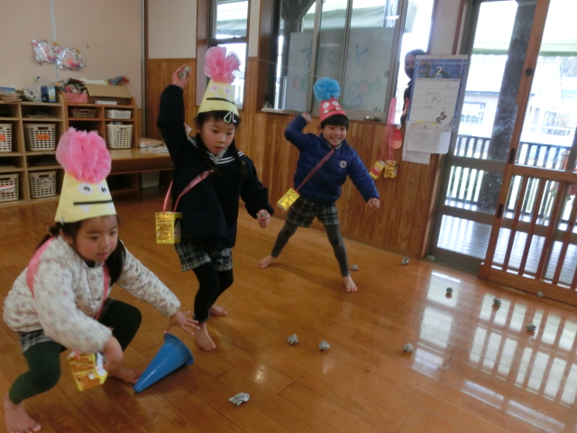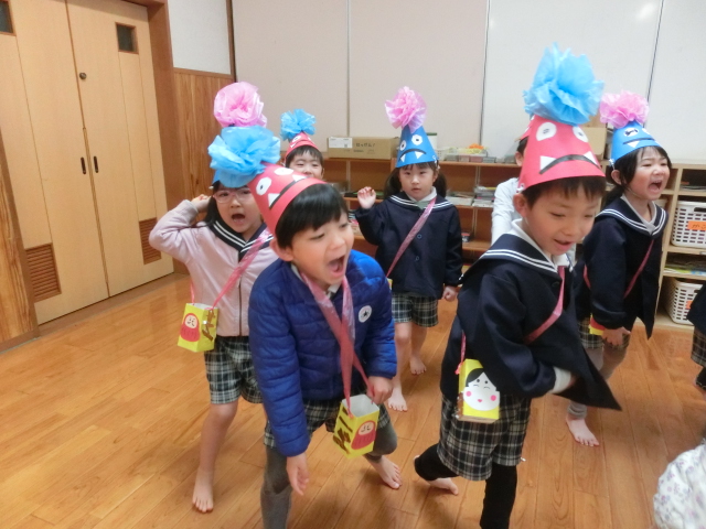 鬼のパンツと豆まきの歌を歌って、鬼を倒す準備万端です!