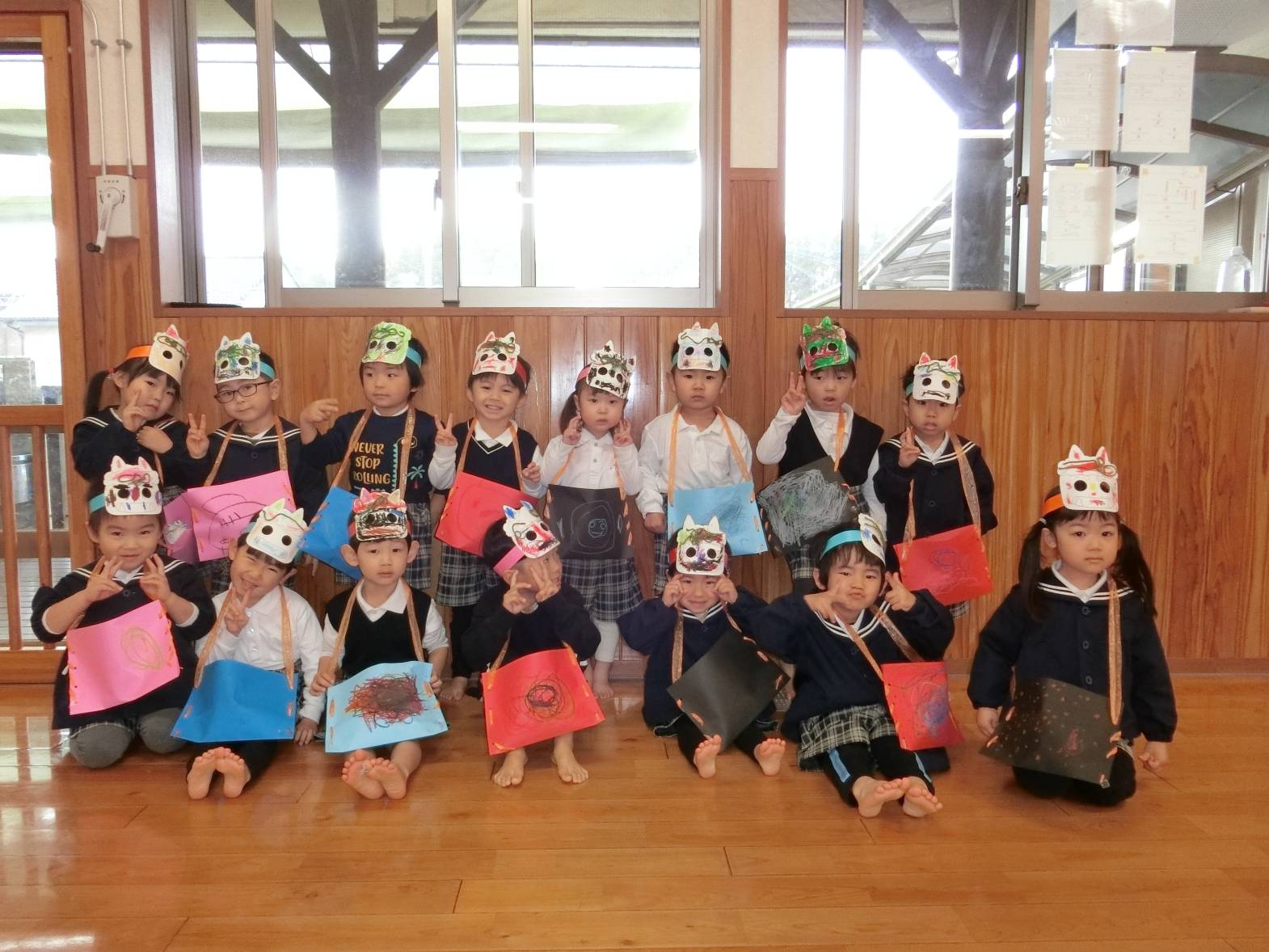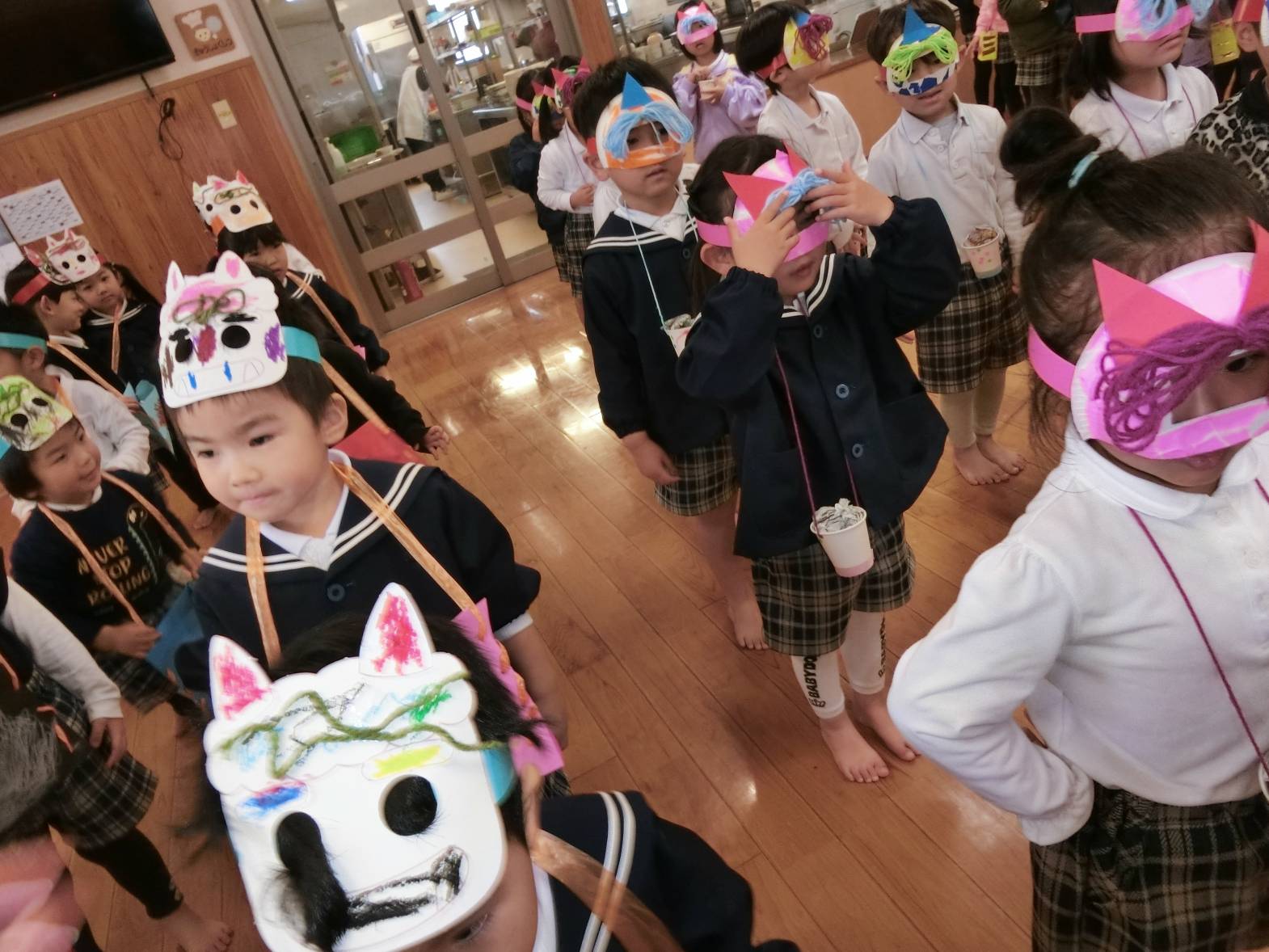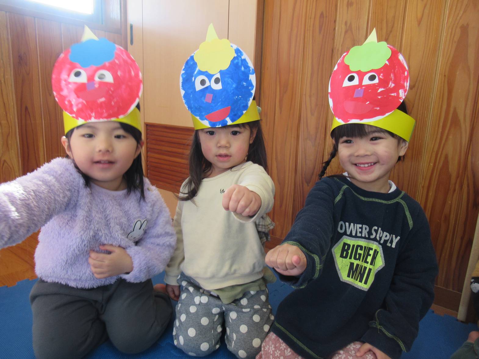 鬼のパンツと豆まきの歌を歌って、鬼を倒す準備万端です!