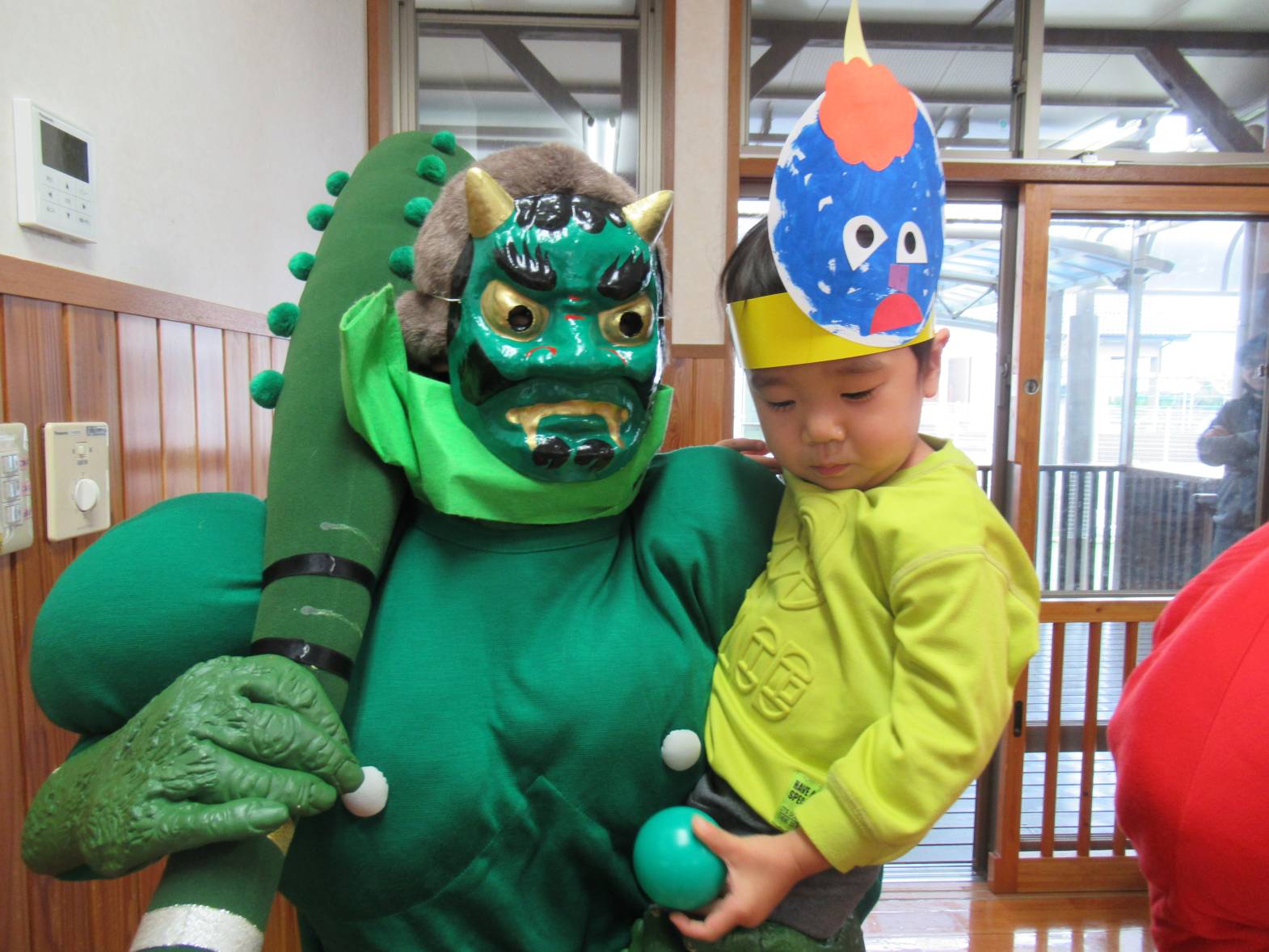 いざ、鬼が登場すると涙を流して鬼から逃げたり、自分の豆を持って鬼に立ち向かったりする大きい組さん。