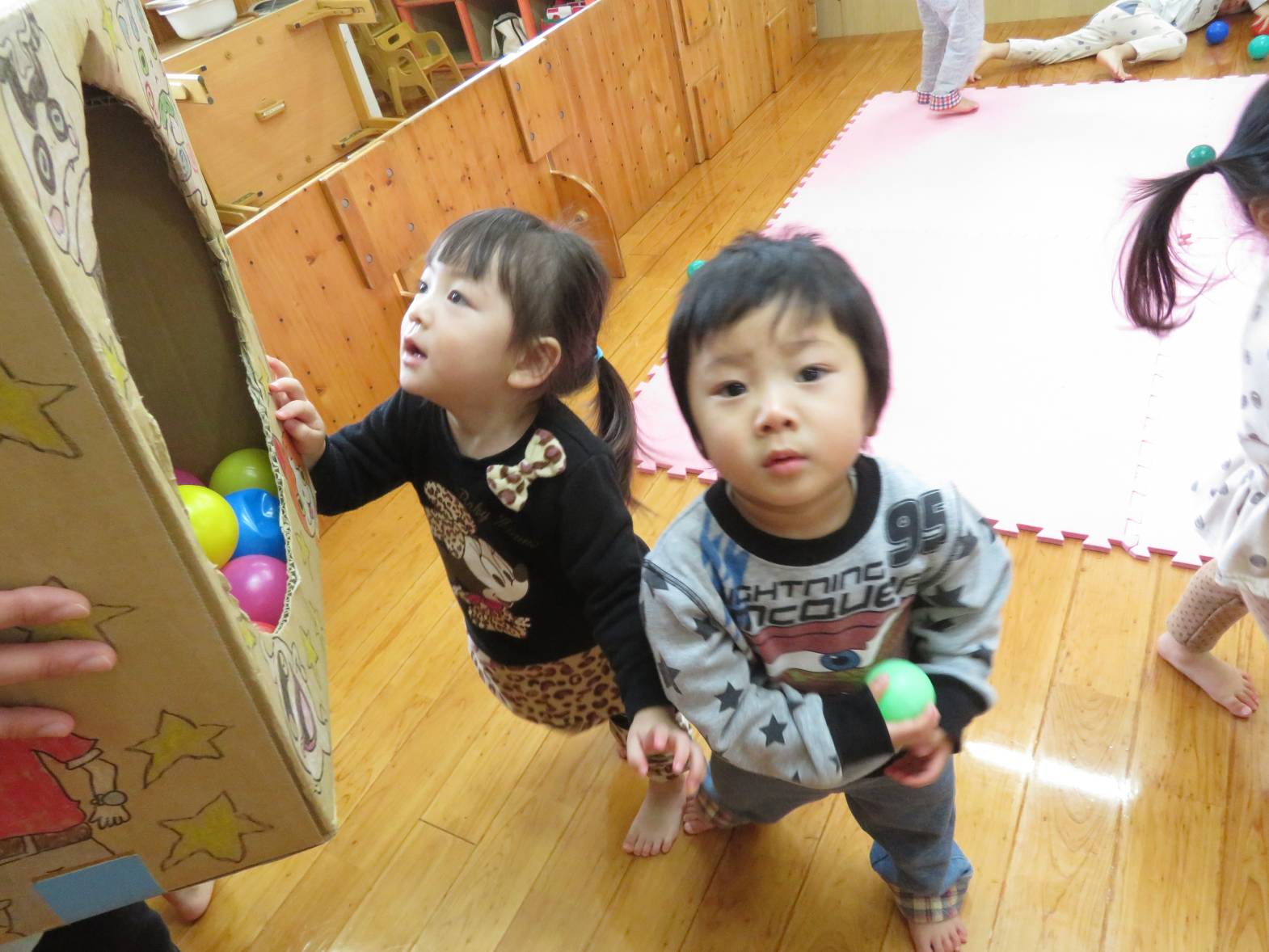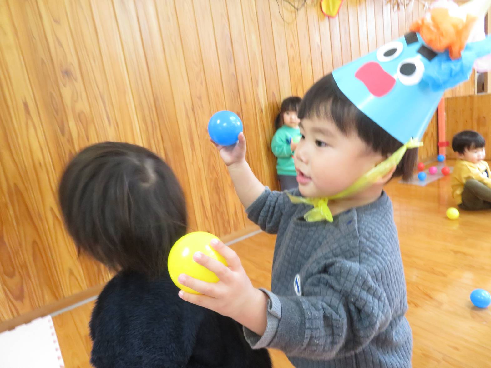 鬼が登場すると、涙を流す子どもたちが多かったですが、ボールを投げることができました。