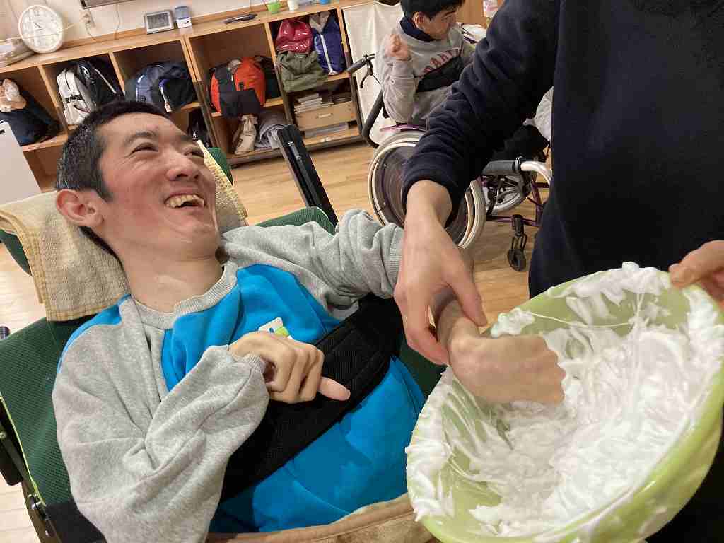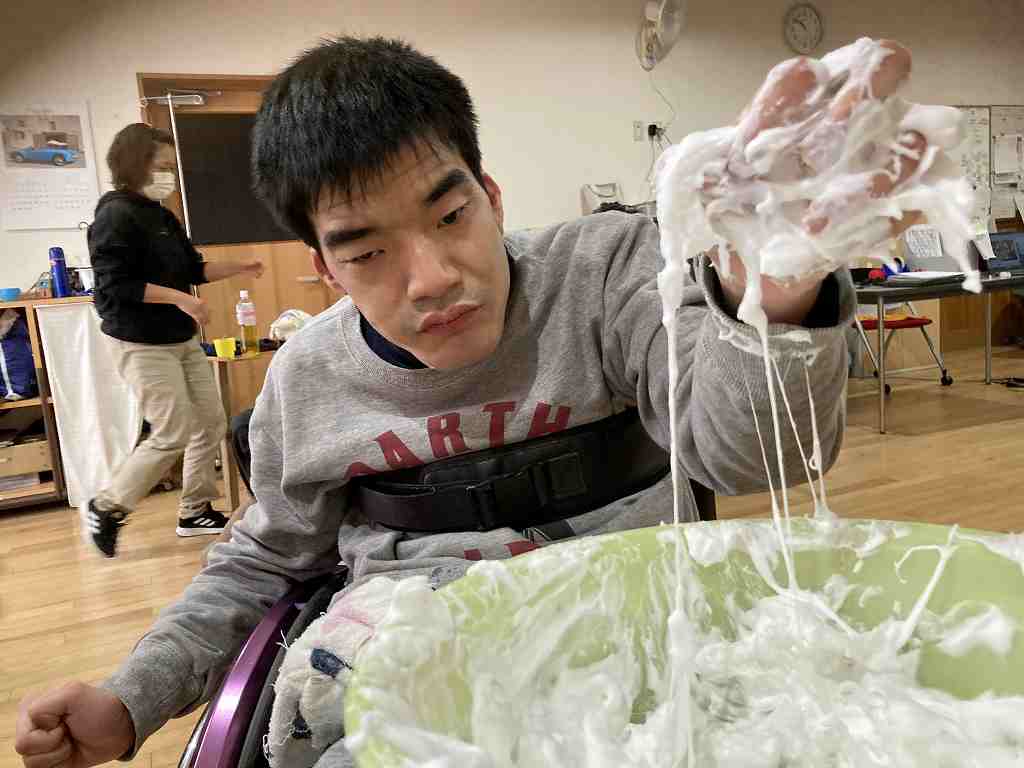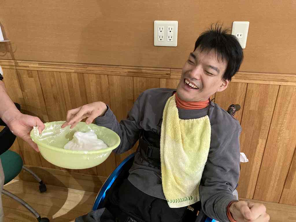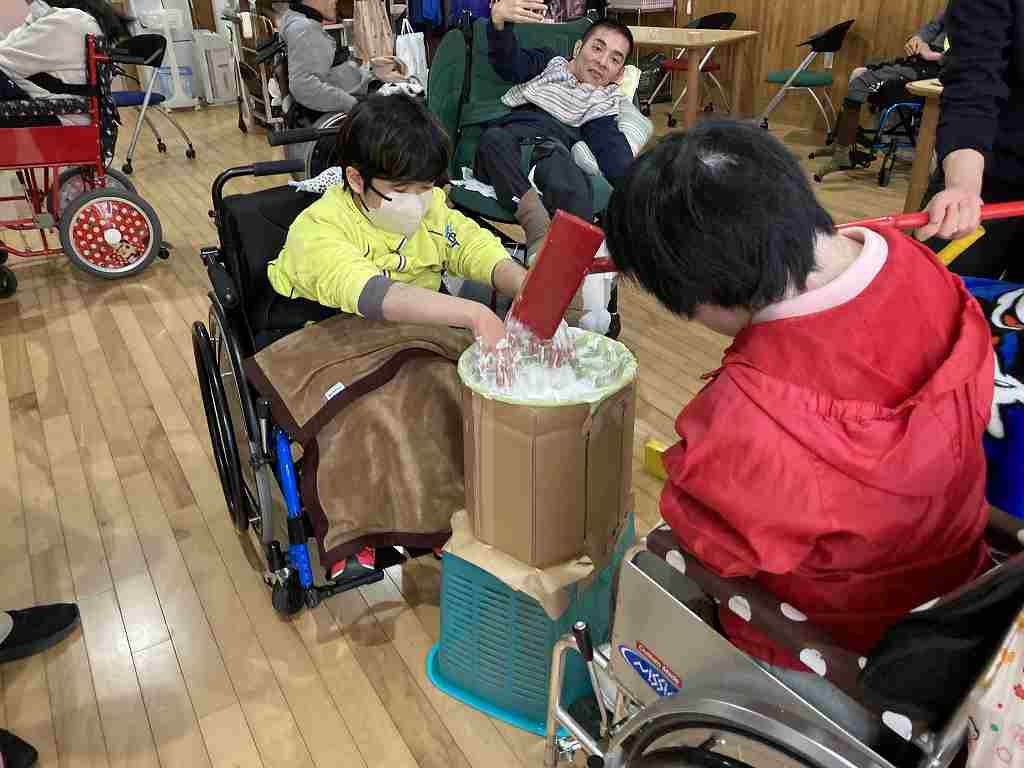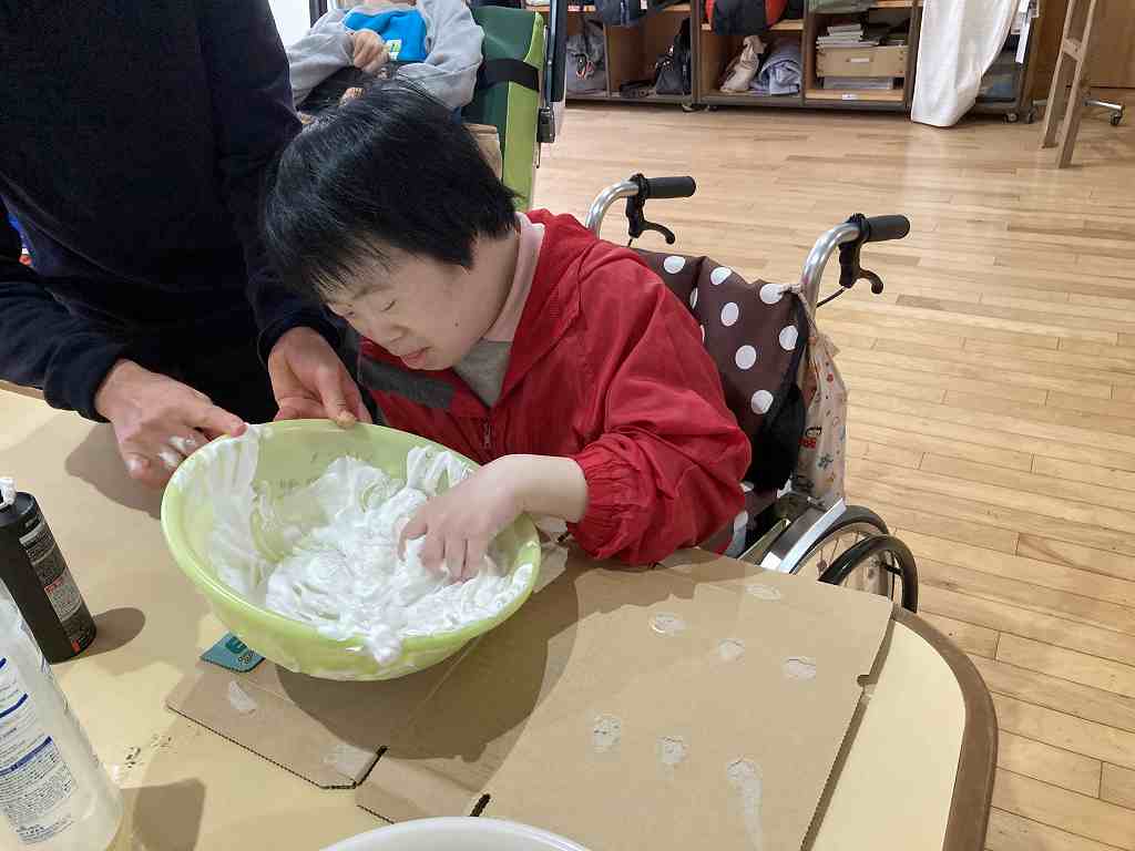 今日はレクリエーション活動で、餅つきゲームを行いました! 新年初めてのレクリエーションということで、今回は1月にちなんで「餅」をテーマに活動を行いました。 材料を入れてひたすらこねます! 材料を混ぜて、根気よく混ぜます! 少し固まってきたら、次は杵でつきながら手でこねます! 「よいしょー!」の掛け声で息を合わせます。 すると・・・段々と固まってきました! 取り出して形を整え・・・立派な鏡餅が完成しました★ 鏡餅ひとつあるだけで、新年の雰囲気を味わえますね。