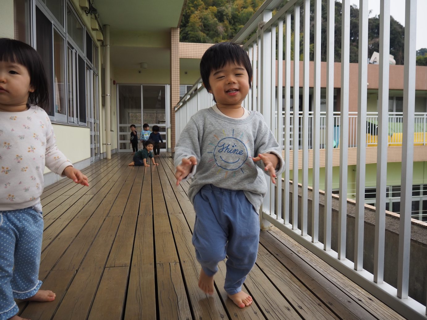 おやつが終わった後は元気に外で遊ぶこあら組さん。