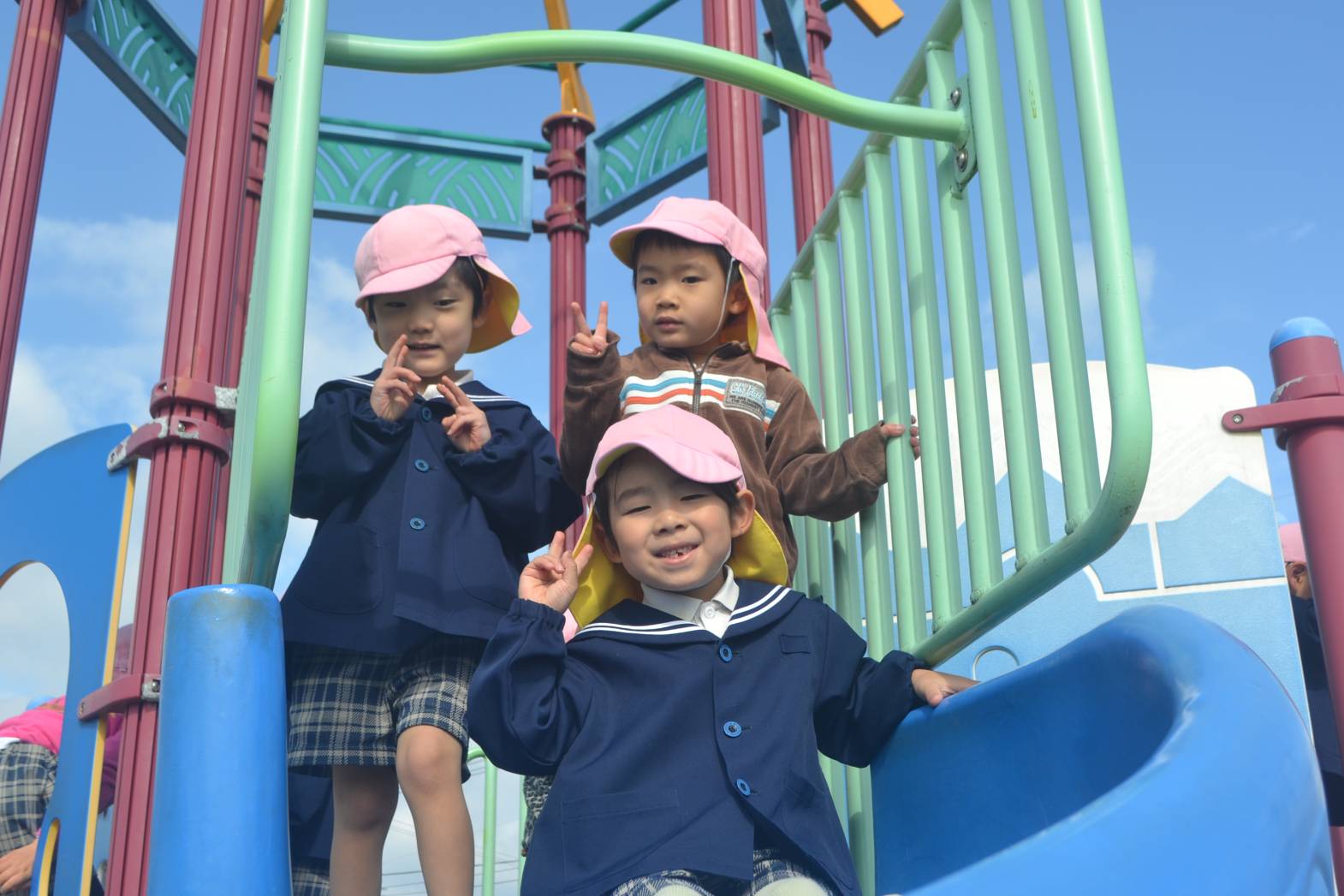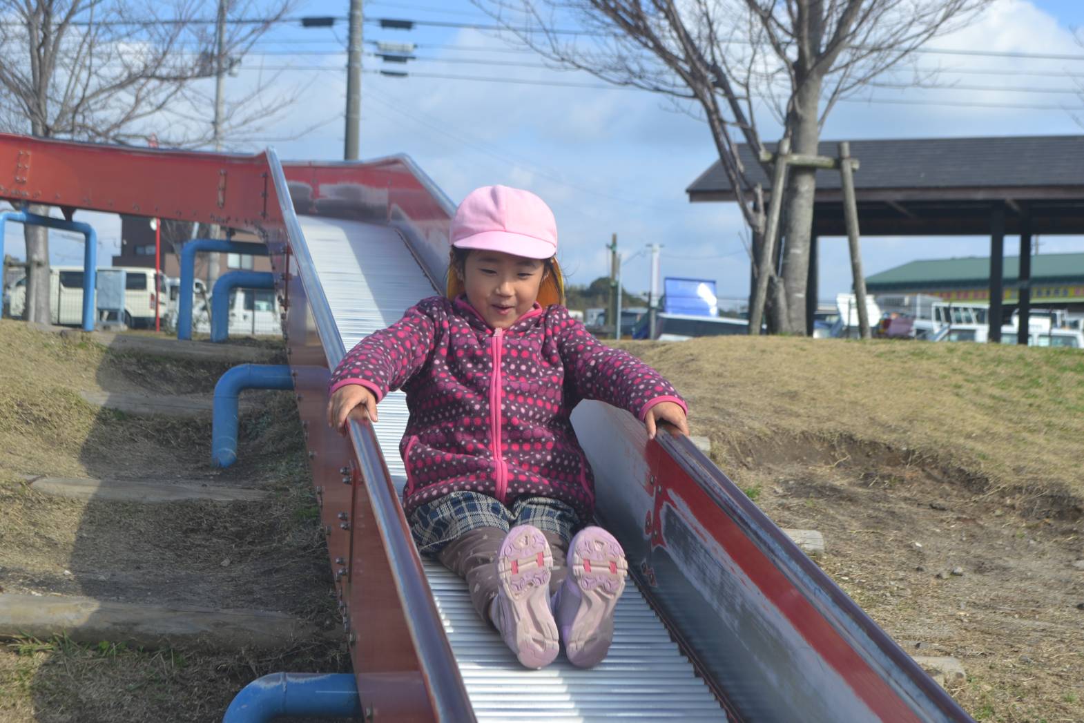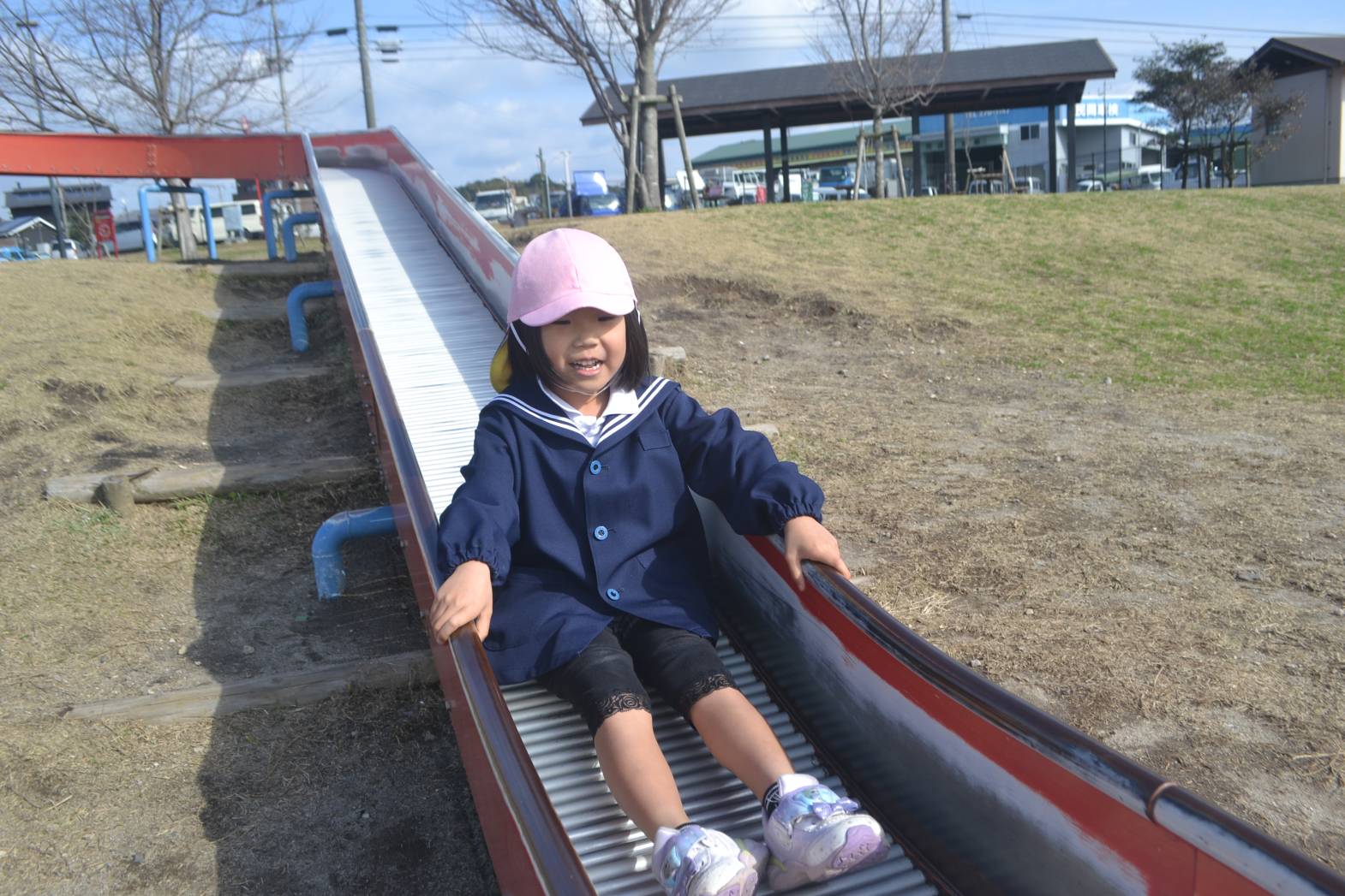 大きな滑り台に興味津々な様子が見られました。