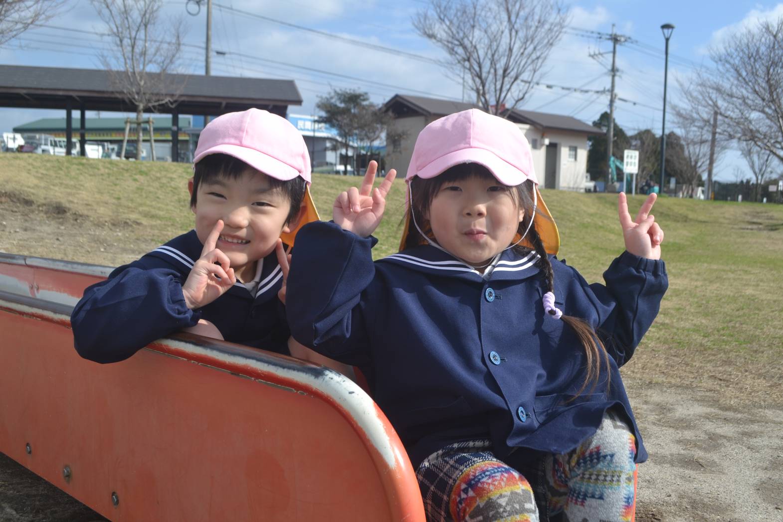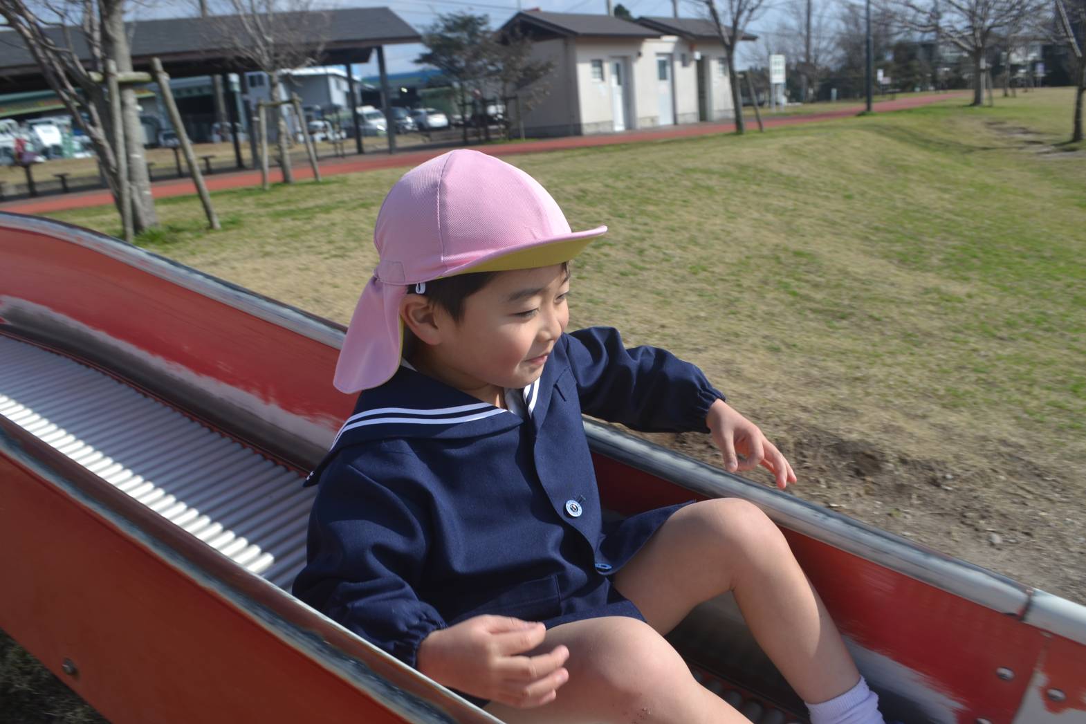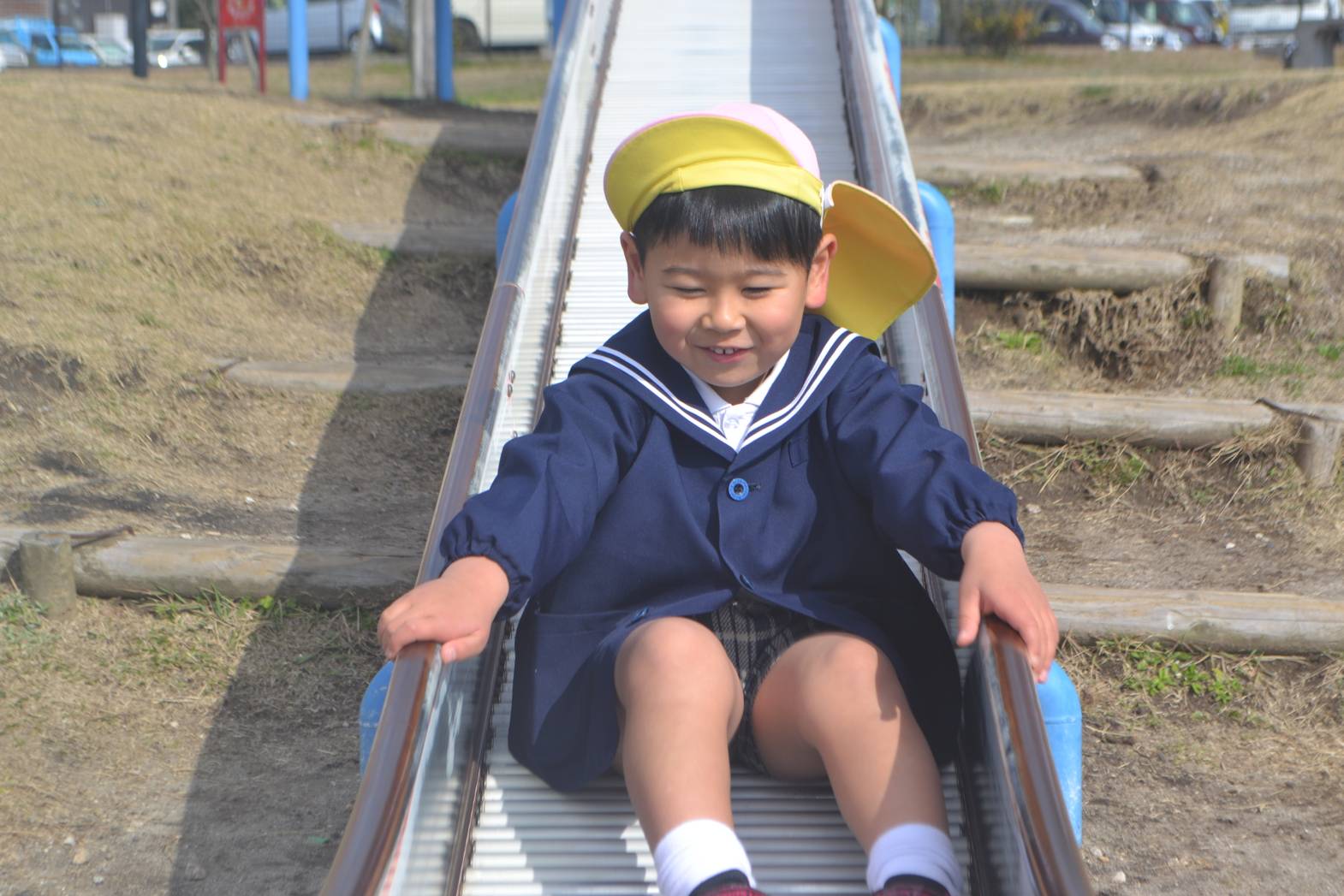 大きな滑り台に興味津々な様子が見られました。