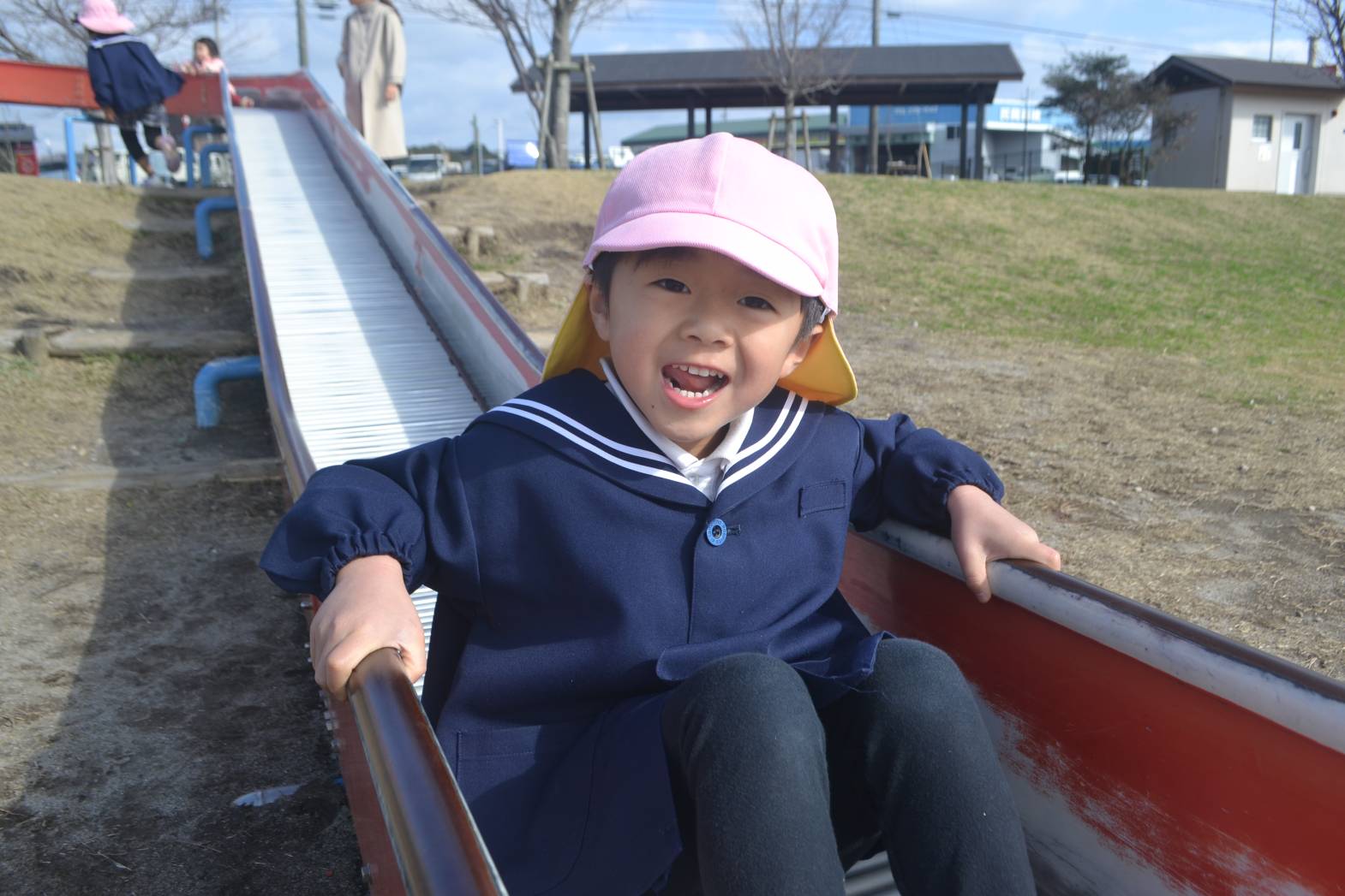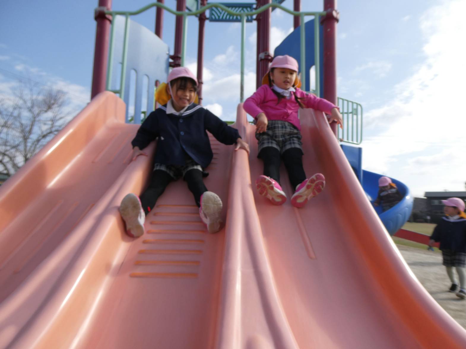 友だちに「こっちの長いローラー滑り台で遊ぼう!」と、誘っていた子どもたち。