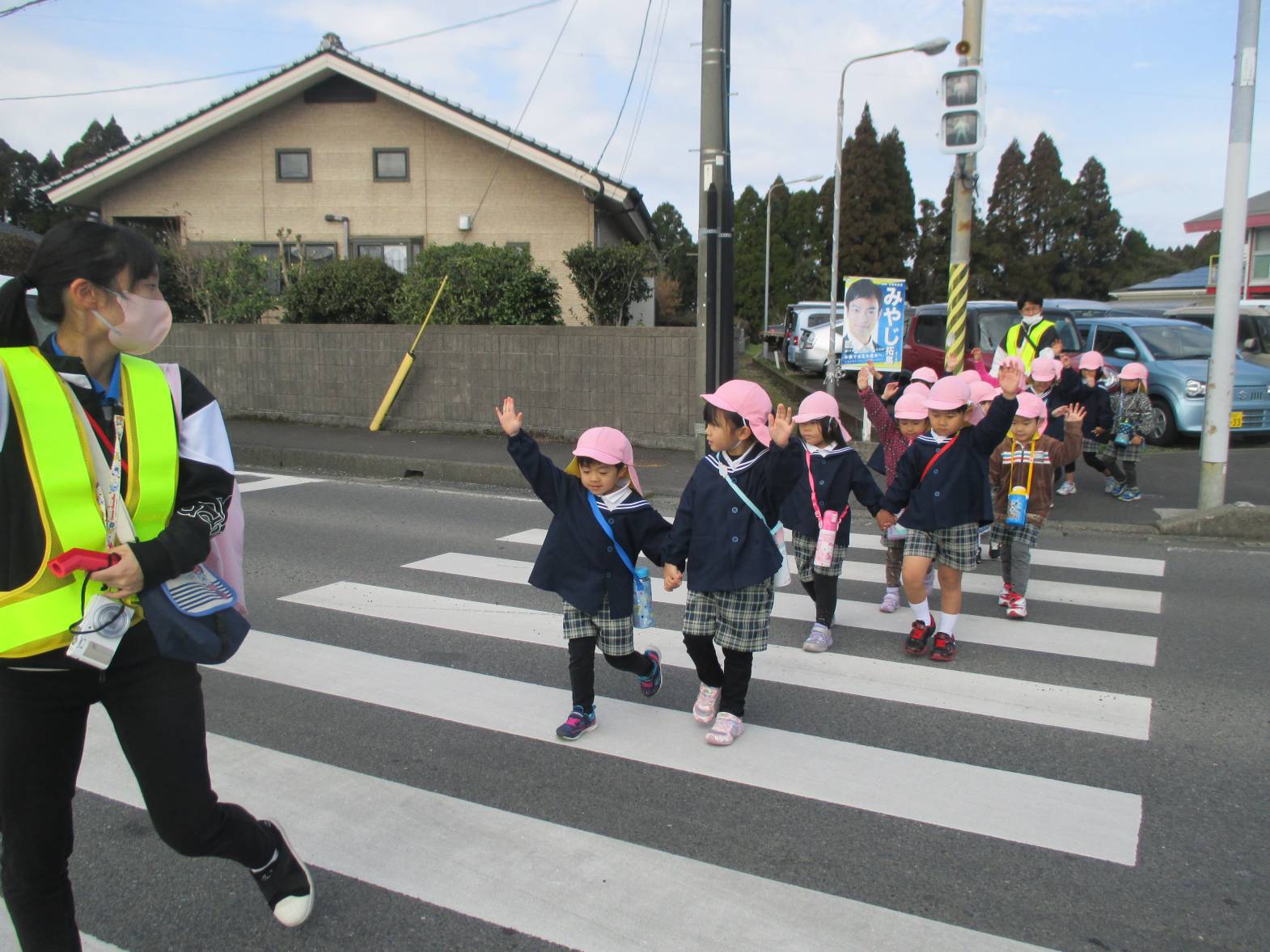 横断歩道では、「青になったら手をあげて渡る。」と確認し合う姿が見られました。