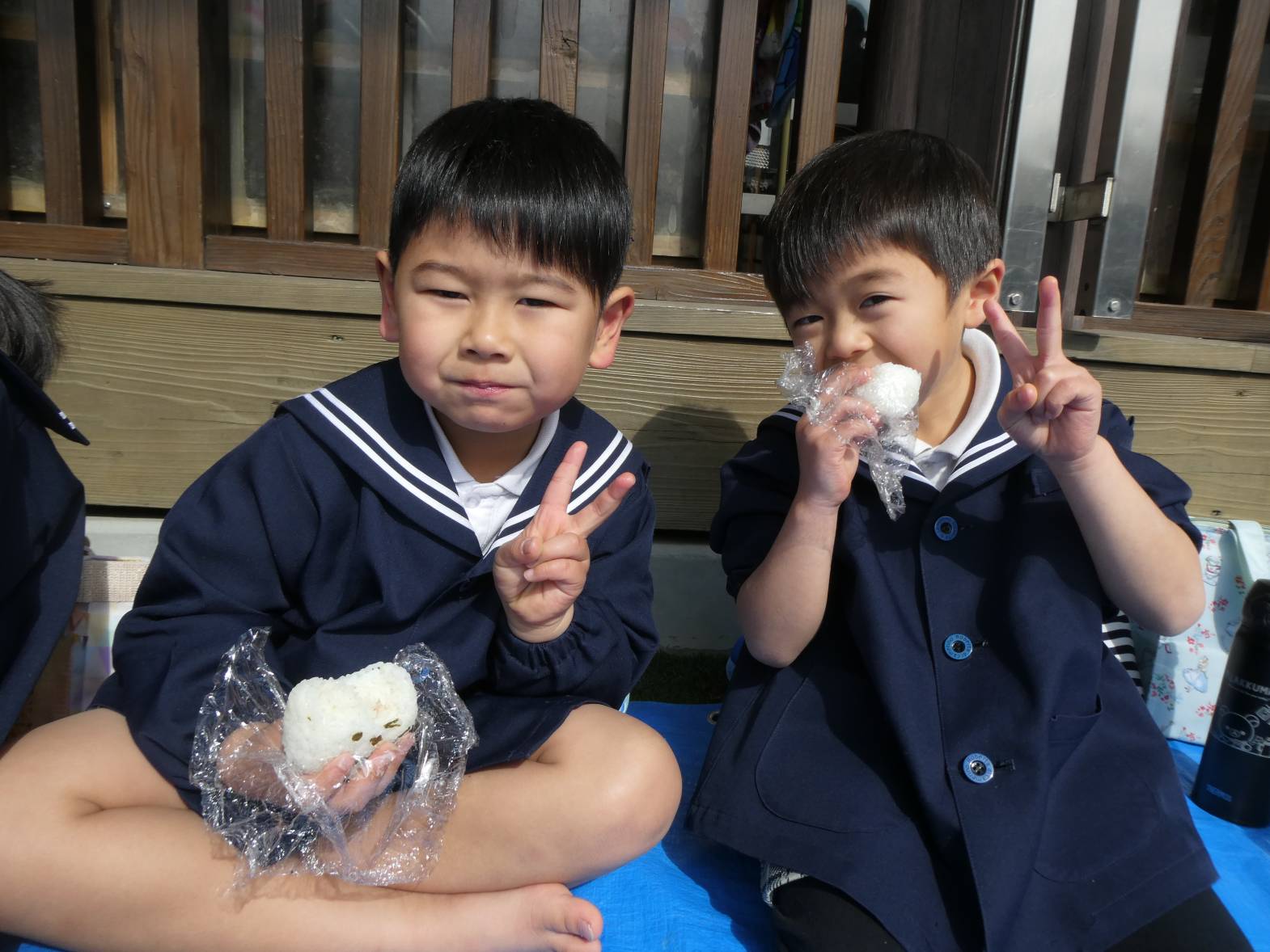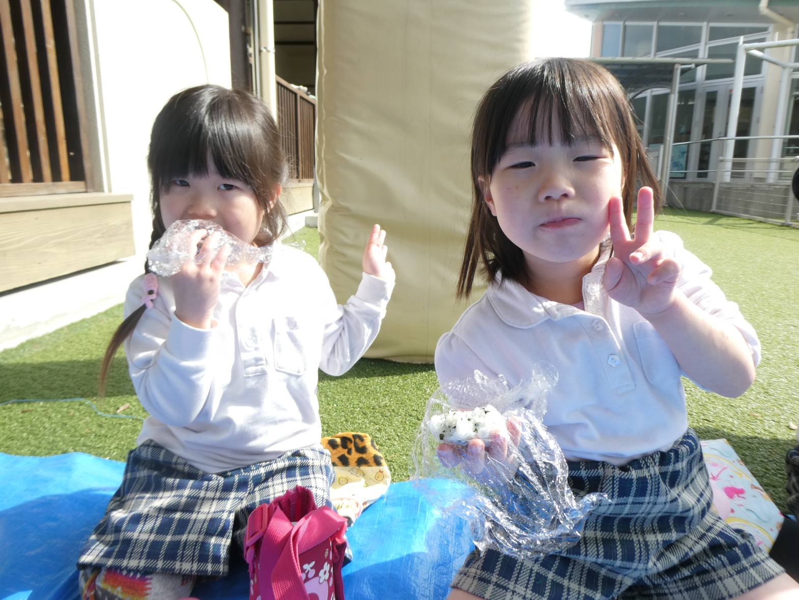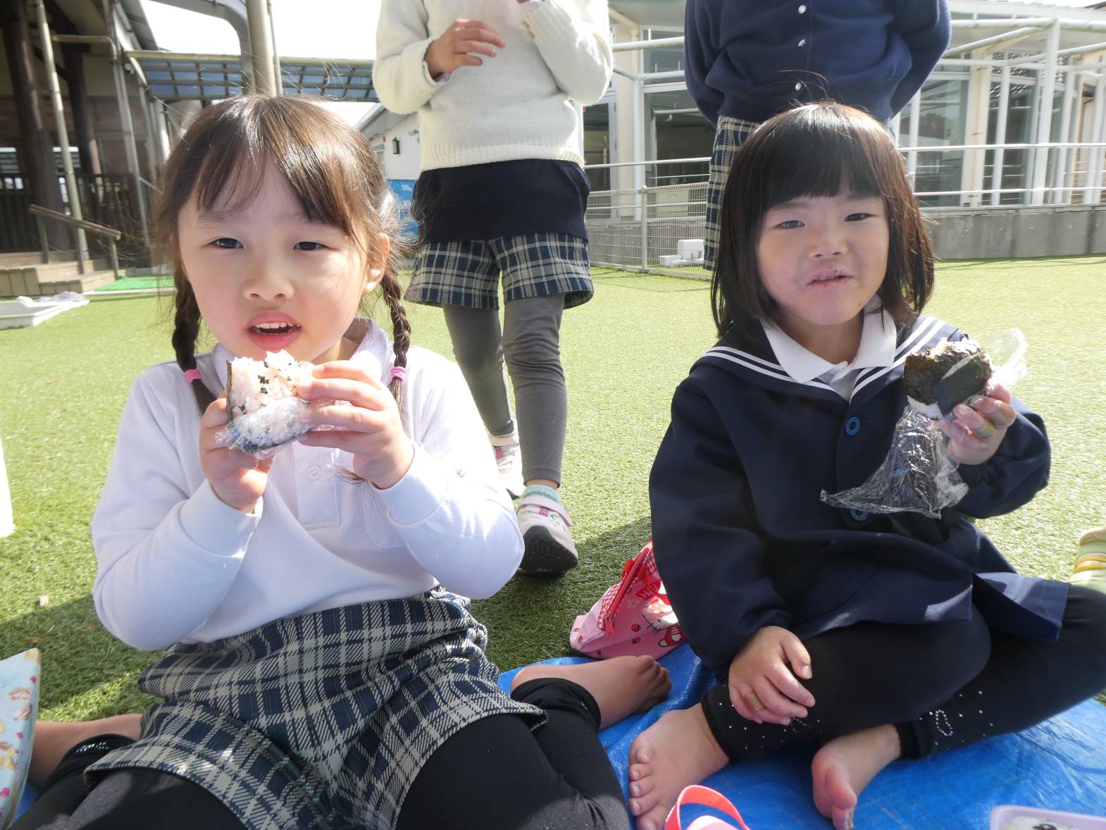 園に到着したら皆が楽しみにしていたおむすびの時間です!