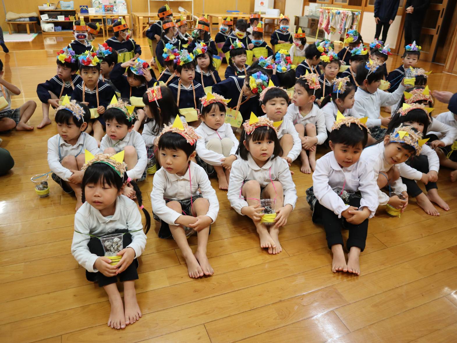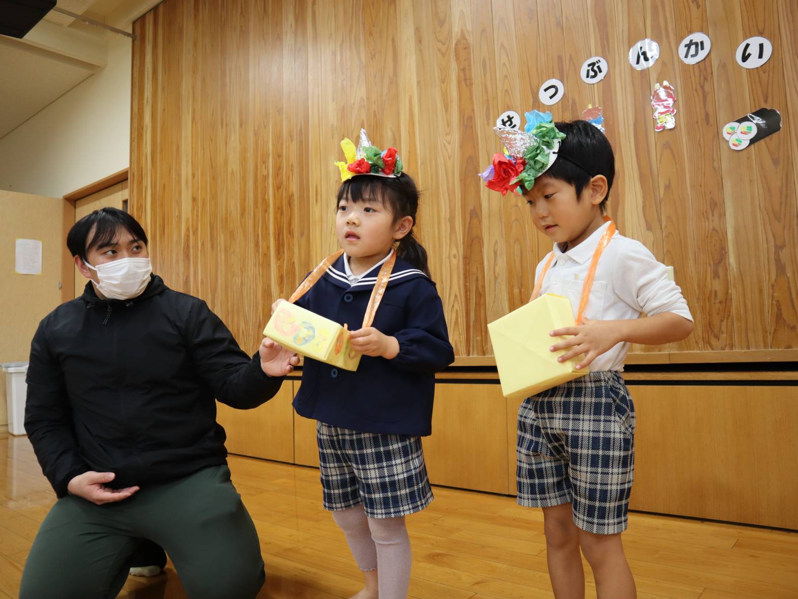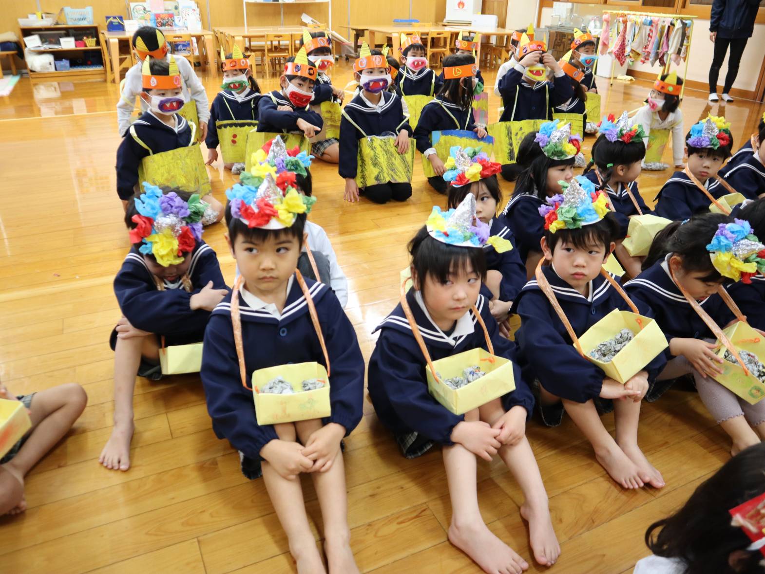 節分会では、節分に関する紙芝居を見たり由来について話を聞いたりしました。