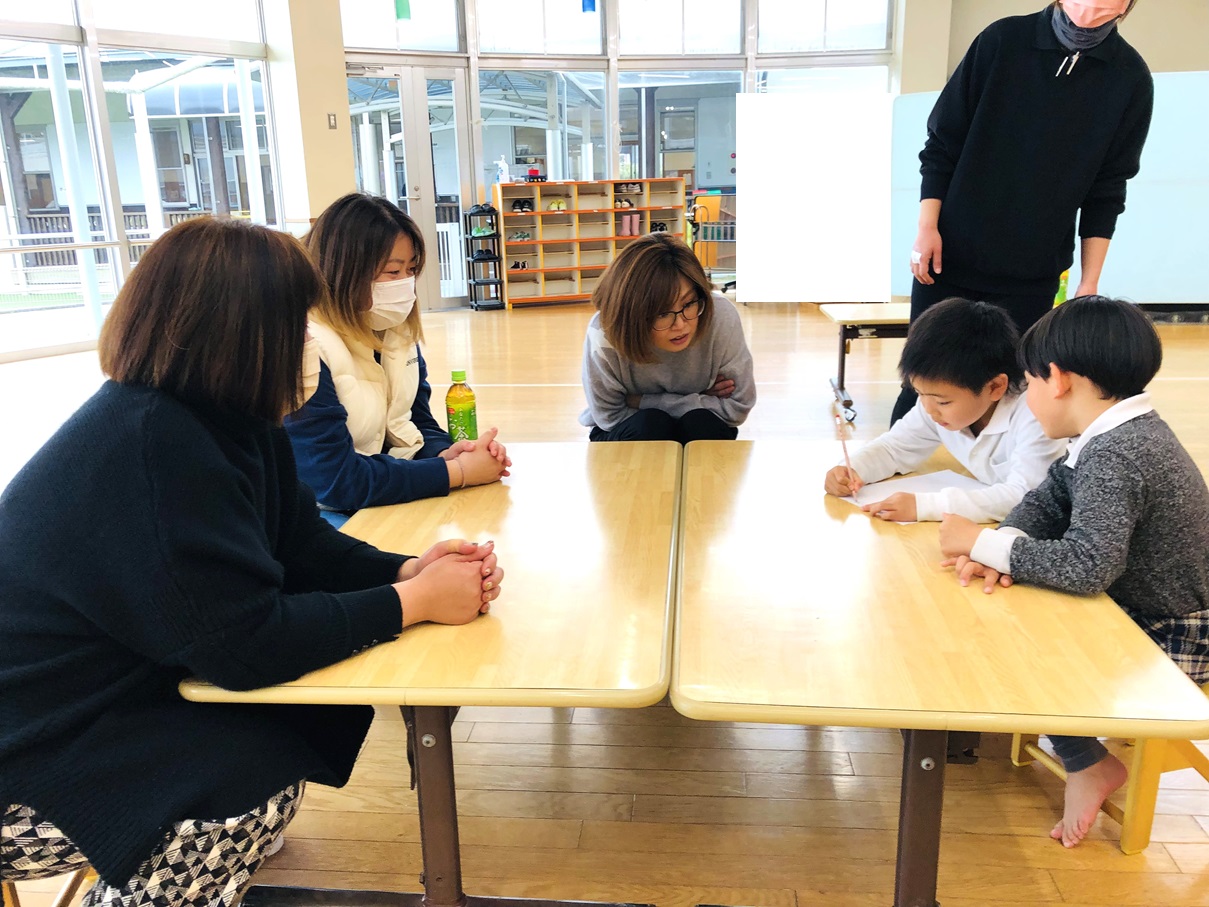最後にお母さんチーム対子どもたちチームでも対戦し、残念ながら子どもチームは負けてしまいましたが、「これすごく楽しかった!お家でもお母さんとする!」と大満足な様子でした♪