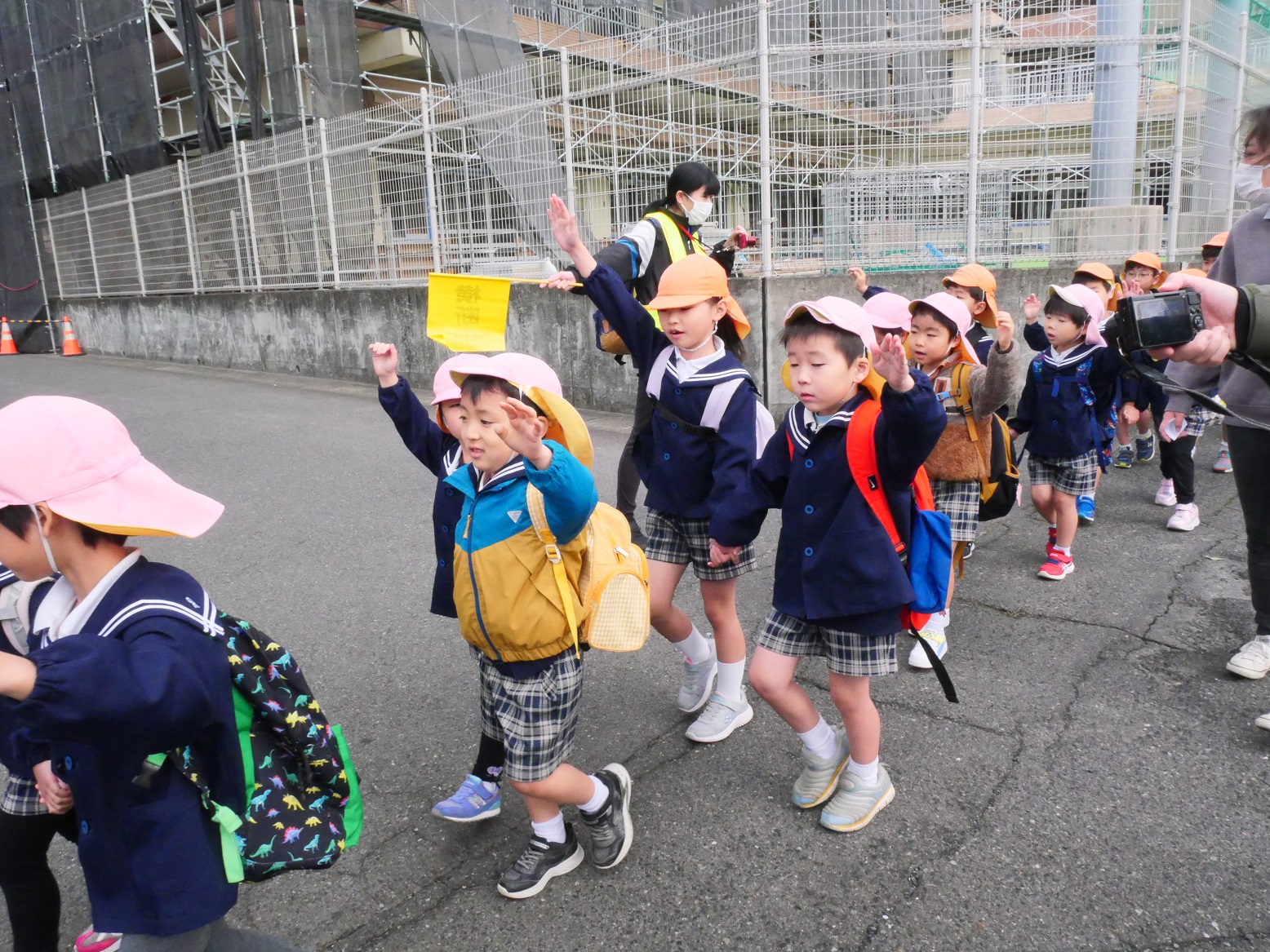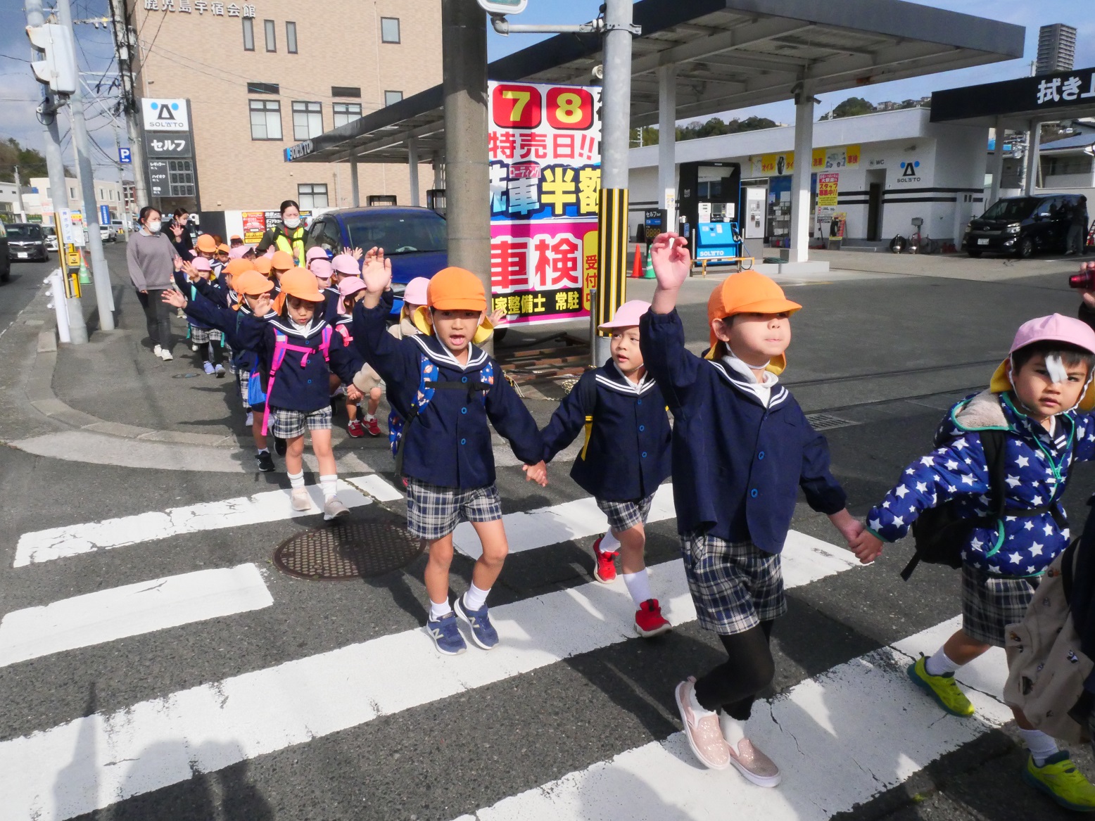 横断歩道もしっかり手を挙げて上手にわたることができました。