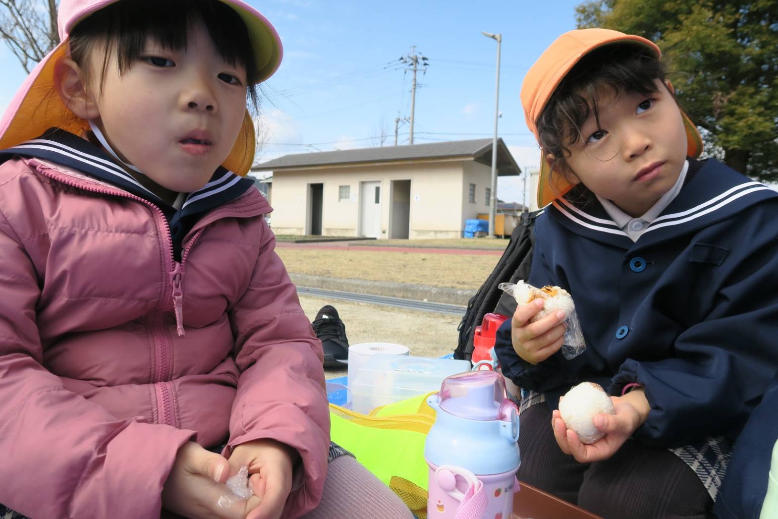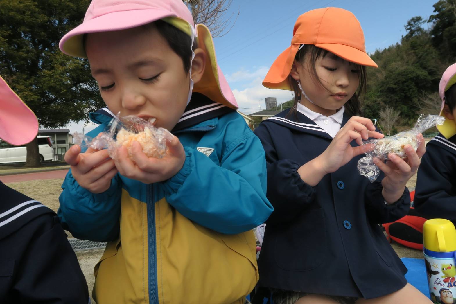 「見て!僕んおにぎり美味しそうでしょ!」と得意げな顔で頬張りました。
