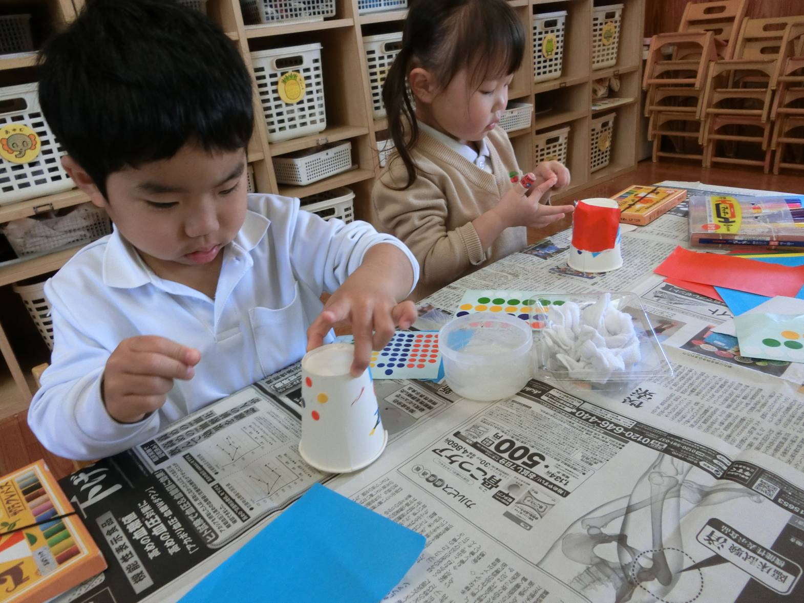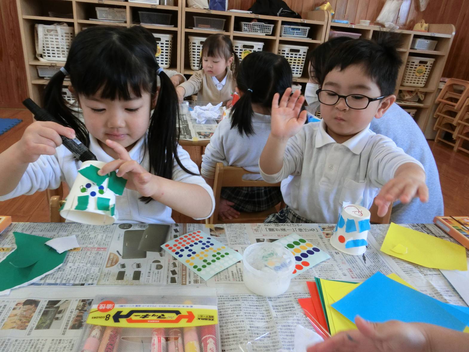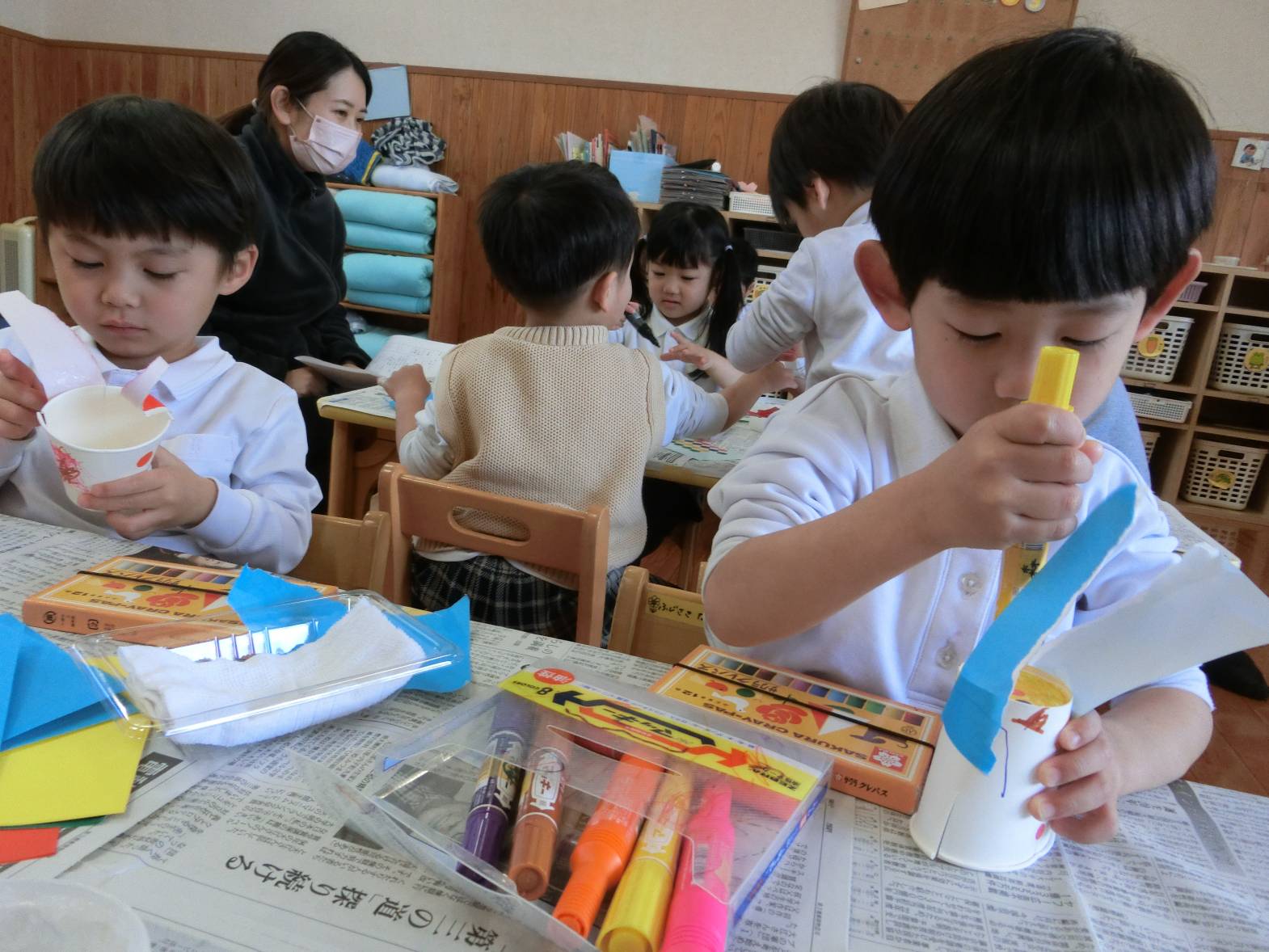 「見てこんなウサギにしたよ。」、「お母さんに帰って教える。」、「○○先生明日も来てね。」とすっかり実習生と仲良しになった子どもたちでした。