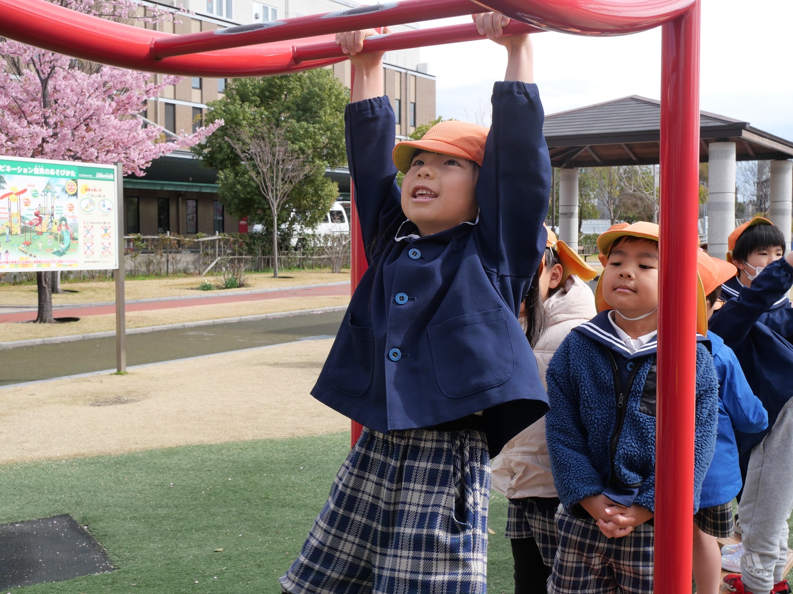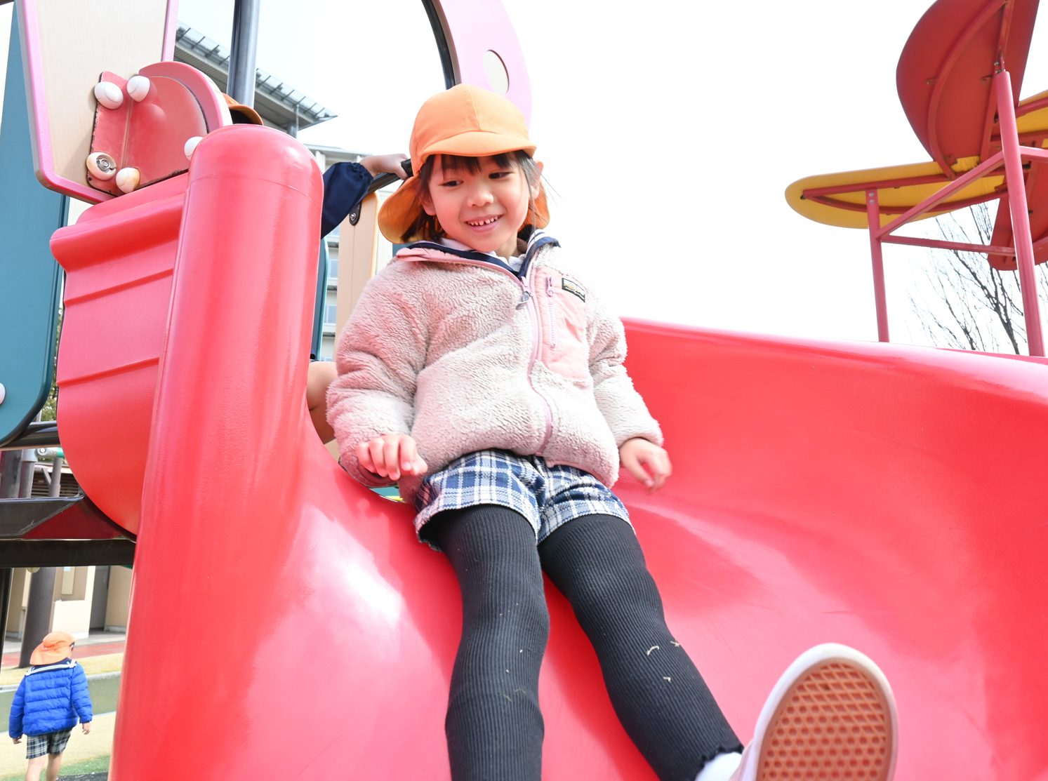 「雲梯、できるかな?」「この滑り台、ゆっくり滑って面白い!」と、体を思い切り動かしながら遊ぶ姿が見られました。
