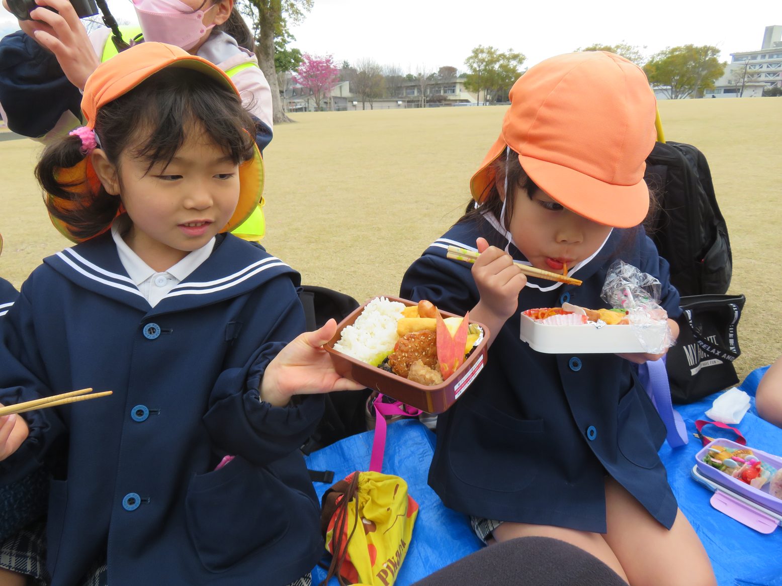 たくさん遊んだ後は楽しみにしていた、お弁当とおやつの時間。