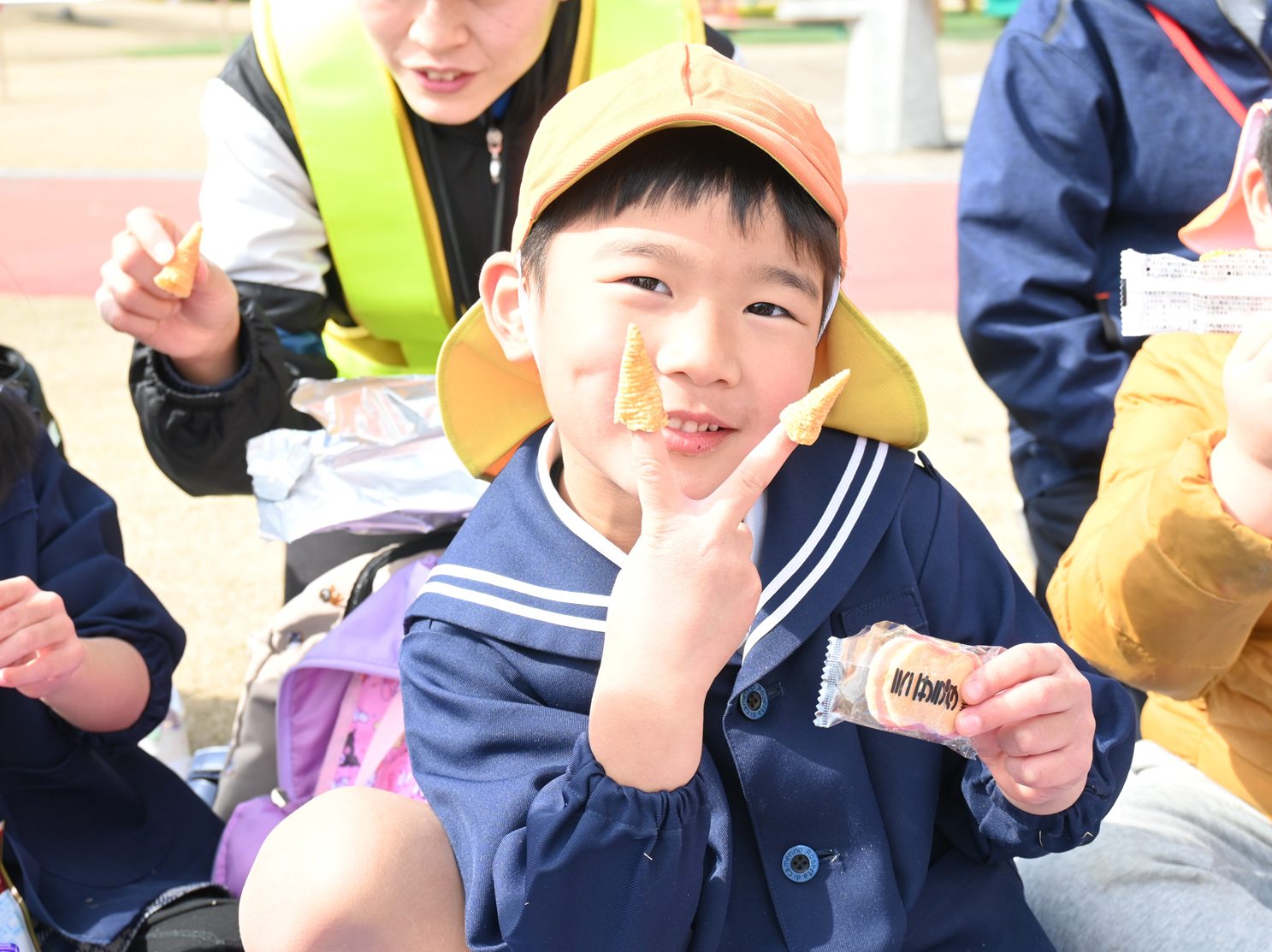 「足が疲れたけど、電車が見れて嬉しかった。」「みんなでおやつ交換するの、楽しかったね!」と、今日の遠足を嬉しそうに振り返っていました。