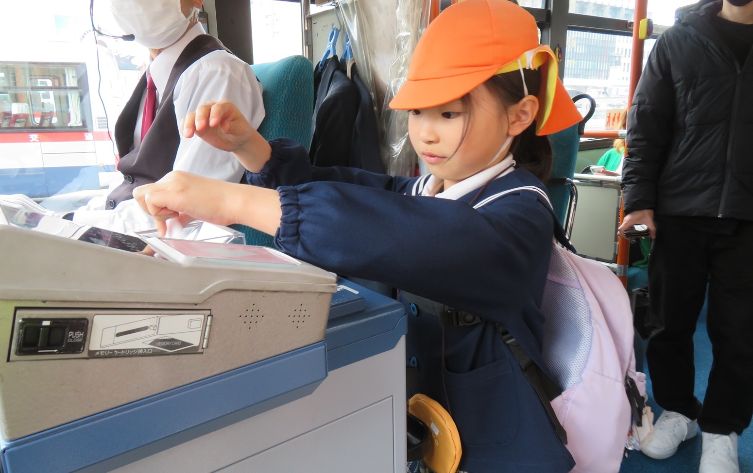 「ここでお金を出すの?」「少し緊張した!」とドキドキしながらも、バスのお金を自分たちで払うことができました。