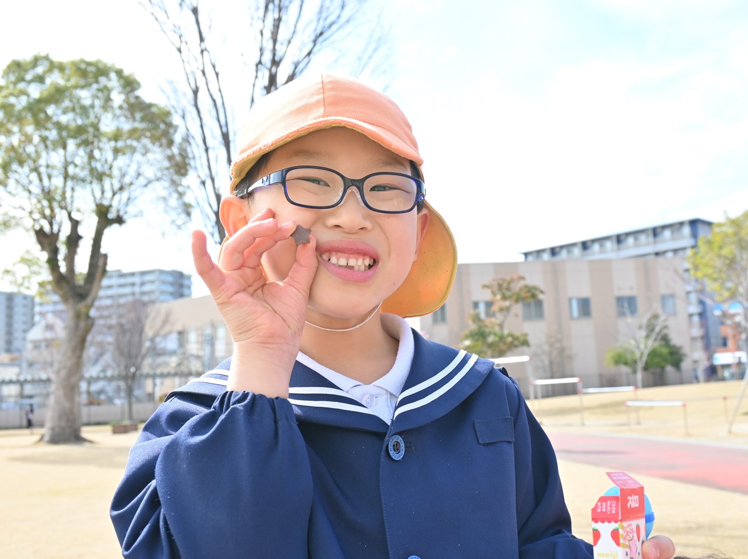 「僕の弁当には、卵焼きが入っているの。」「〇〇ちゃんと同じおやつだ!」と、会話を弾ませながら食べ進めていました。