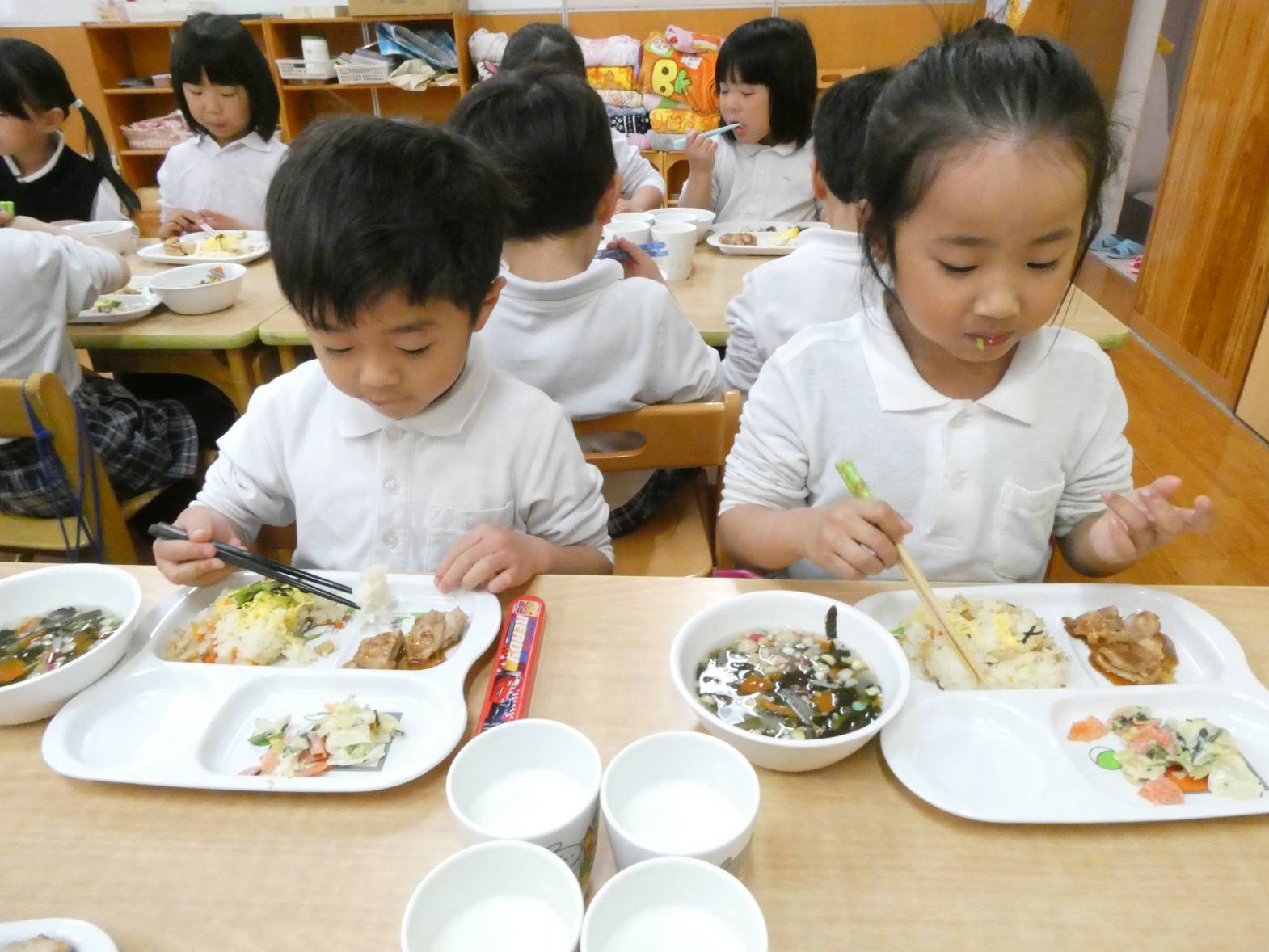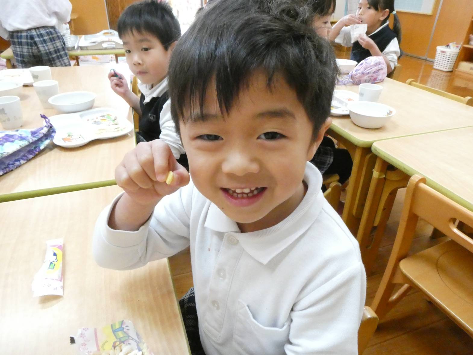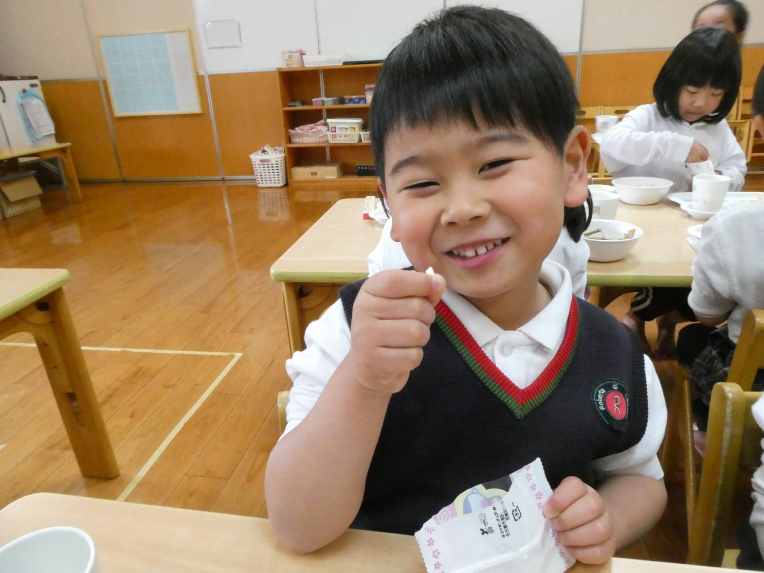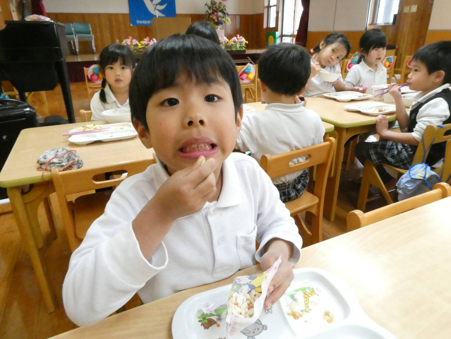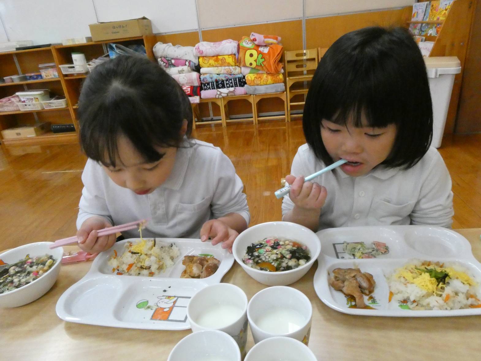 今日は、わくわくメニューの日でした。 「今日、わくわくメニューだよね!」、「ひなあられあるかな?」と、楽しみにしていた子どもたち。 給食が配膳されると、「美味しそう!」と言っている様子が見られました。 食べ進めていく中で、「今日、ひな祭り会で話をしていたよね!」と会を思い出していた子どもたち。 ひなあられを食べる際には、「黄色と緑とピンクと白色全部あった!」と楽しみながら食べるうさぎ組さん。 今年もみんなが健康で過ごせますように~!