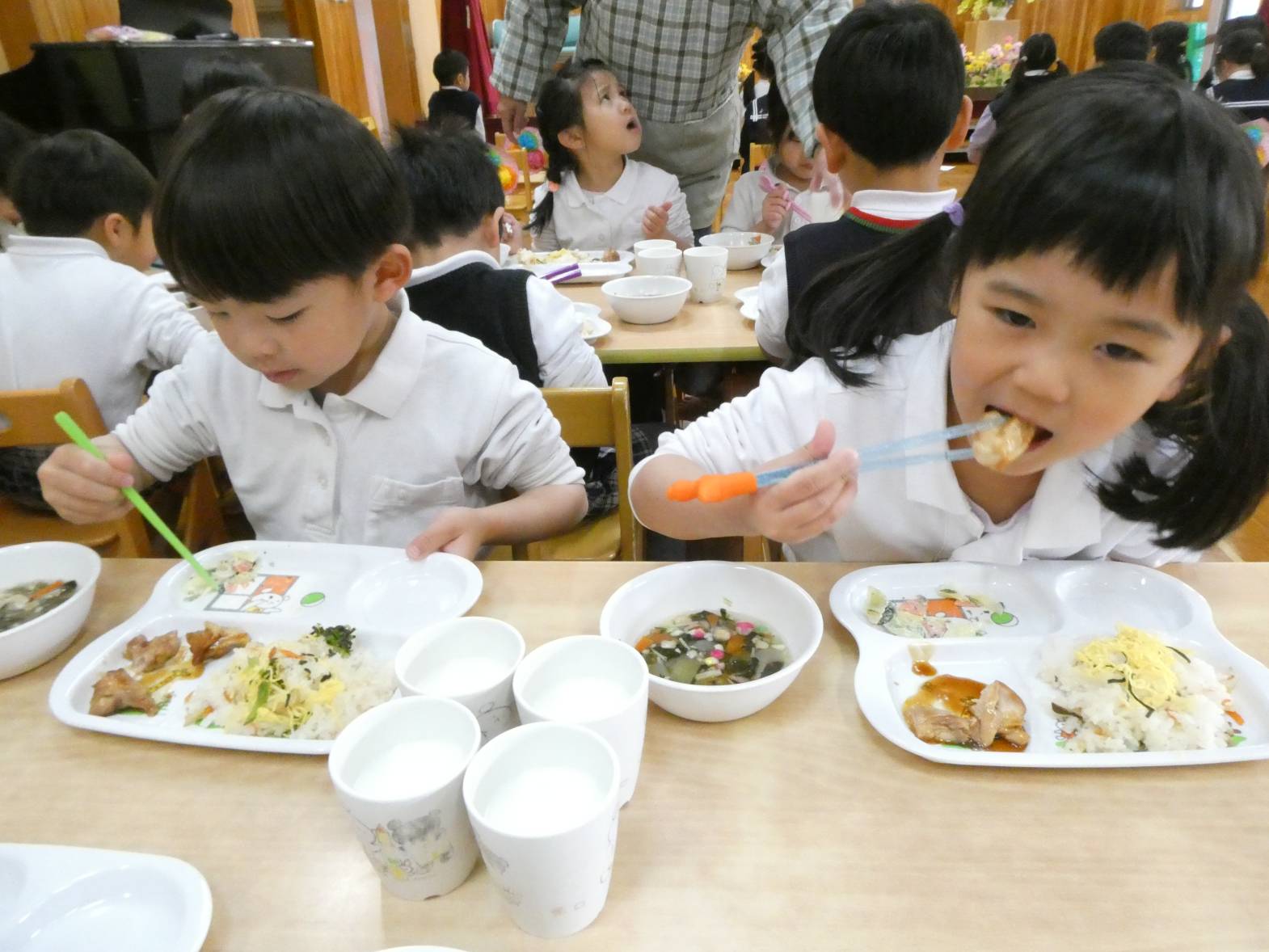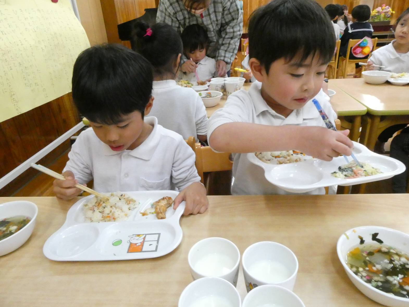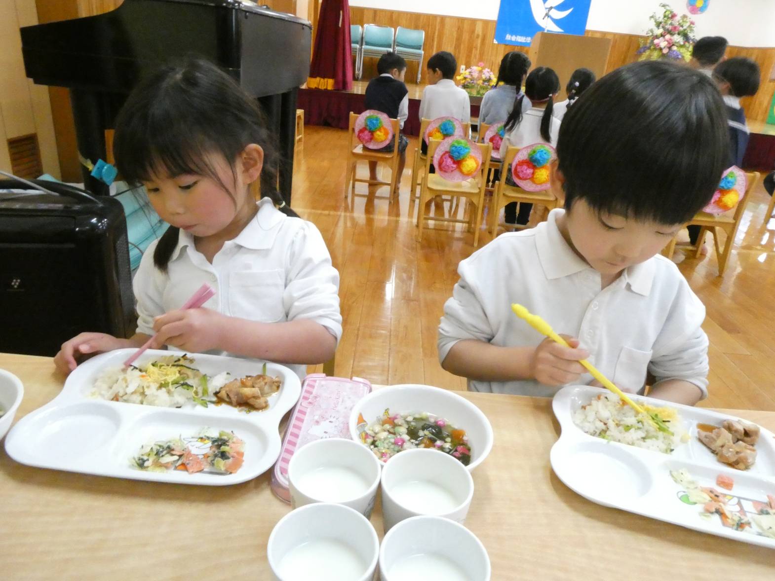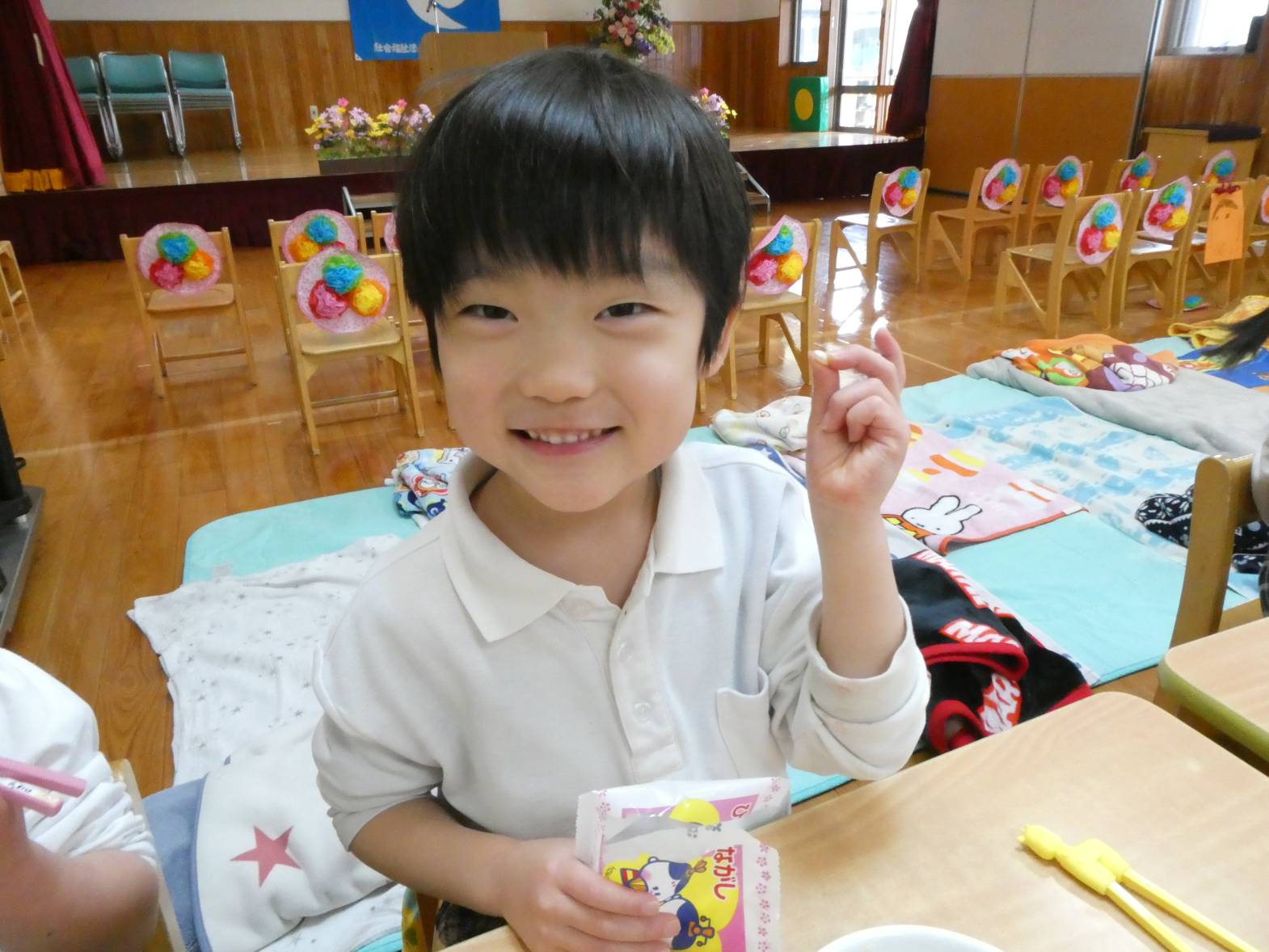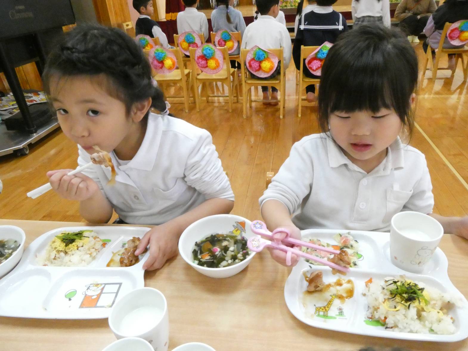 今日は、わくわくメニューの日でした。 「今日、わくわくメニューだよね!」、「ひなあられあるかな?」と、楽しみにしていた子どもたち。 給食が配膳されると、「美味しそう!」と言っている様子が見られました。 食べ進めていく中で、「今日、ひな祭り会で話をしていたよね!」と会を思い出していた子どもたち。 ひなあられを食べる際には、「黄色と緑とピンクと白色全部あった!」と楽しみながら食べるうさぎ組さん。 今年もみんなが健康で過ごせますように~!
