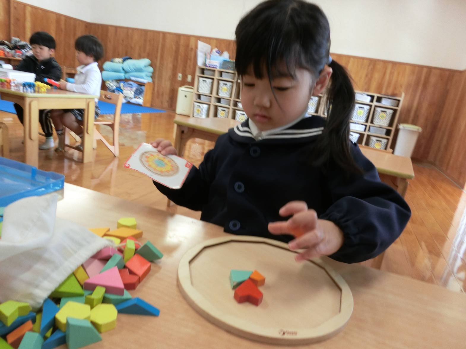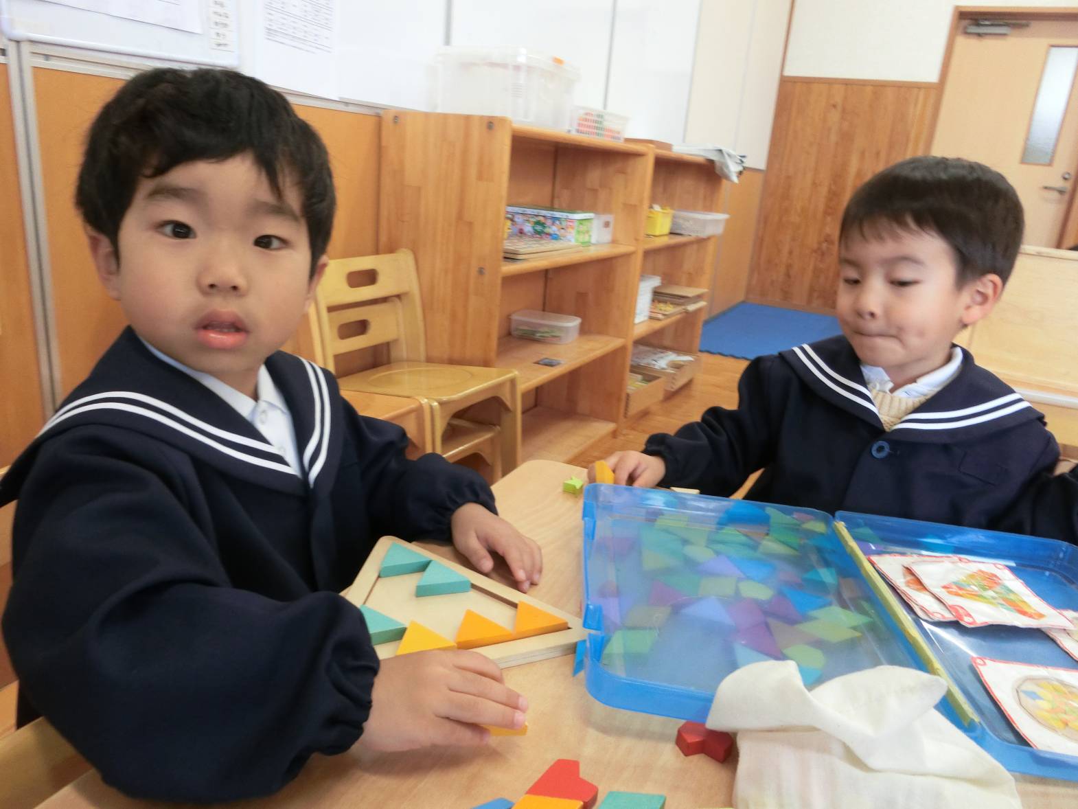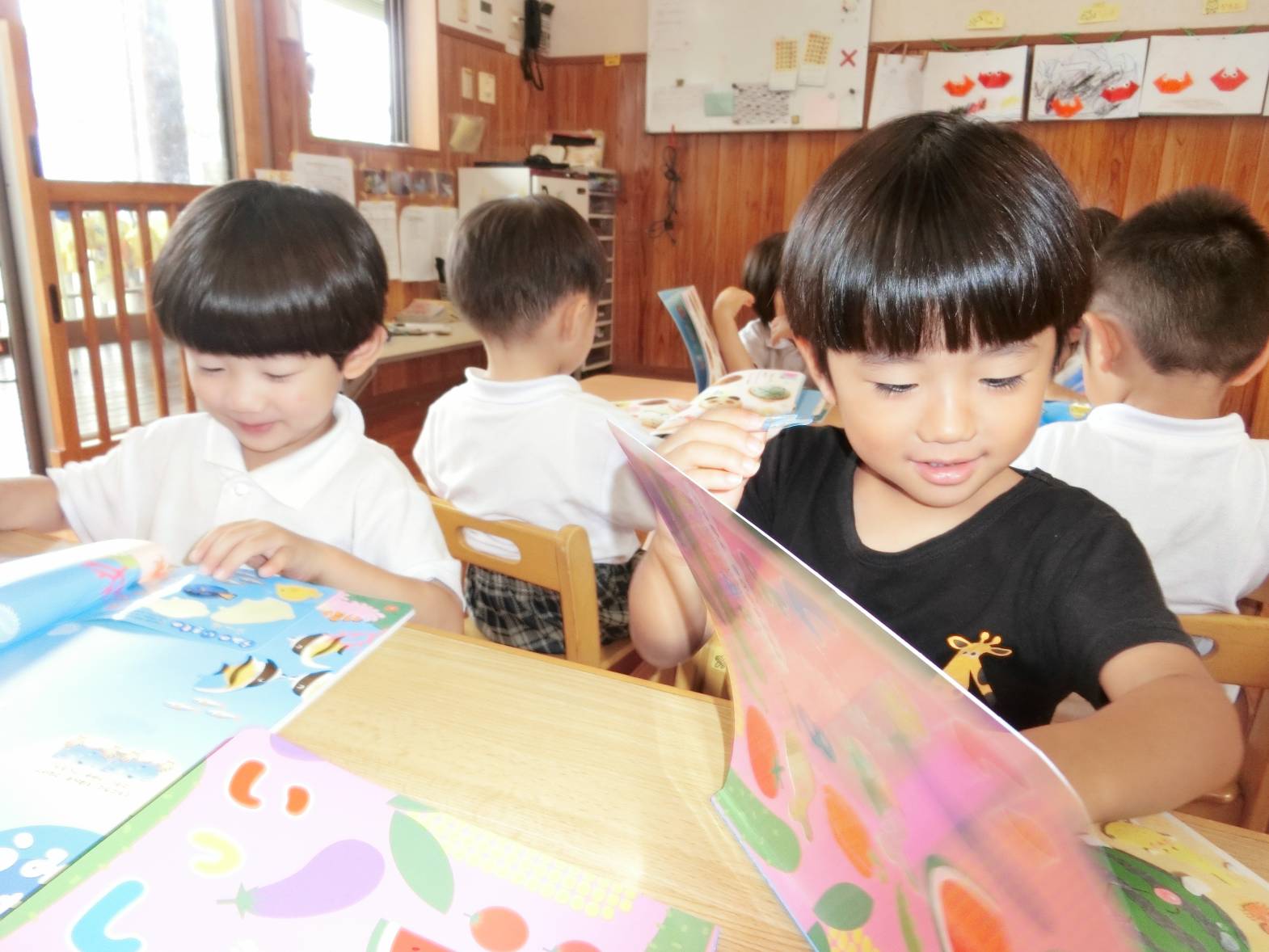りす組さんで過ごす最後の日でした。最初は、「できない」、「してー。」が口癖で「先生なにするの?これするの?」と何でも聞いていた子どもたち。