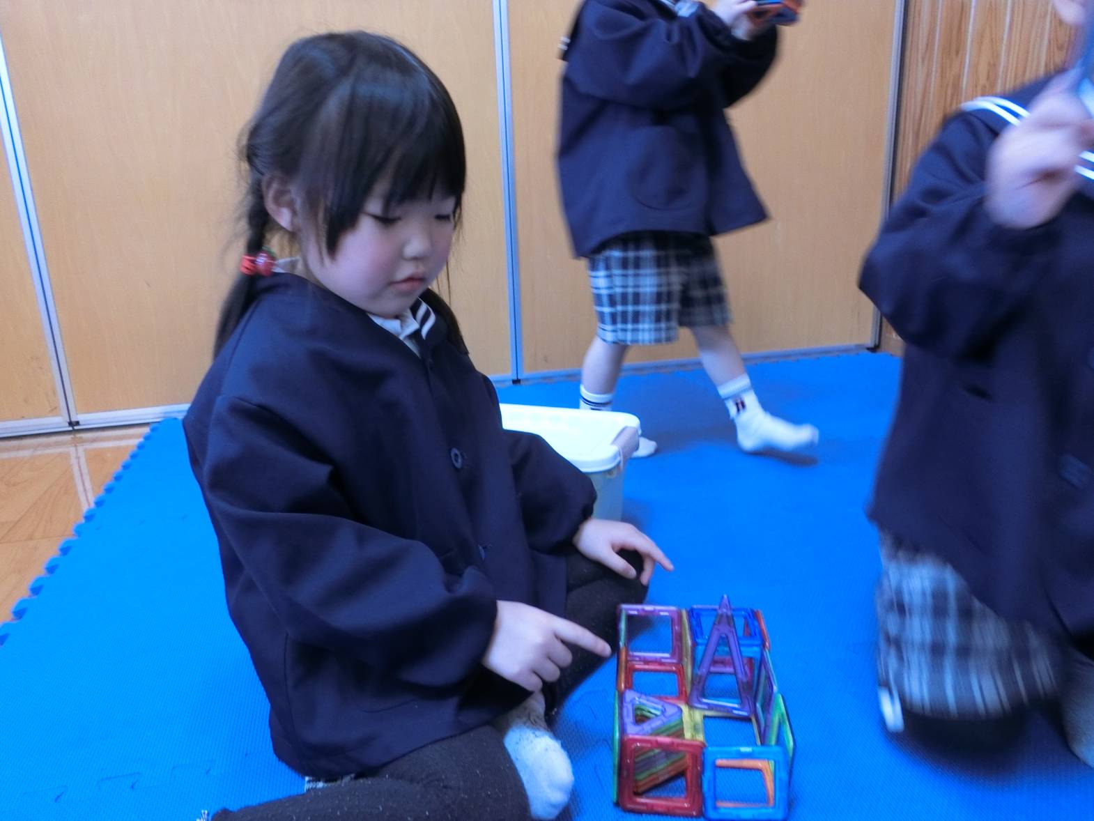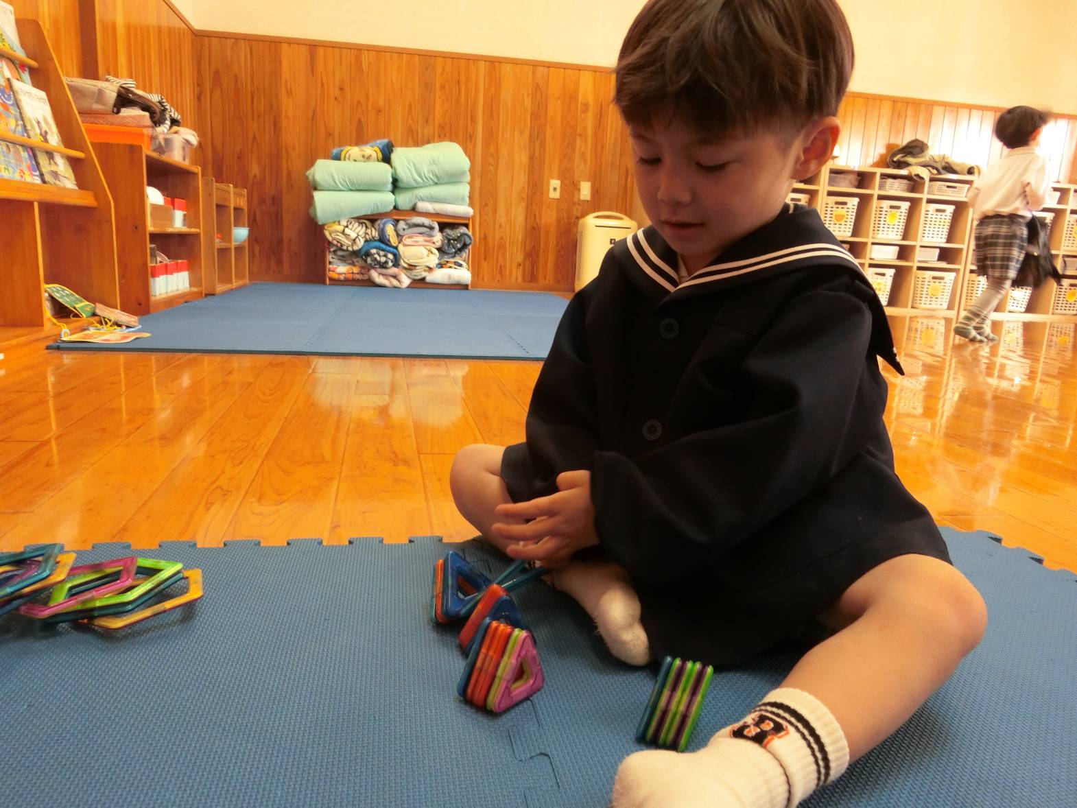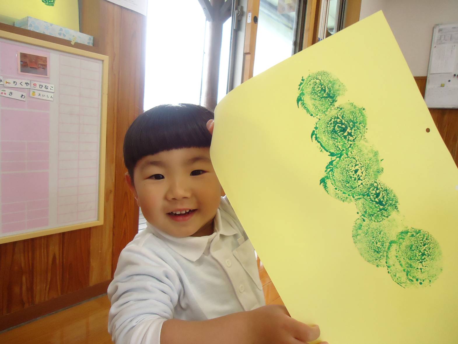 最近は、「4になったから片付けて、外に行く時間だよ。」、「今日は○○するって、先生が言ってたよ!」と保育者の話を1回で聞いて行動することができてきました。