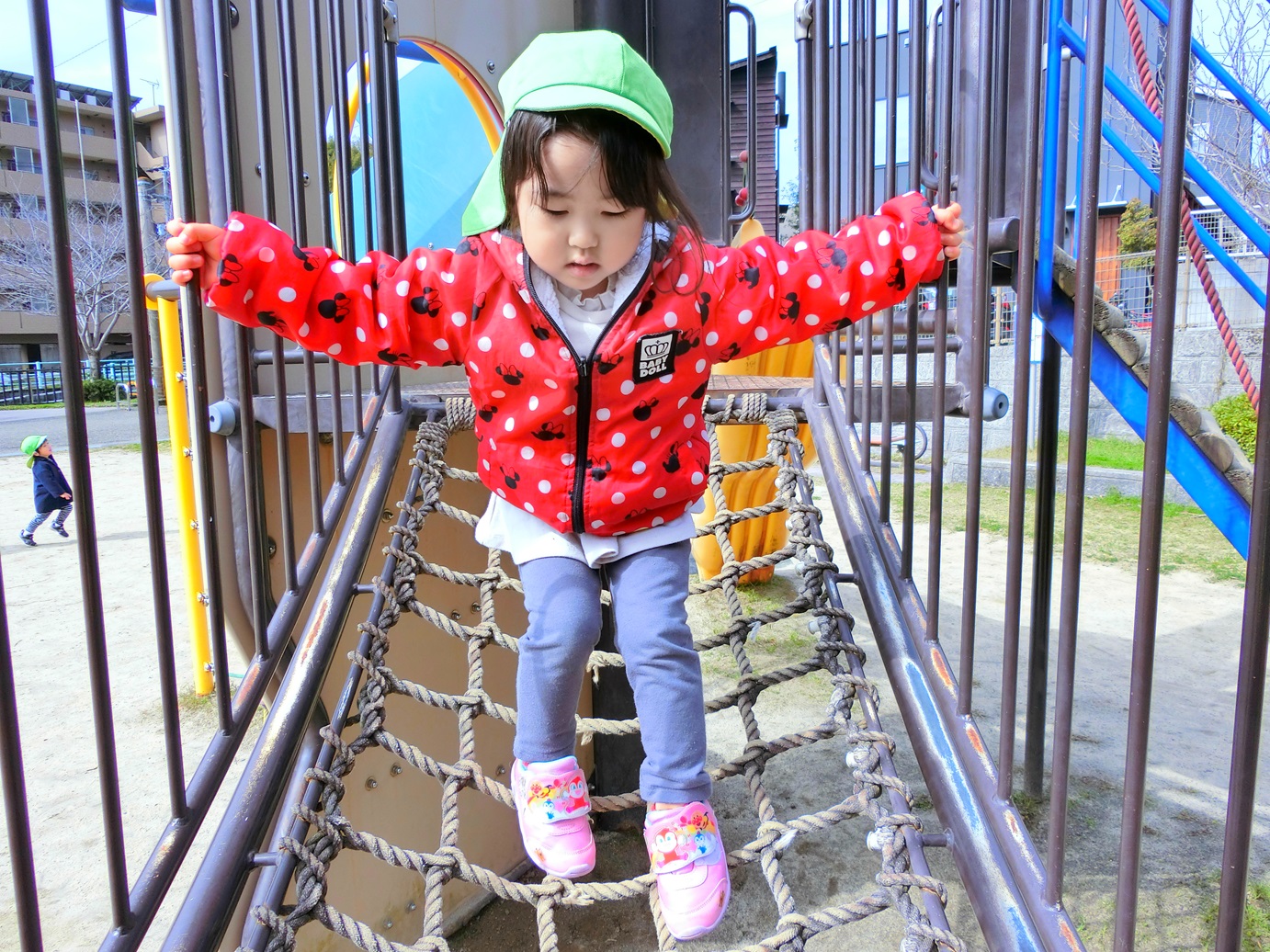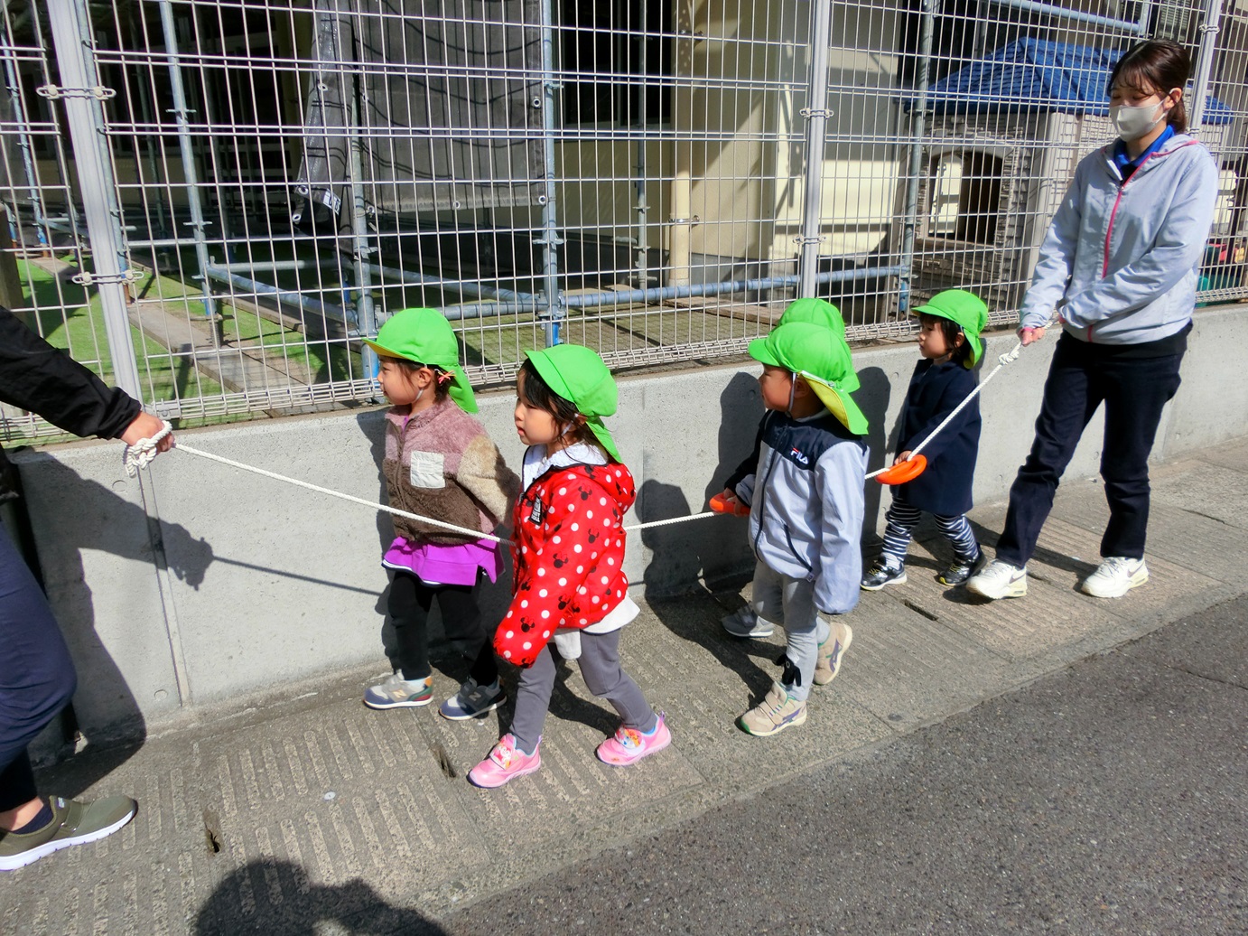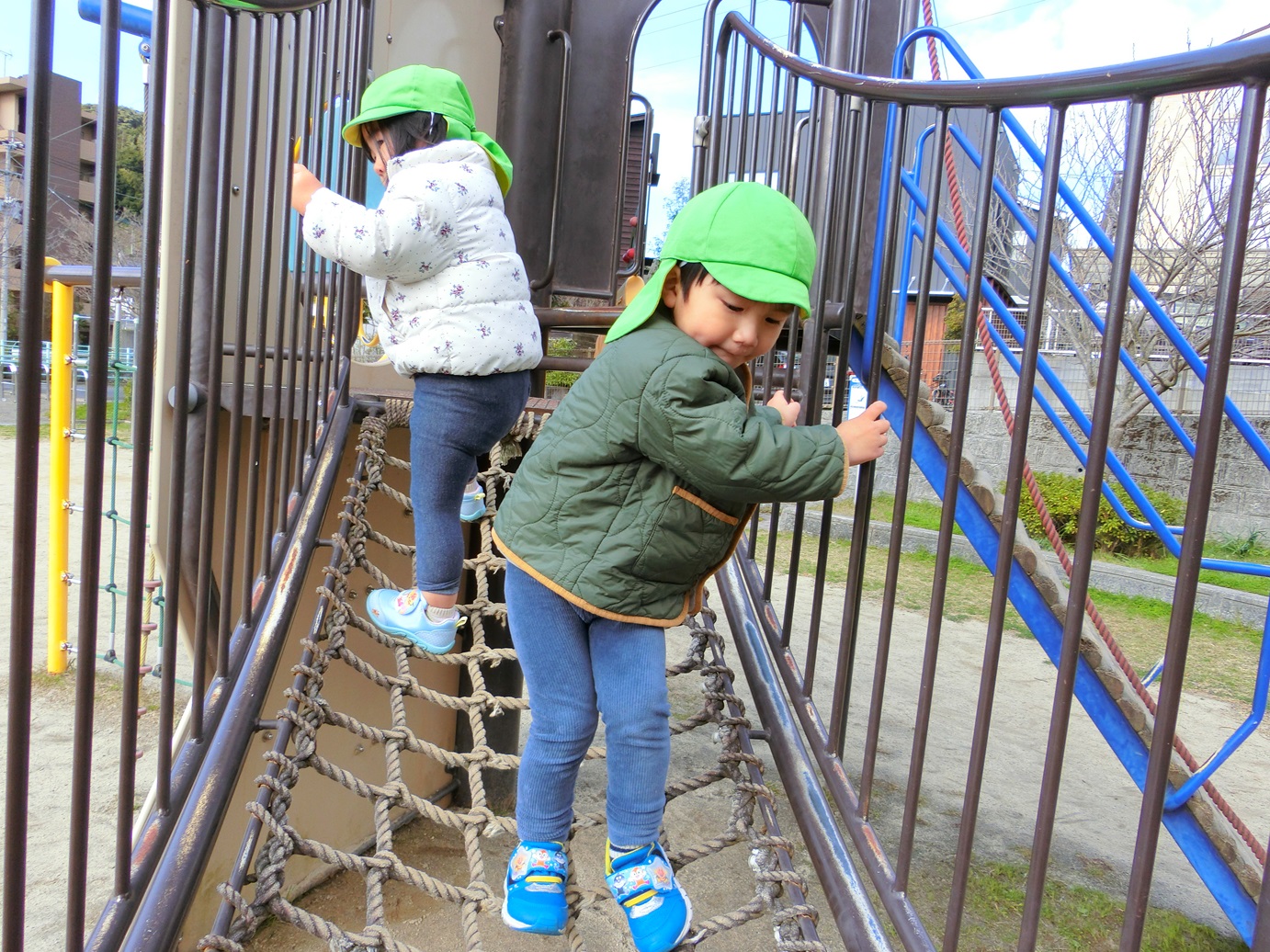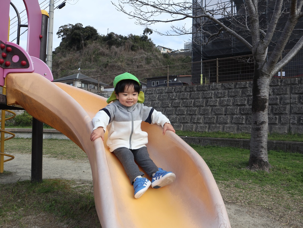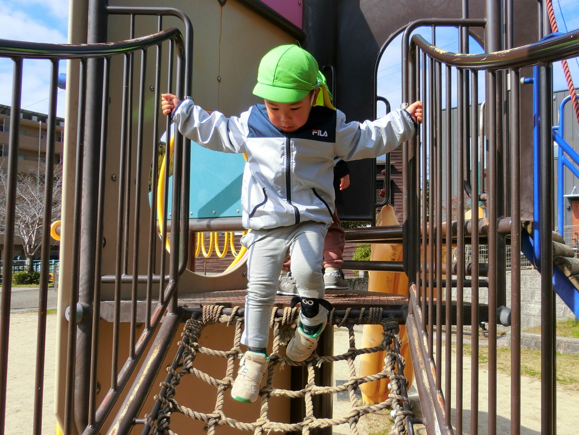 昨日は、広木第2公園に遊びに行きました。 朝から「今日は公園行ける?」と、ワクワクしていた子どもたち。 事前に歩く練習を行っていたため、その成果もあり散歩リングをしっかりと握って歩くことができました。 公園に着いたら、しっかりと保育者の話を聞いて、約束を守りながら遊んでいきます。 縄の橋をそーっと渡ったり、滑り台を滑ったりと思う存分遊ぶことができて大満足の子どもたちでした。