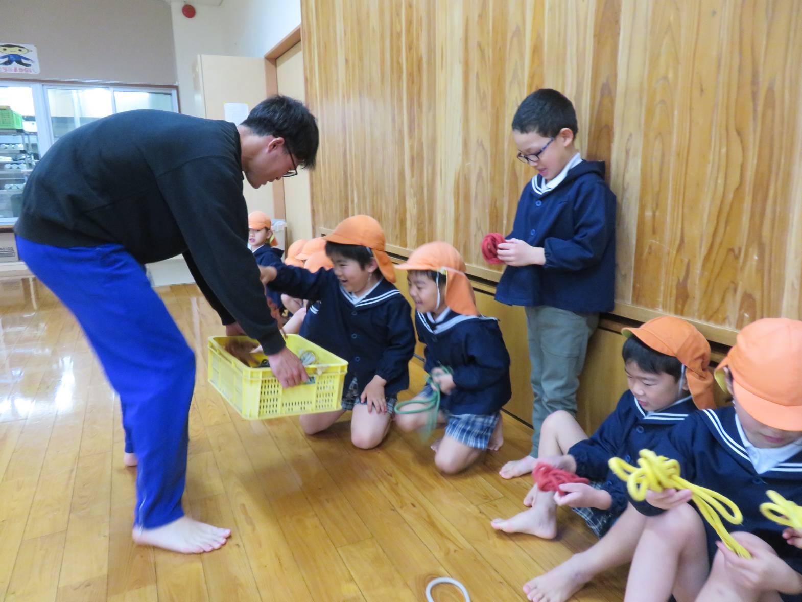 最後は子どもたち自身で縄を結んで片付けを行いました!