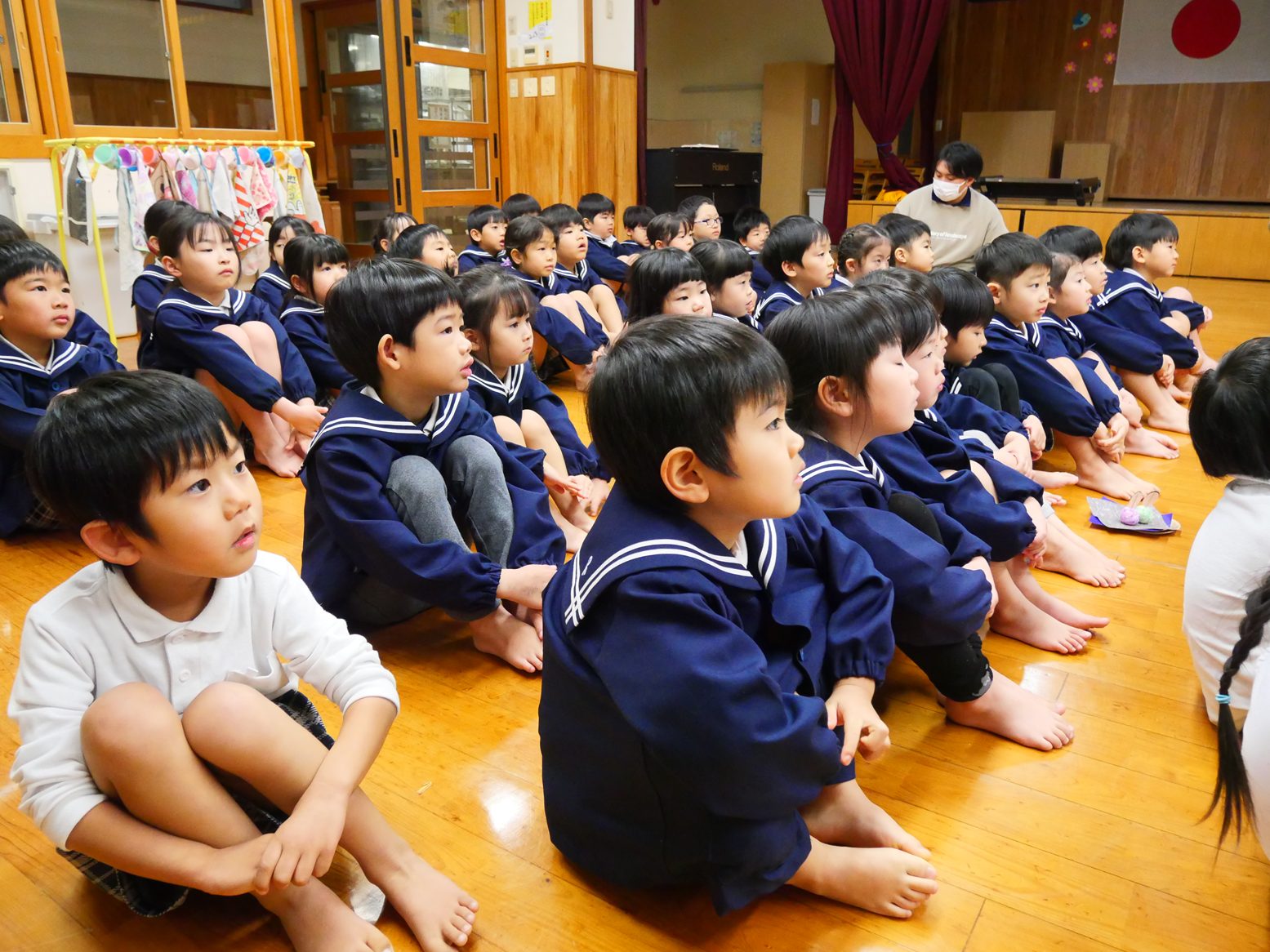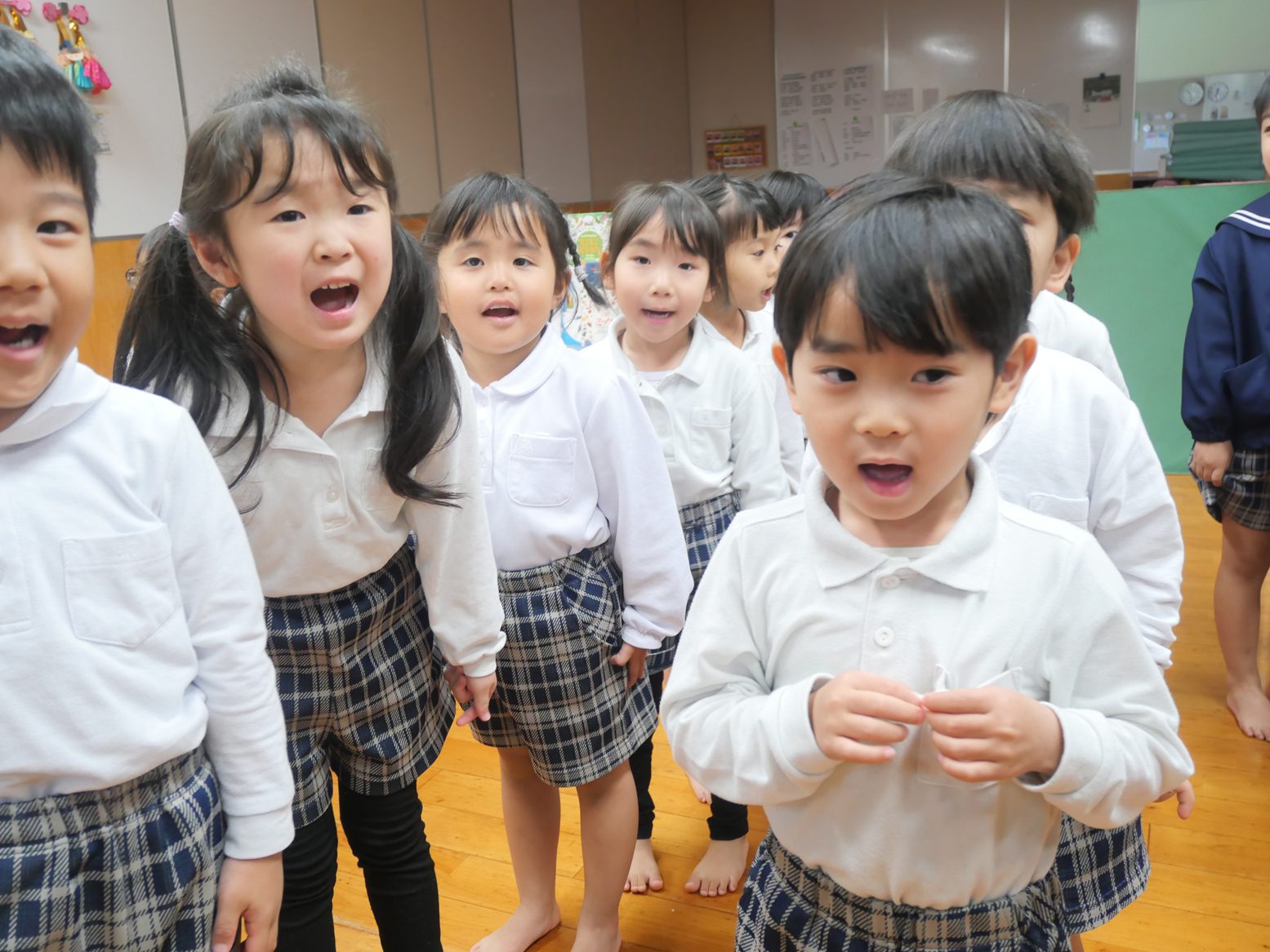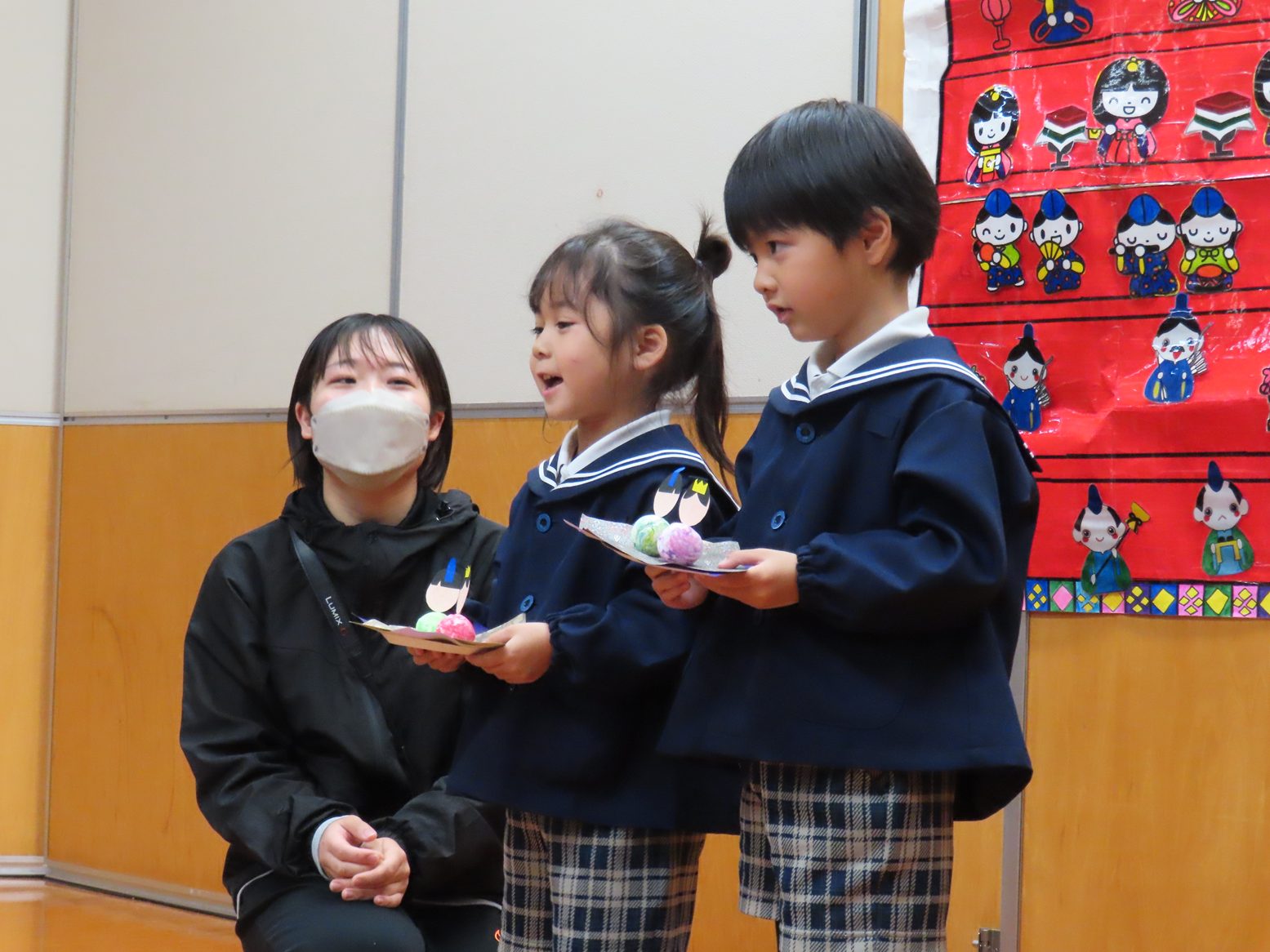 最後はピアノに合わせてひなまつりの歌を歌いました。口を大きく開けて一生懸命歌う子どもたちでした。