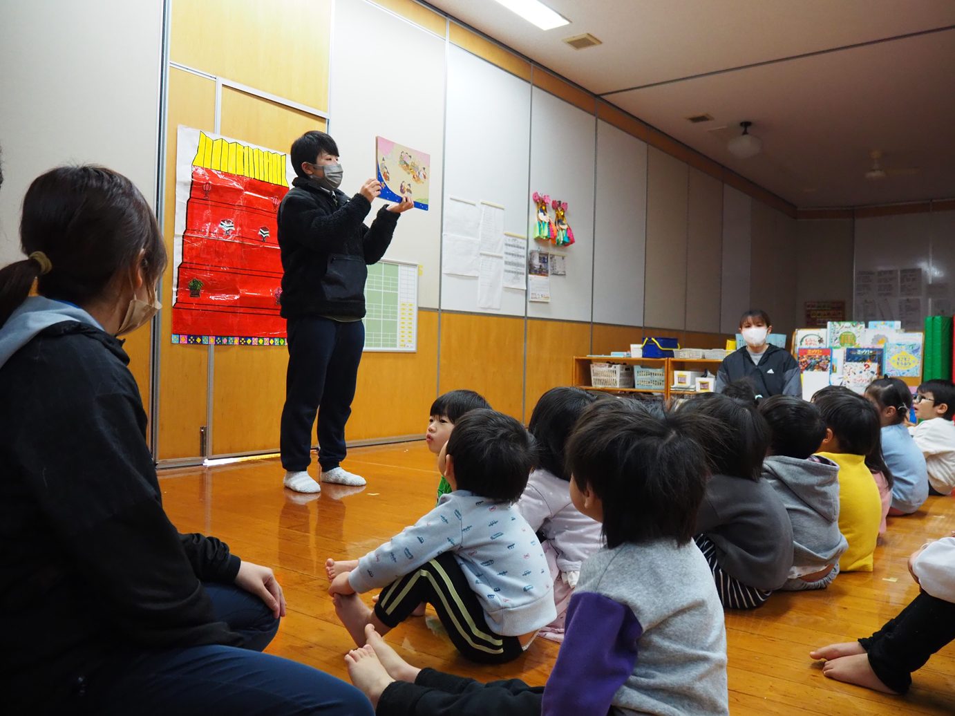 紙芝居の話に耳を傾け、集中して聞く姿が見られました。