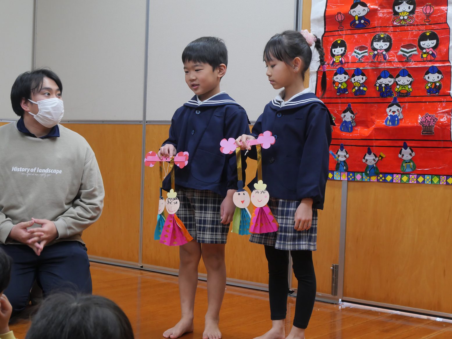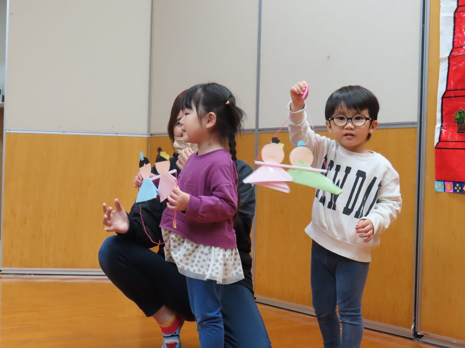 夕方の歌の時間にひなまつりを歌ったり、製作などを行ったりすることで始まる前からワクワクする子どもたち。