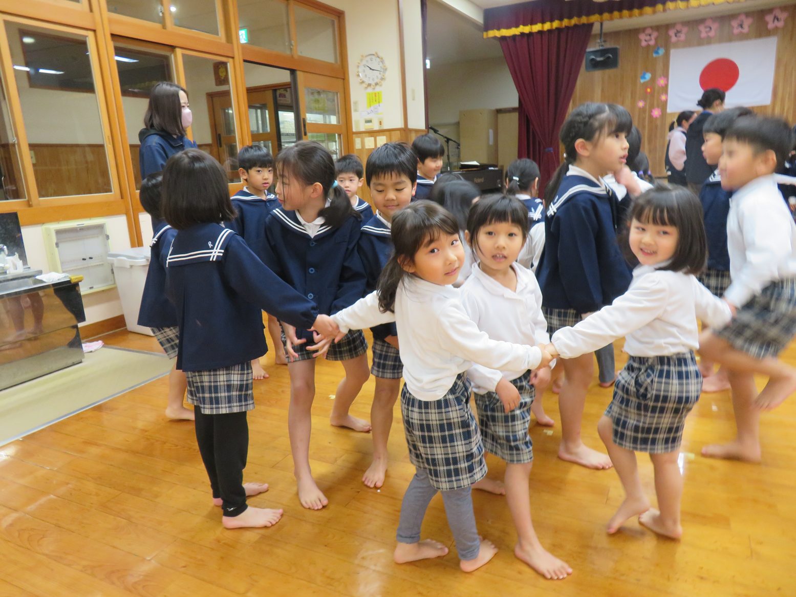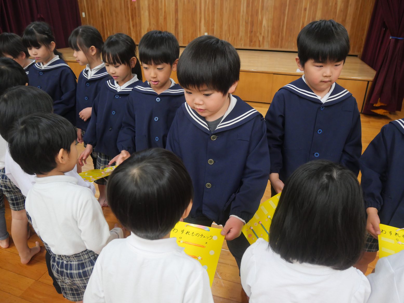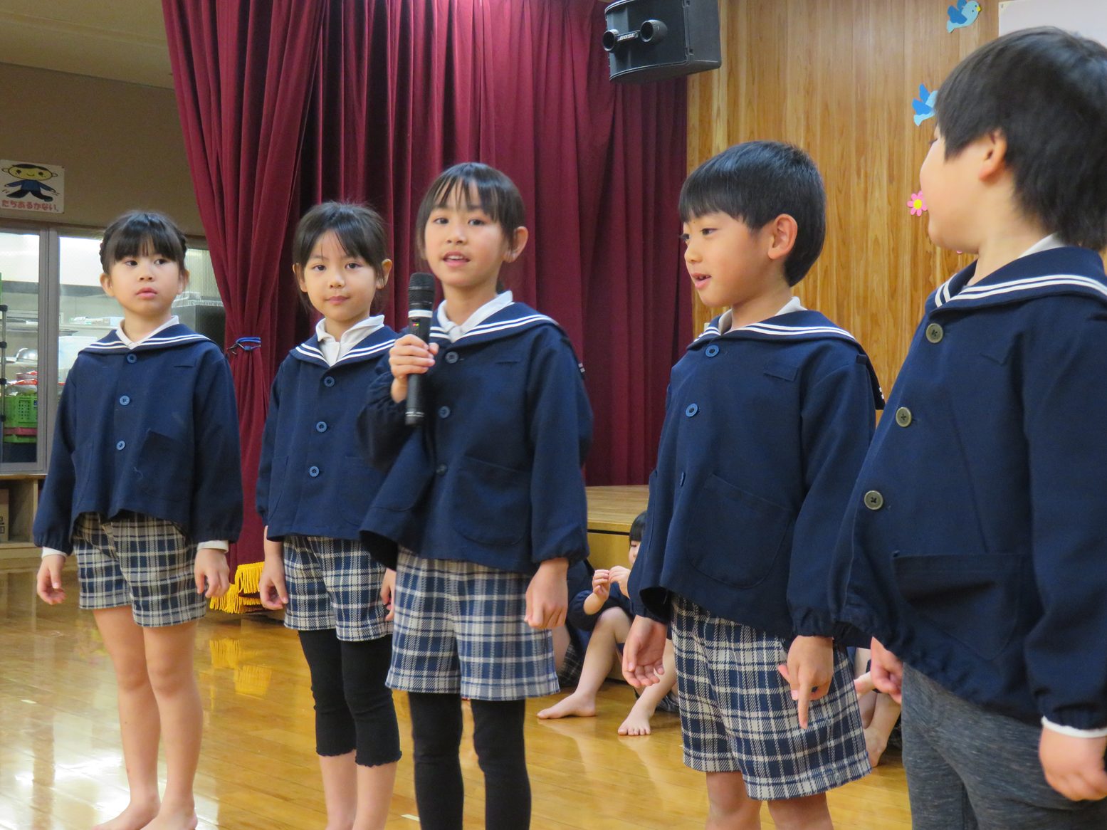「雨だー。」と残念そうな様子もありましたが、お別れ会が始まると「なにするのかな?」とわくわくした表情の子どもたち。