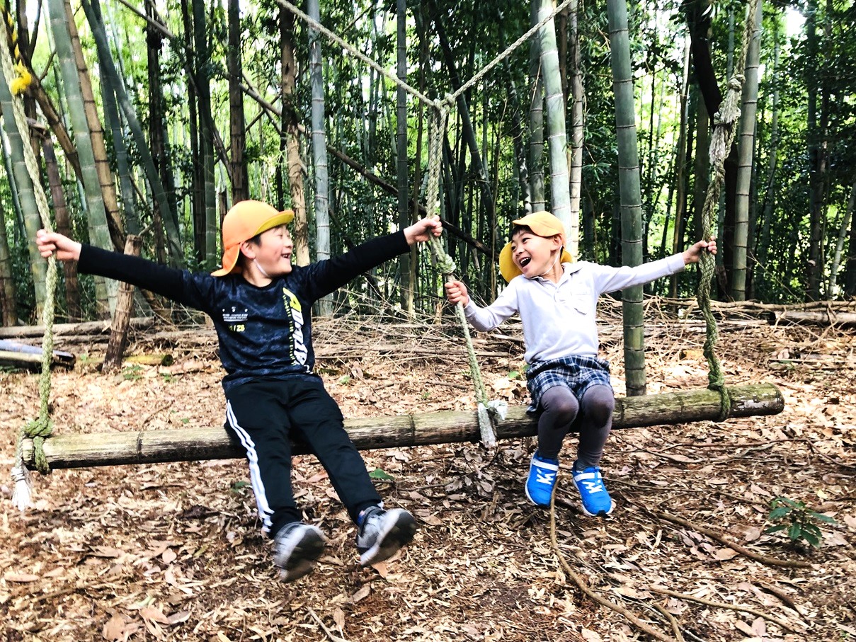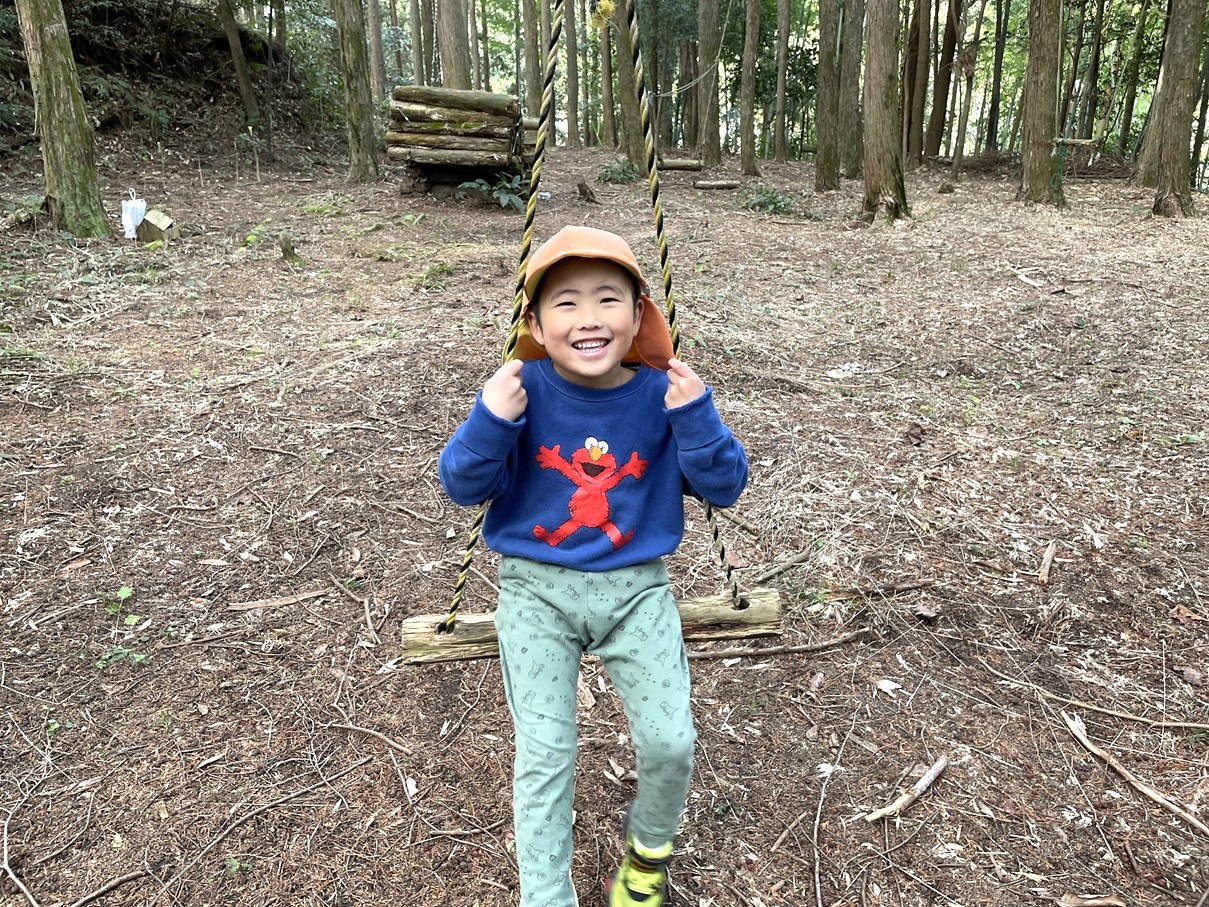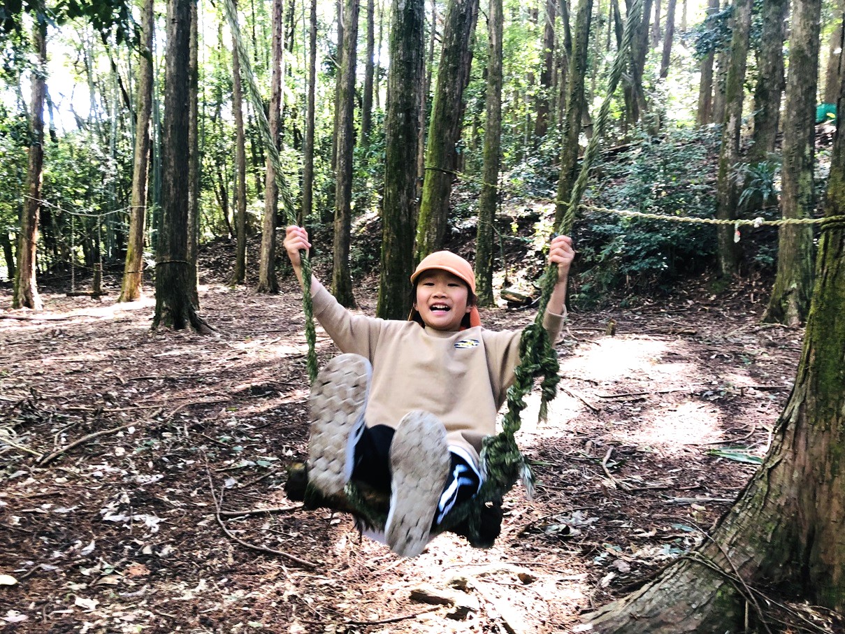 到着すると、ブランコやトンネルなどのアスレチックに大興奮!大自然の中、思い切り遊ぶことができました♪