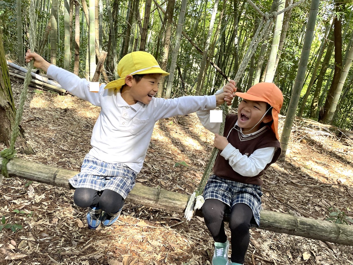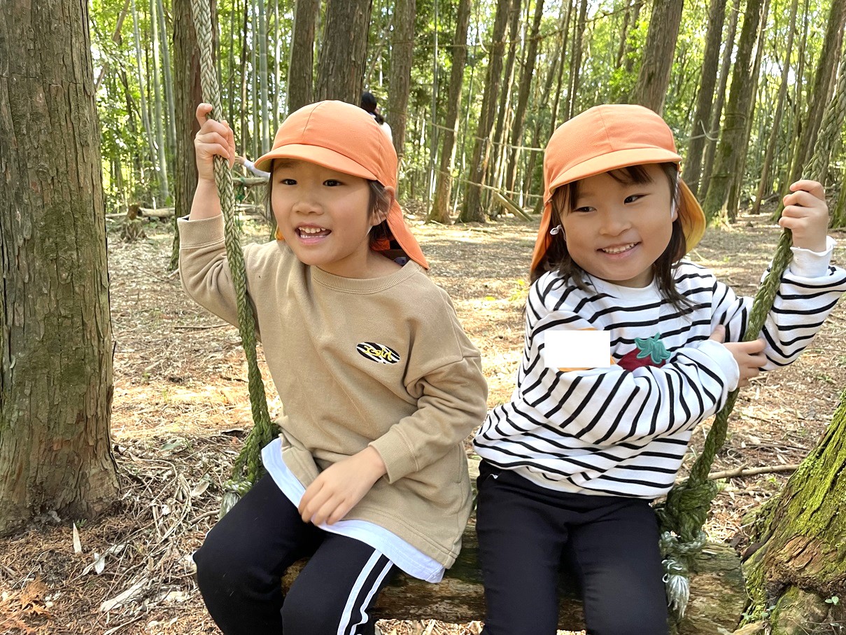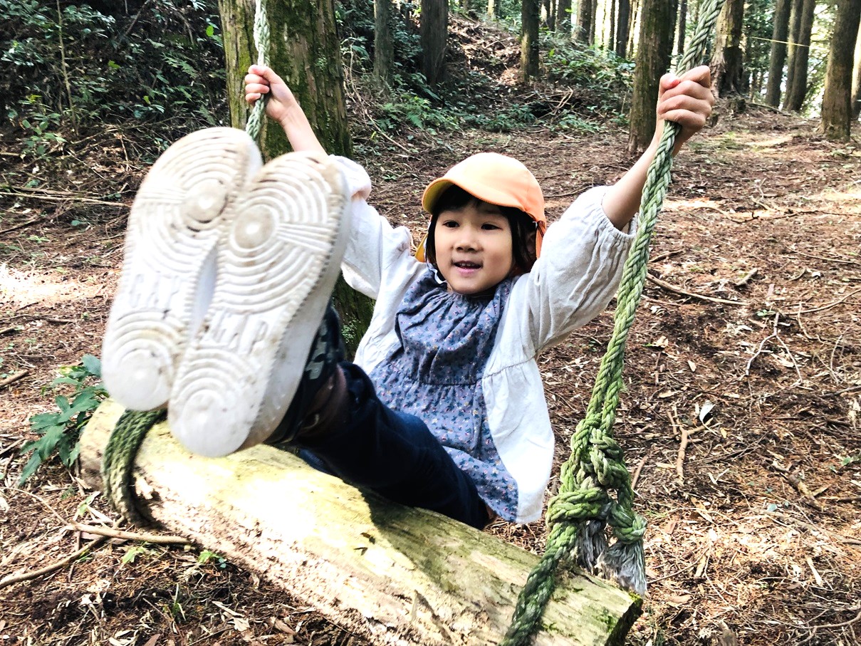 到着すると、ブランコやトンネルなどのアスレチックに大興奮!大自然の中、思い切り遊ぶことができました♪
