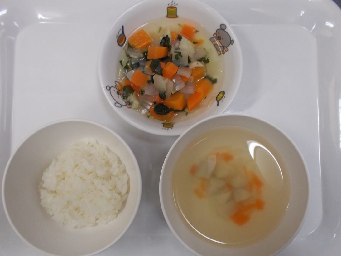 3月4日(月)から3月9日(土)までの給食献立写真・離乳食提供量と写真の一例です。