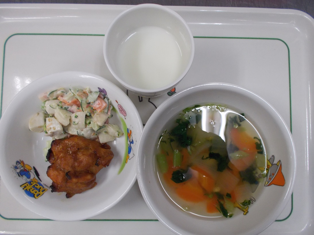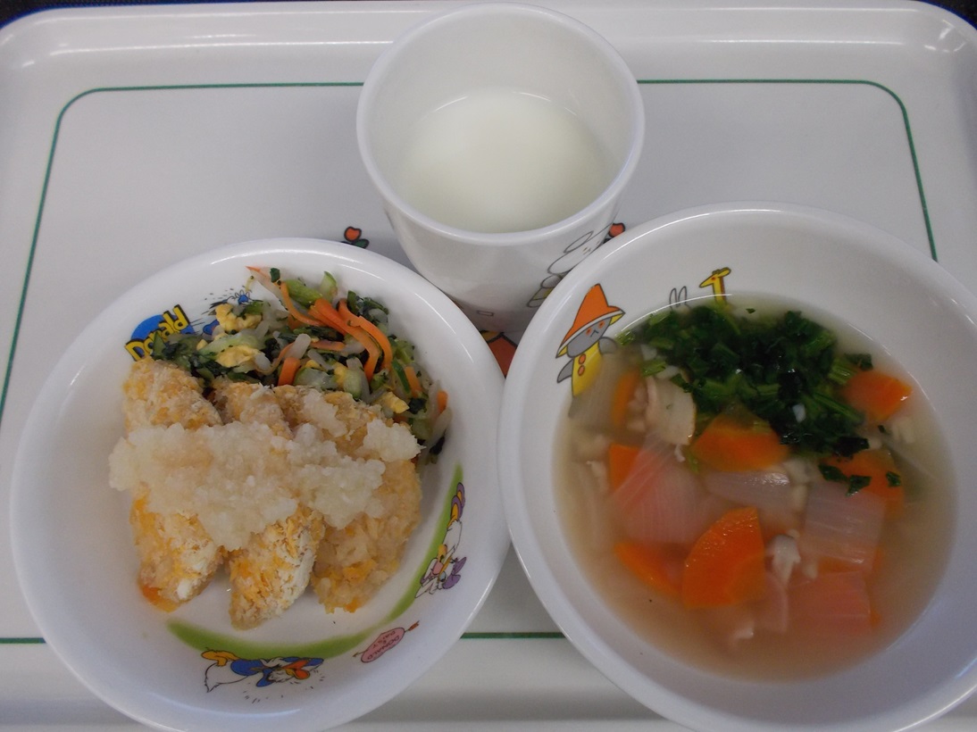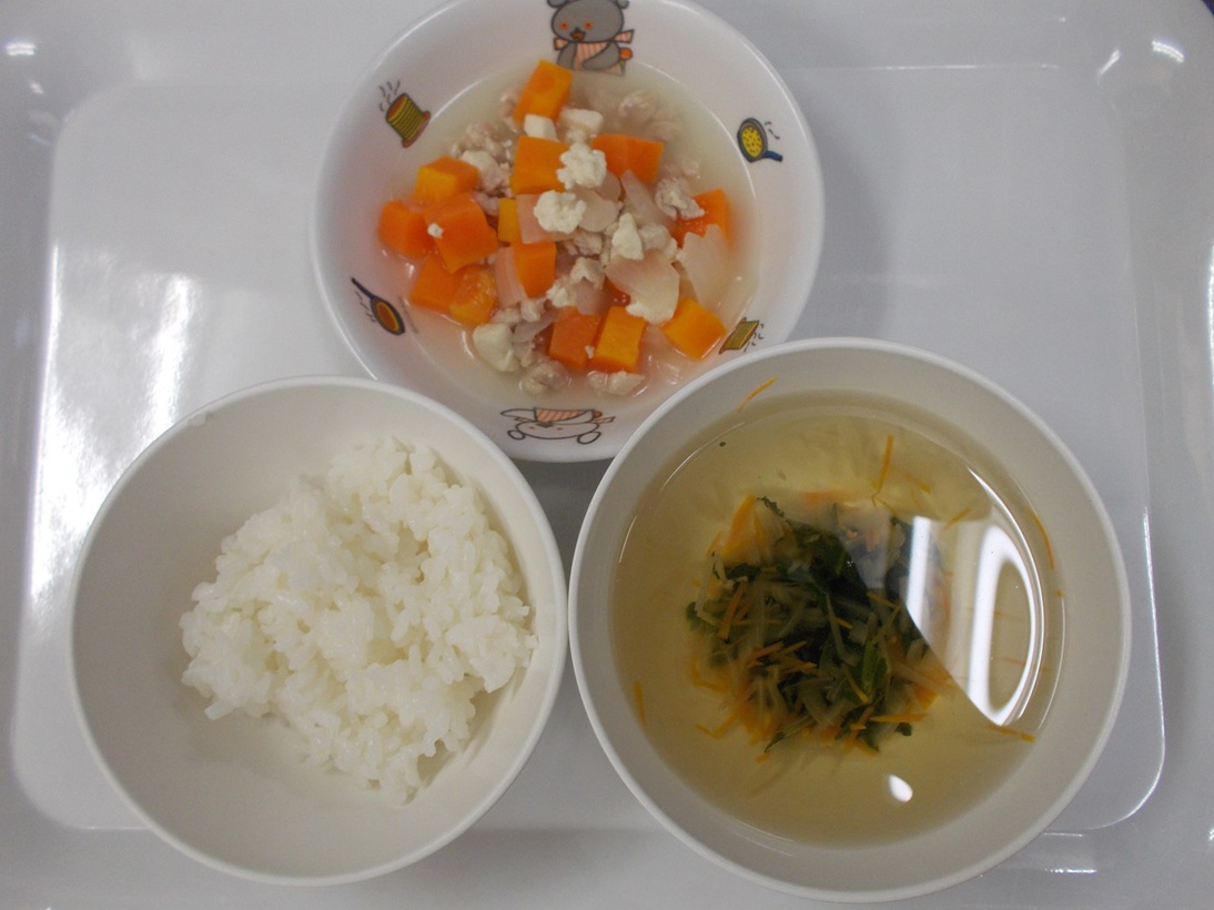 3月18日(月)から3月23日(土)までの給食献立写真・離乳食提供量と写真の一例です。