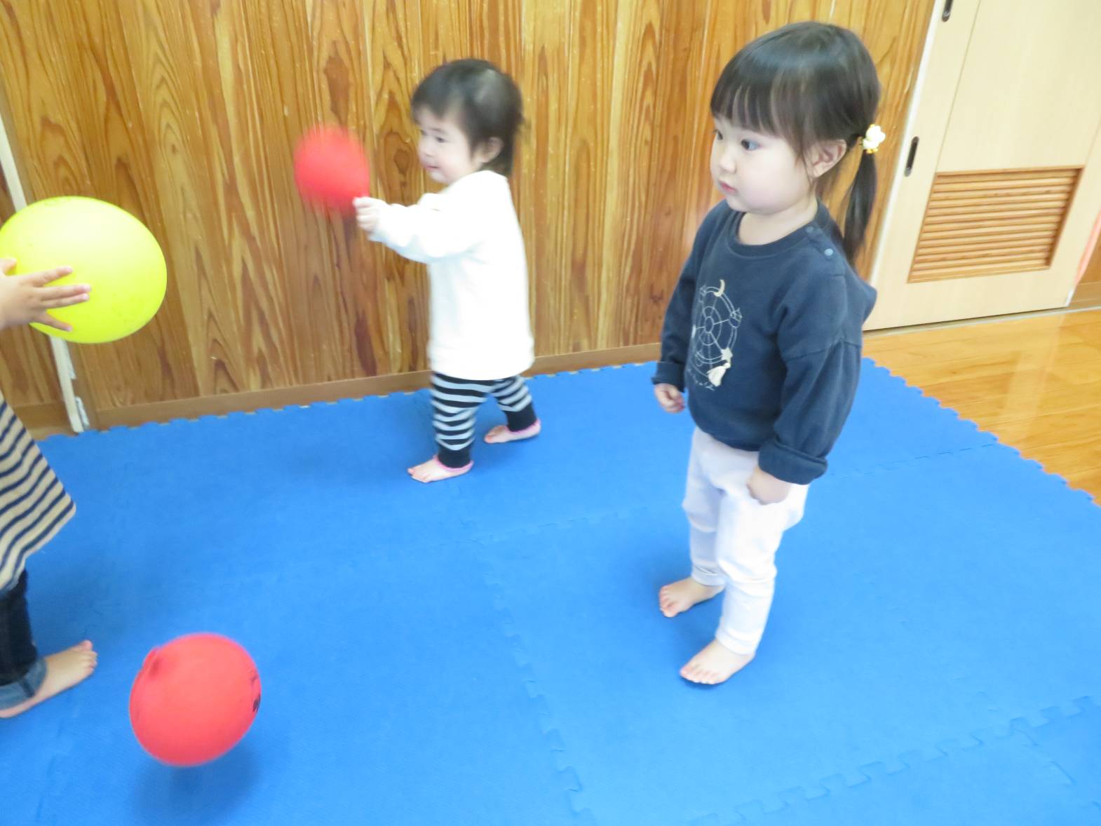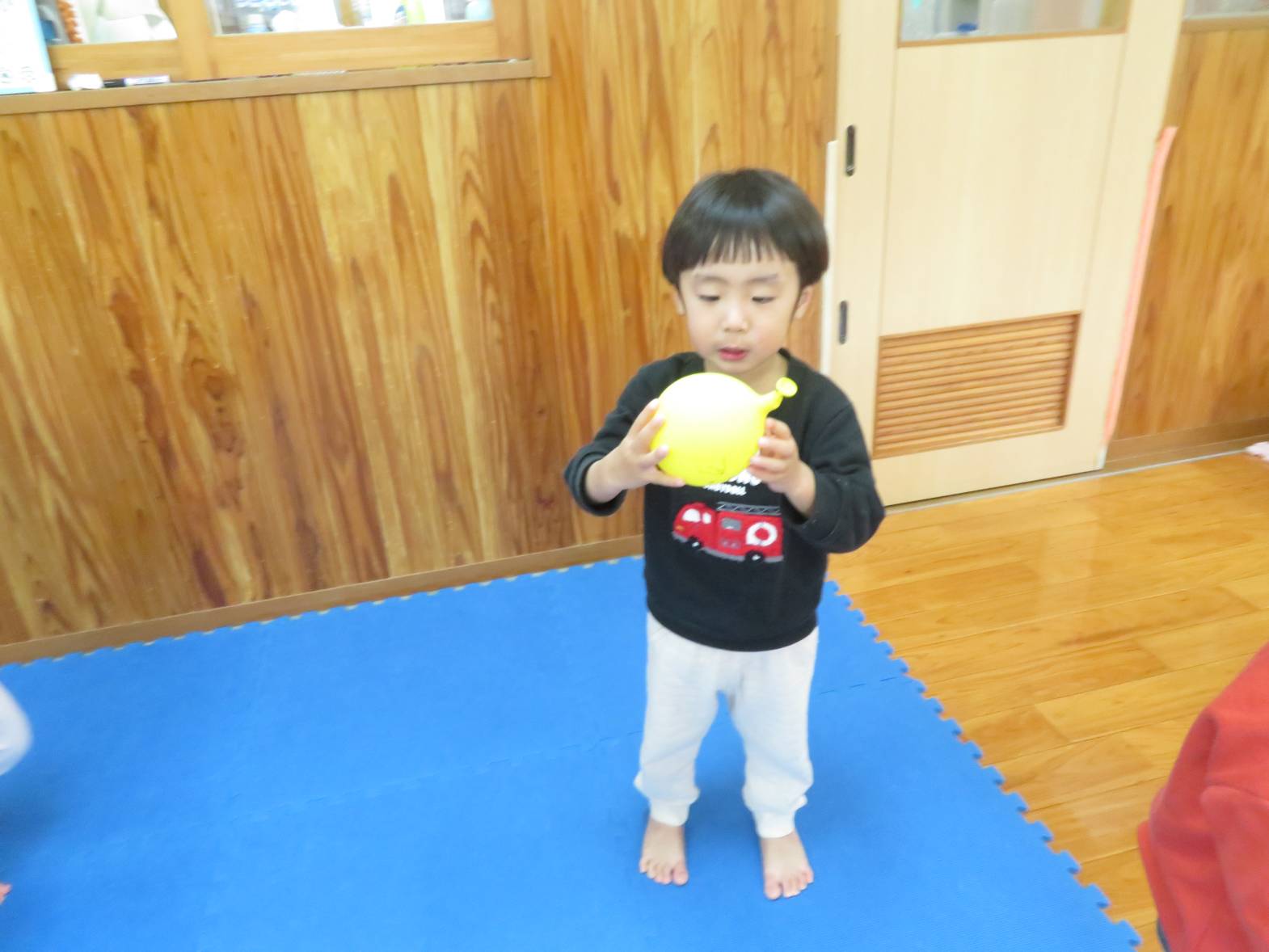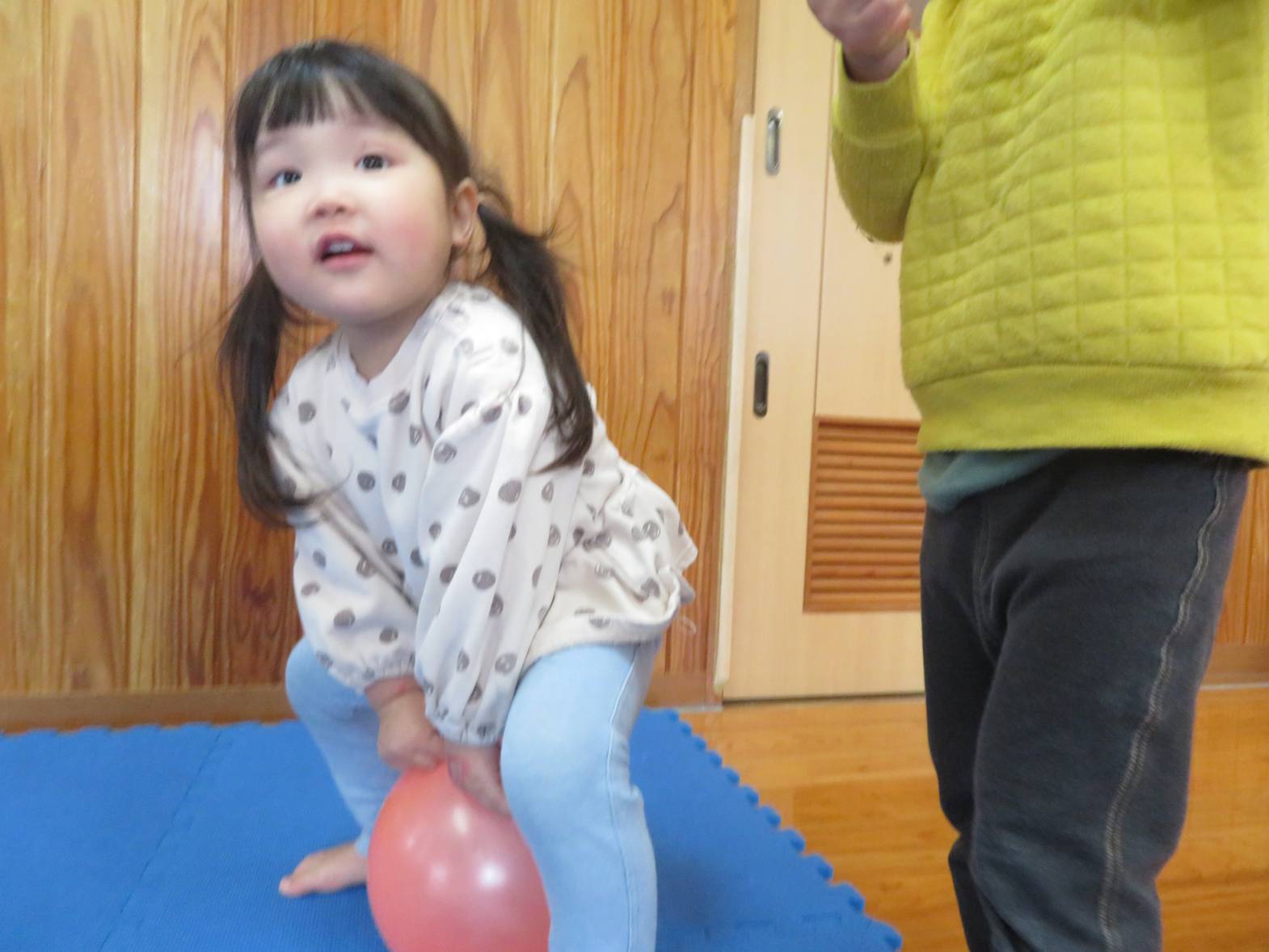 風船遊びを行いました。 風船を手に取ると、「ポーン!」と高く投げてみたり、友だちと見せ合ったりして楽しむ子どもたち! また、風船を投げ、キャッチすることができると、「見てみて~!」と喜ぶ姿が見られました。 友だちと一緒に遊ぶ姿も増え、「一緒に遊ぼう!」と誘ったり、「こうやって遊ぶんだよ!」と優しくかかわったりすることができるこあら組さん! こあら組も残りわずかですが、たくさんの思い出を作っていきたいと思います♪