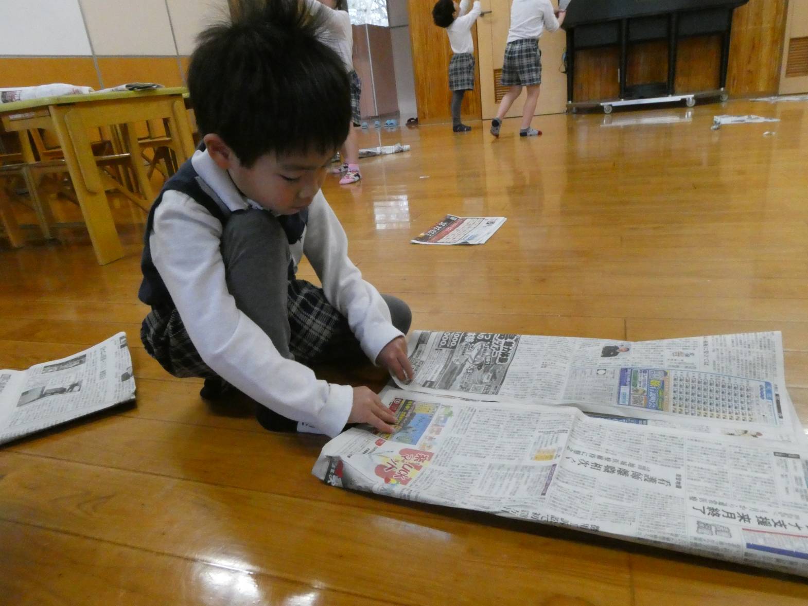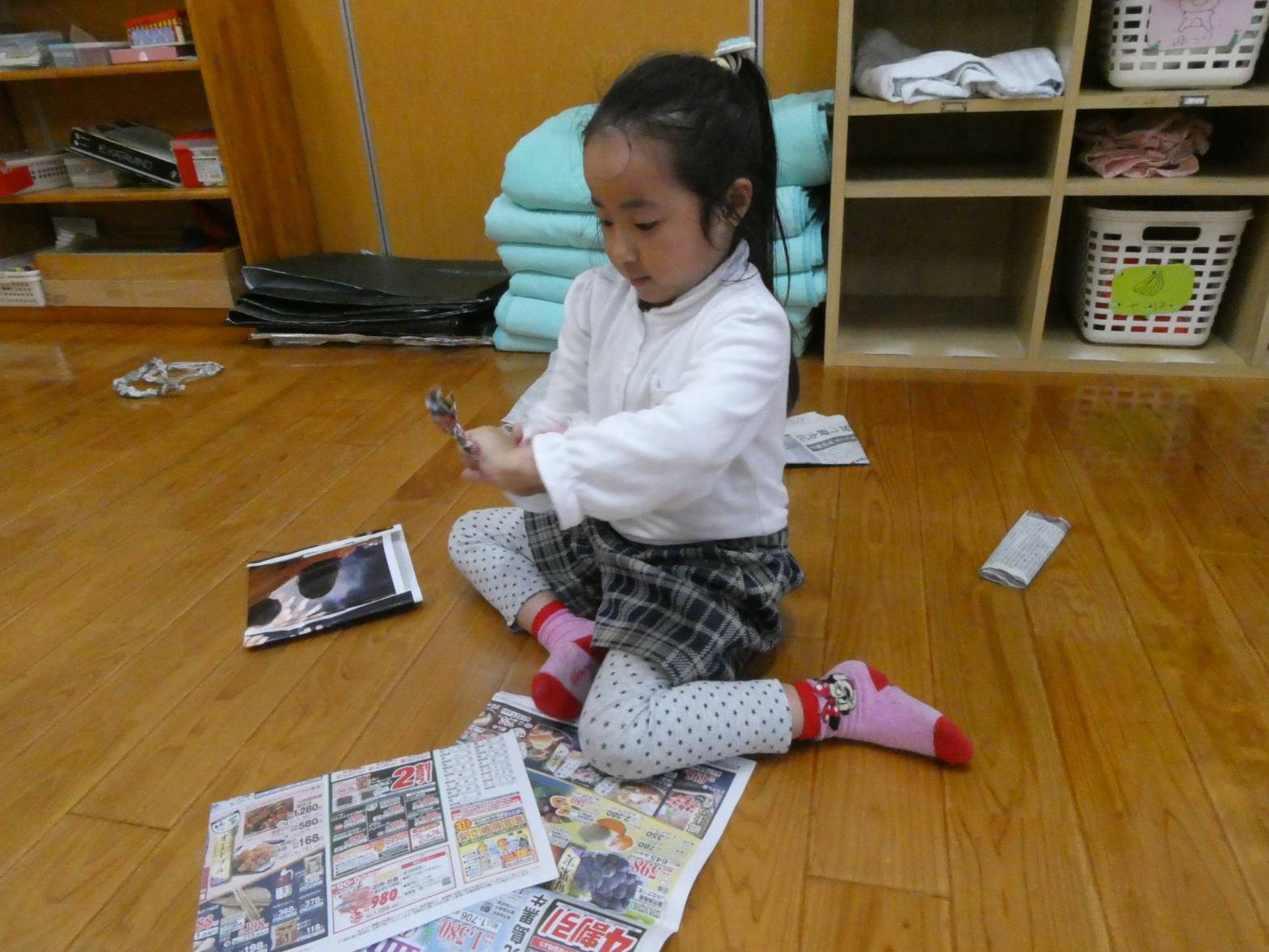 次に新聞紙遊びをしました。
