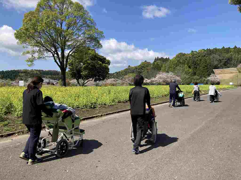 今日は、2班目が都市農業センターへ菜の花散策に行きました。 前回と同じように、とてもいい天気で絶好の散策日和に外出活動を行うことができました! 昨日降った雨の影響で、桜が散ってないか心配でしたが、とても綺麗に咲いており桜と菜の花、どちらも鑑賞することができました! 気持ちがいいですね!! 今回もとても気持ちの良い散策ができました。 次回の外出活動も、楽しみにしておいてくださいね!