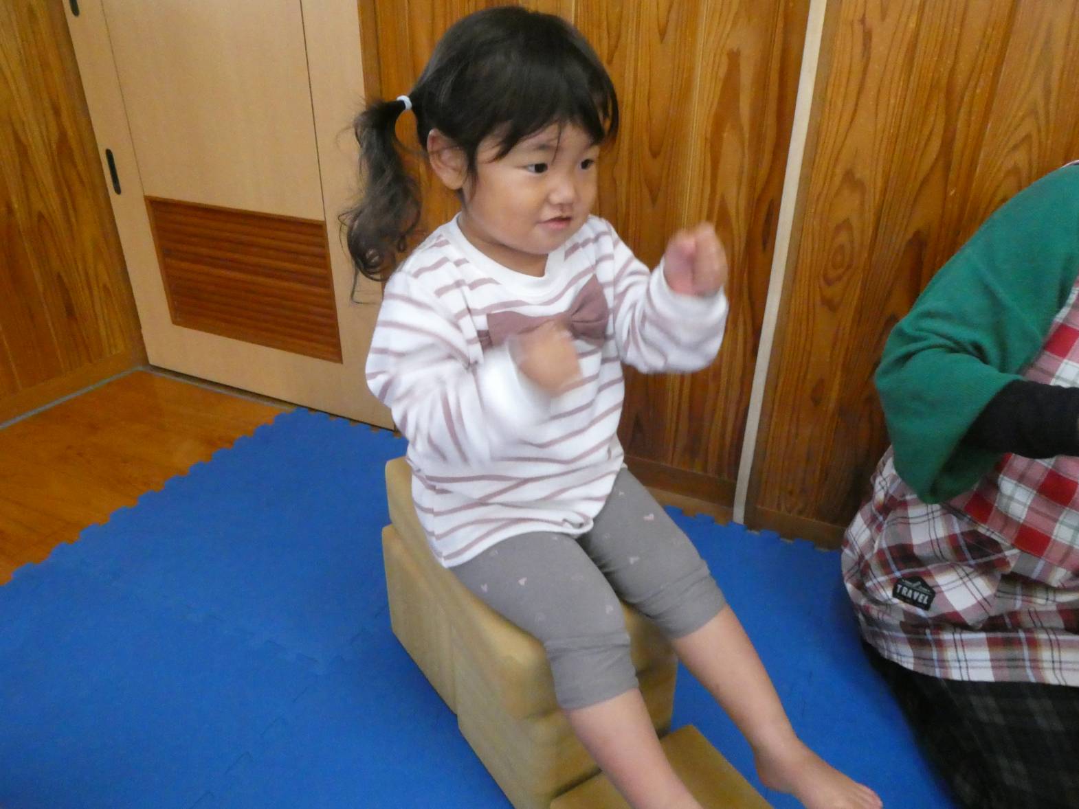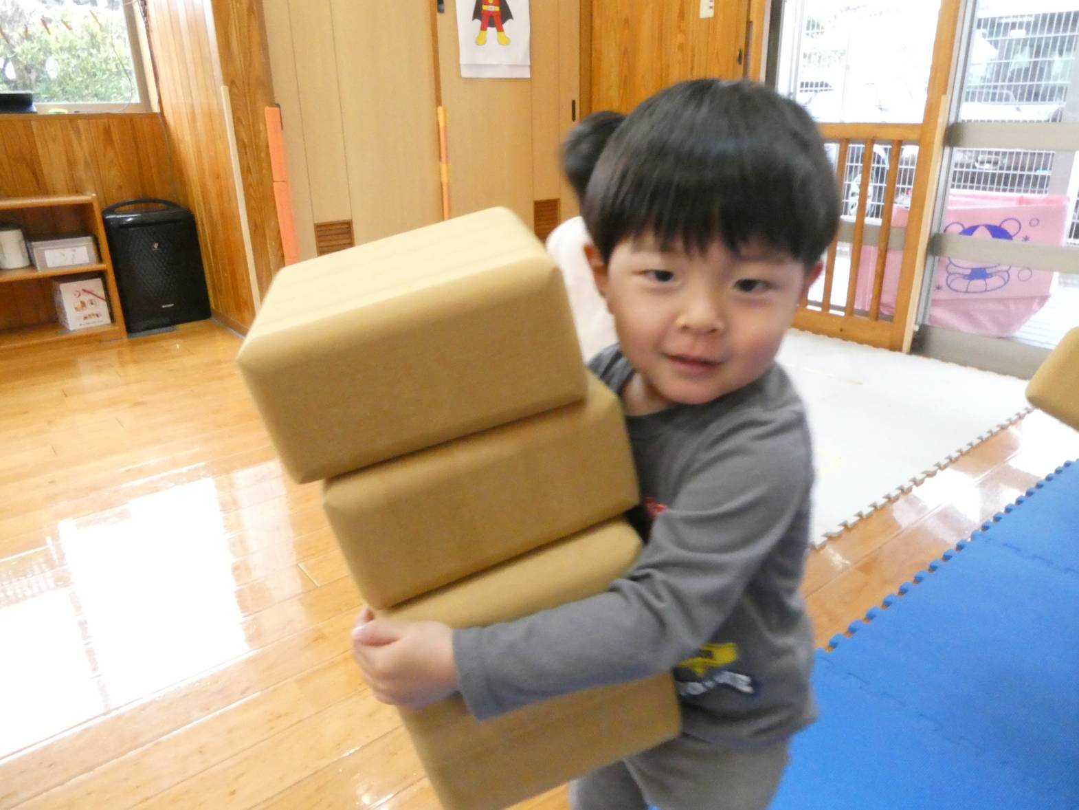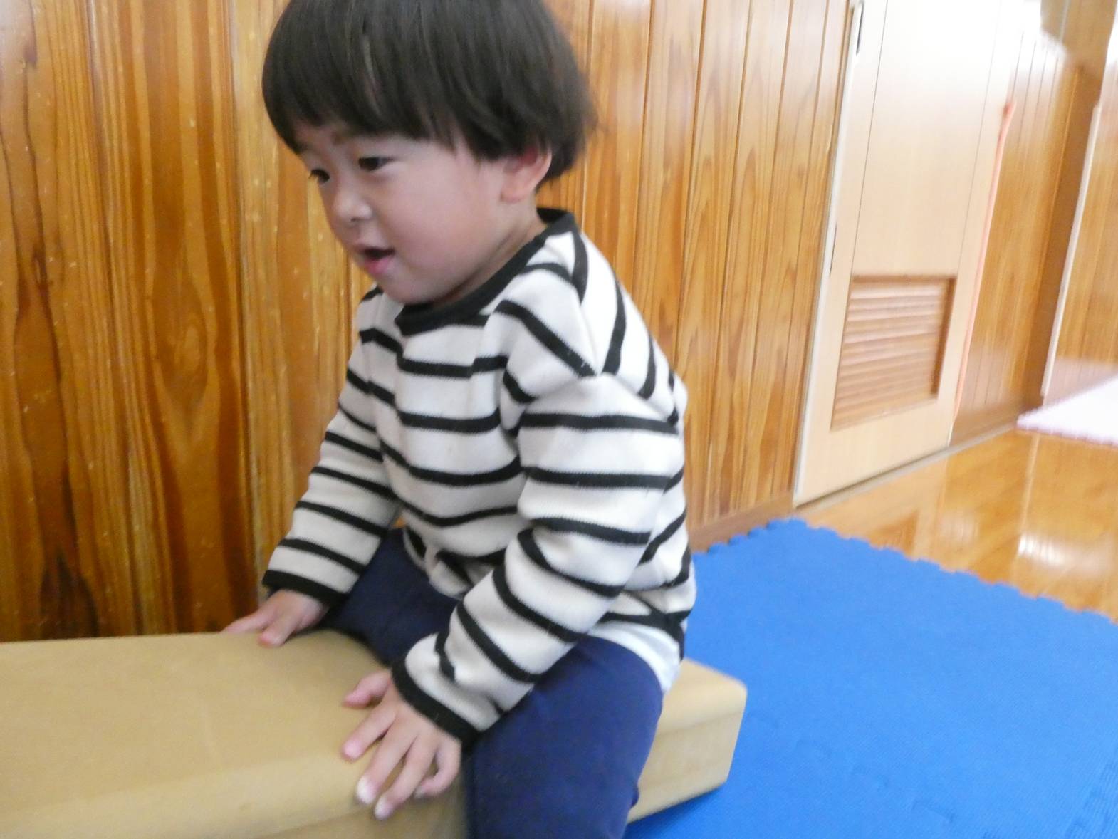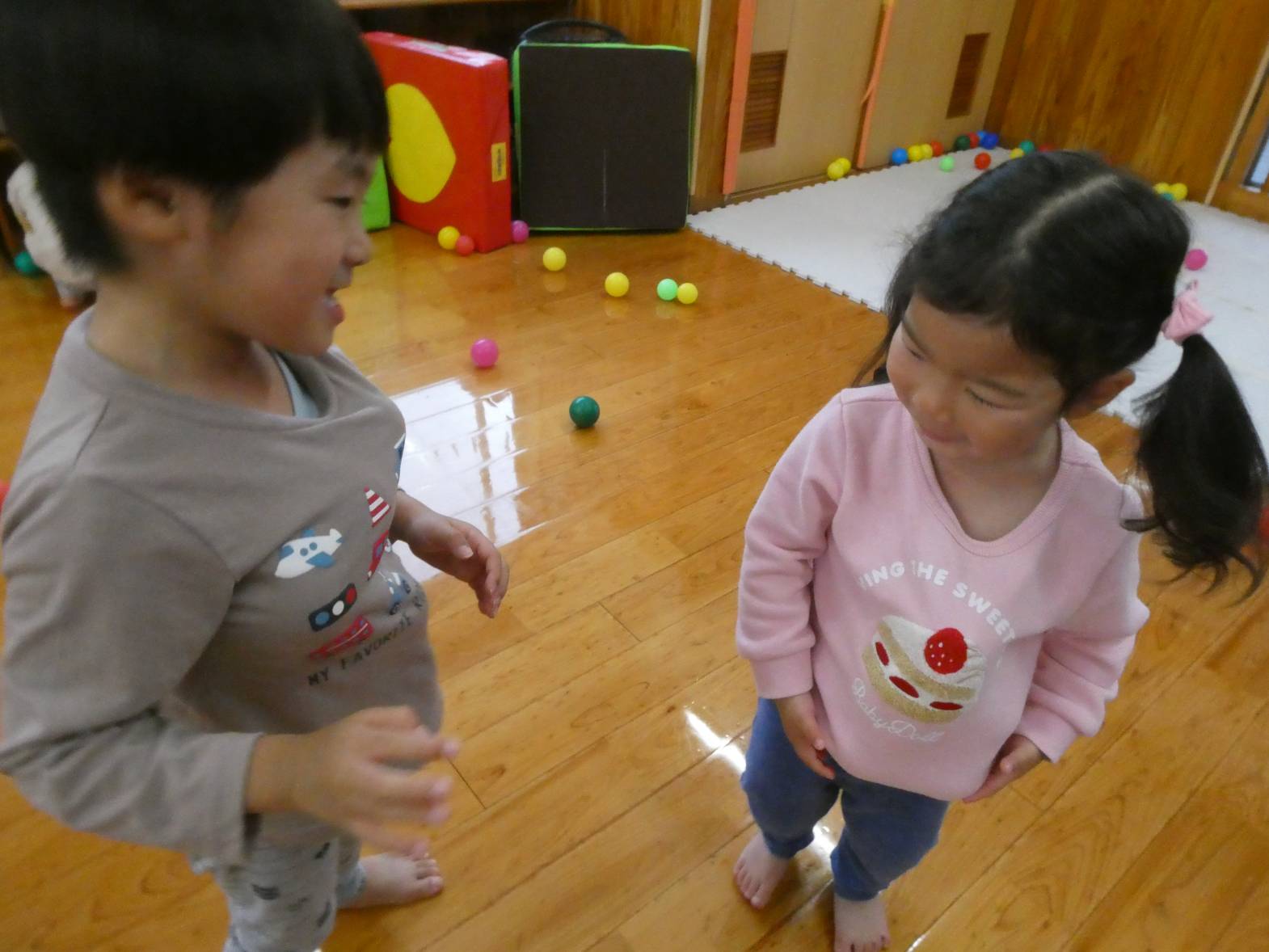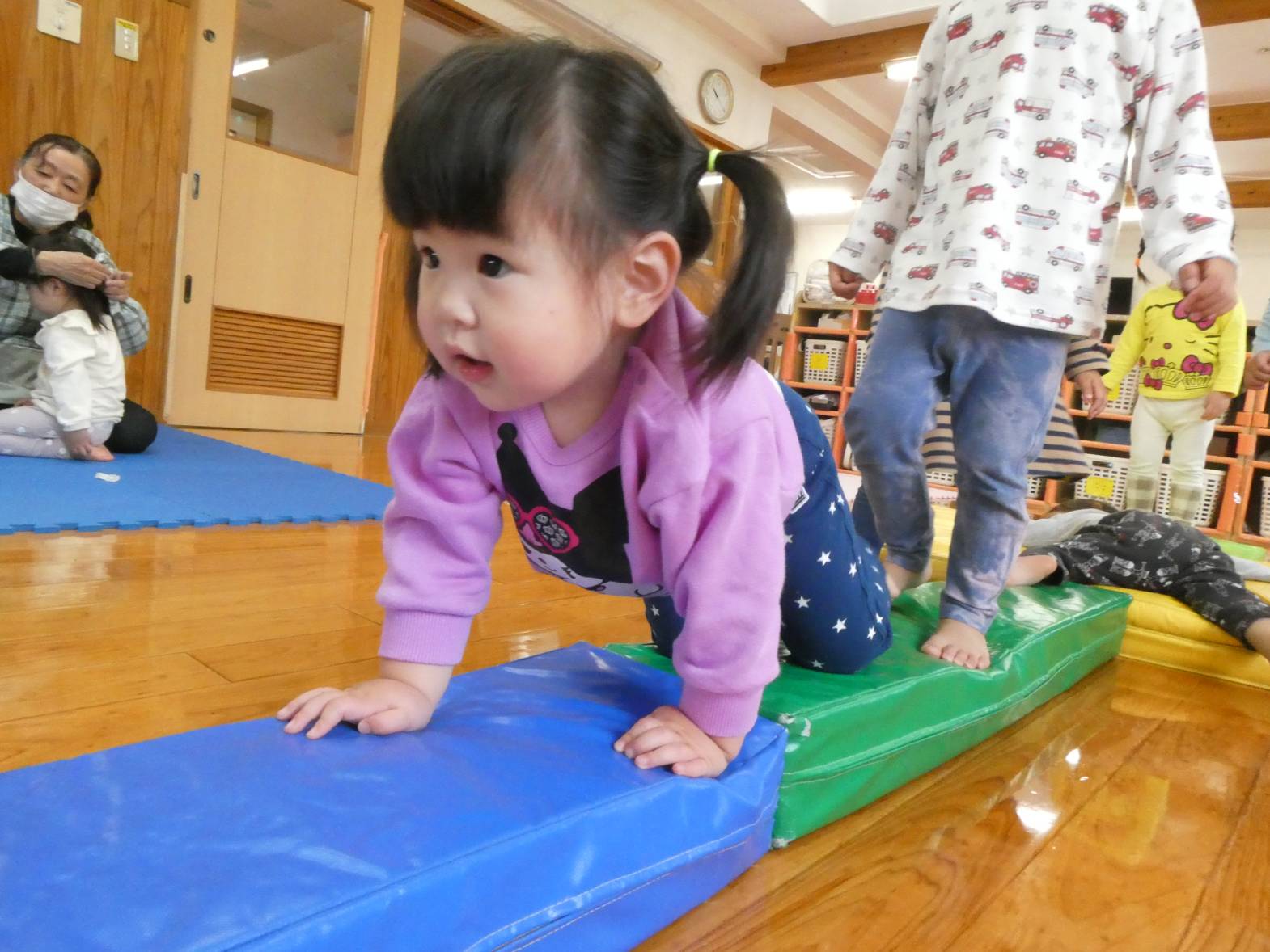 室内遊びでは、ソフトブロックやマット、カラーボールで遊ぶことが大好きなぱんだ組さん!