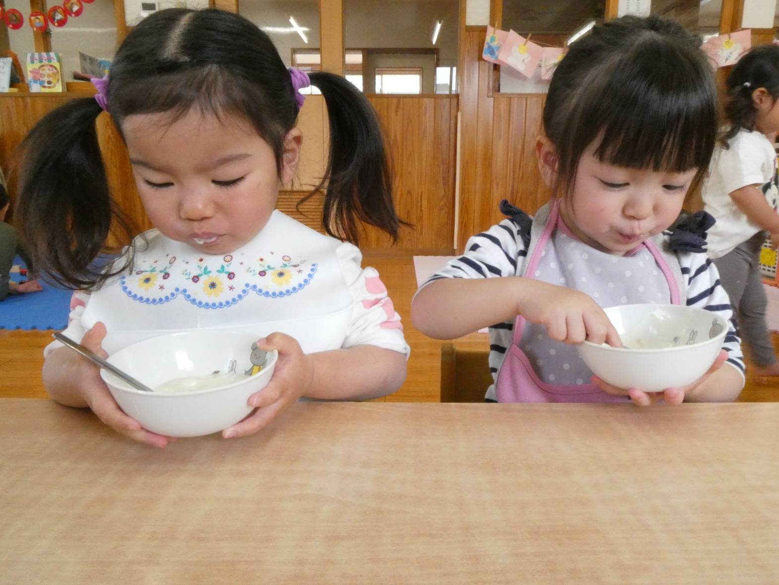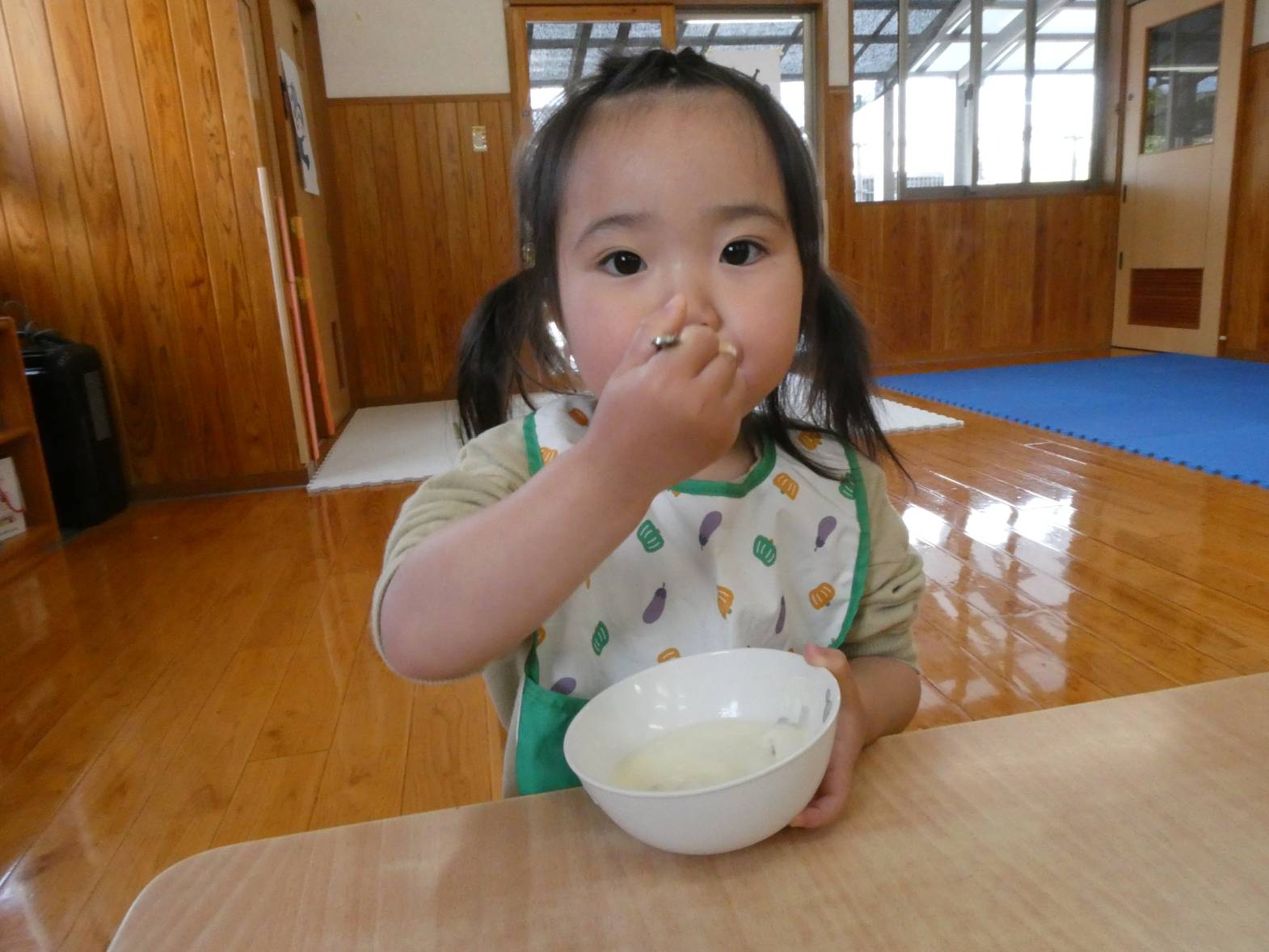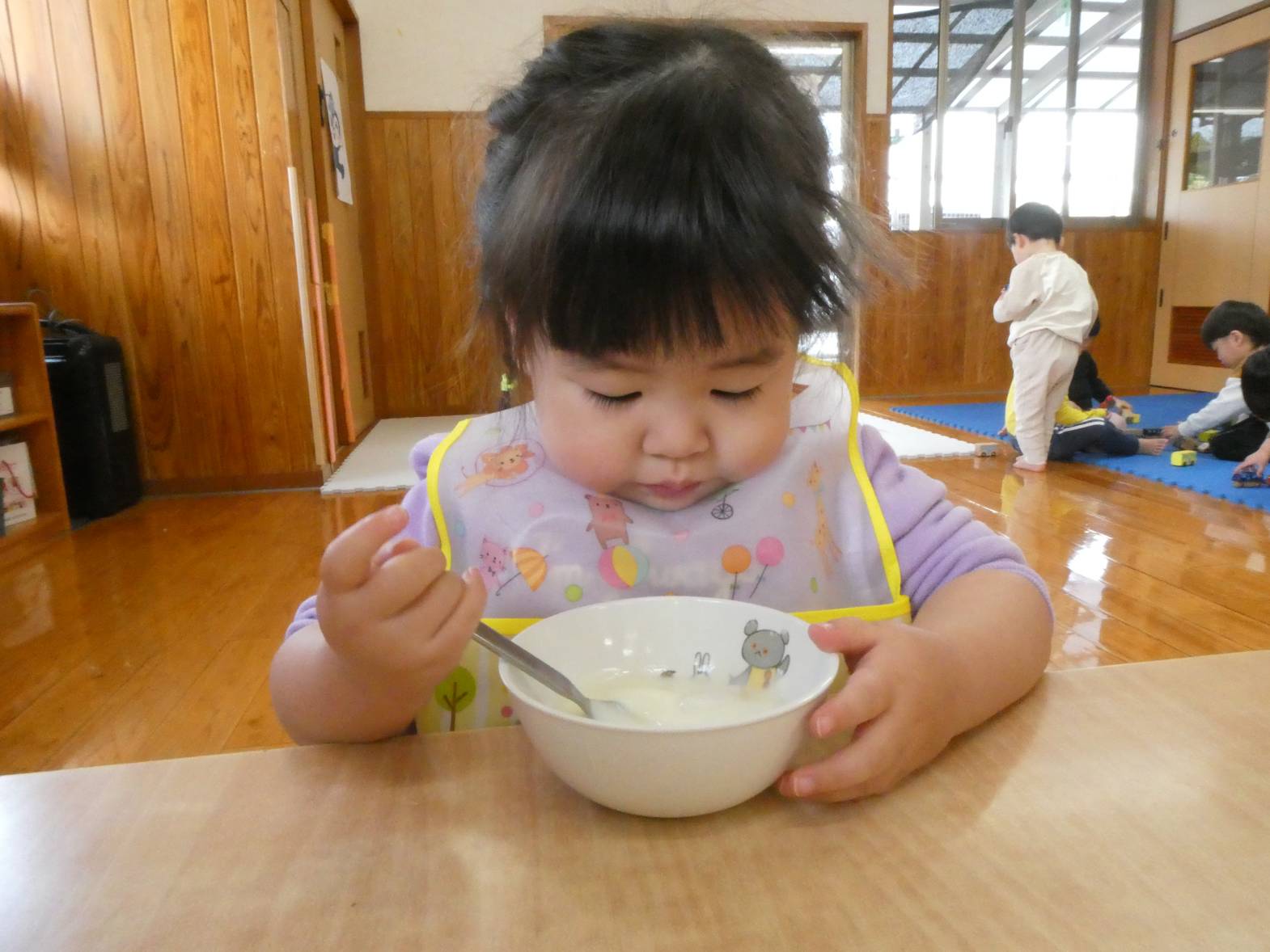 またおやつでは、保育者に「今日のおやつ何?」と、聞きに来る子どもたち。