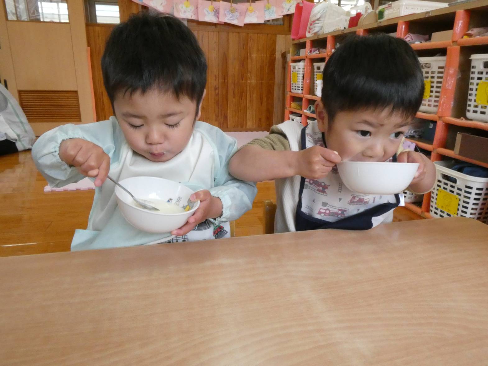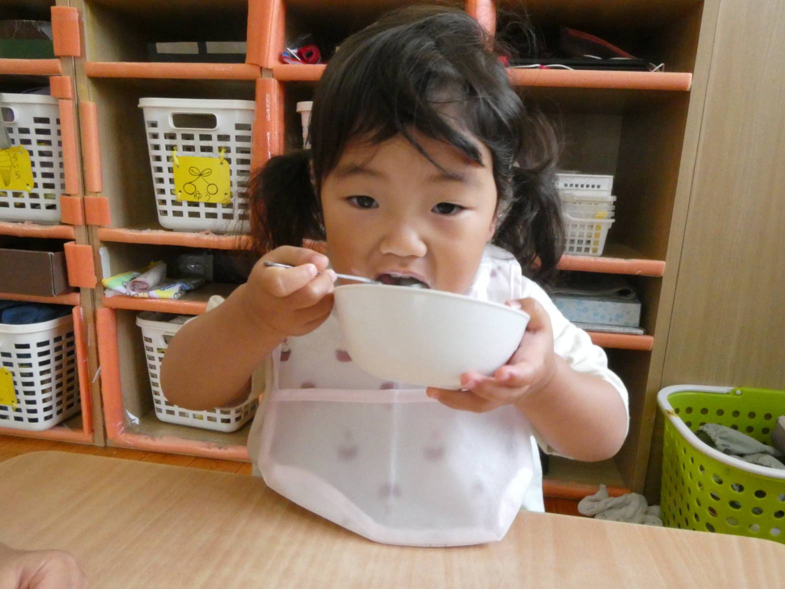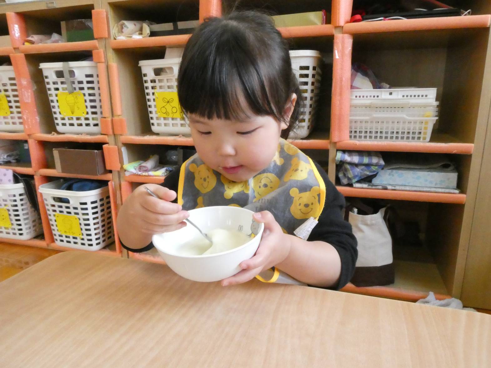 またおやつでは、保育者に「今日のおやつ何?」と、聞きに来る子どもたち。