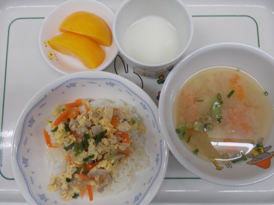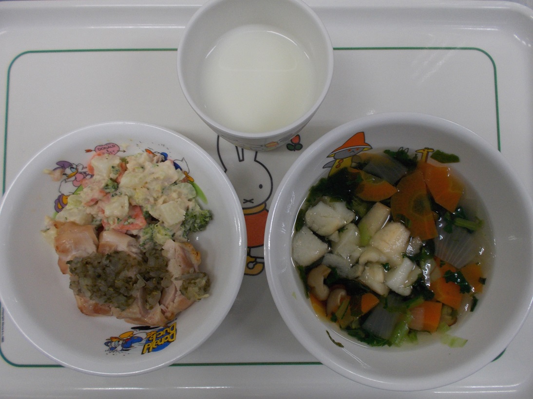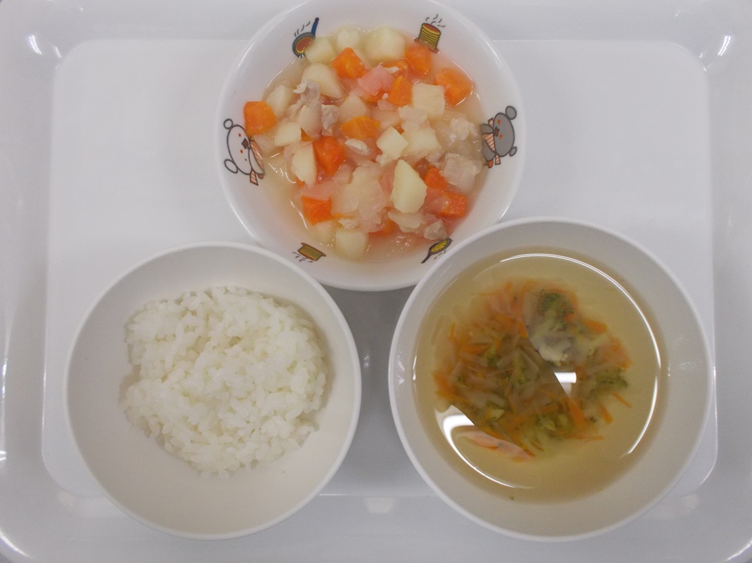 4月2日(火)から4月6日(土)までの給食献立写真・離乳食提供量と写真の一例です。